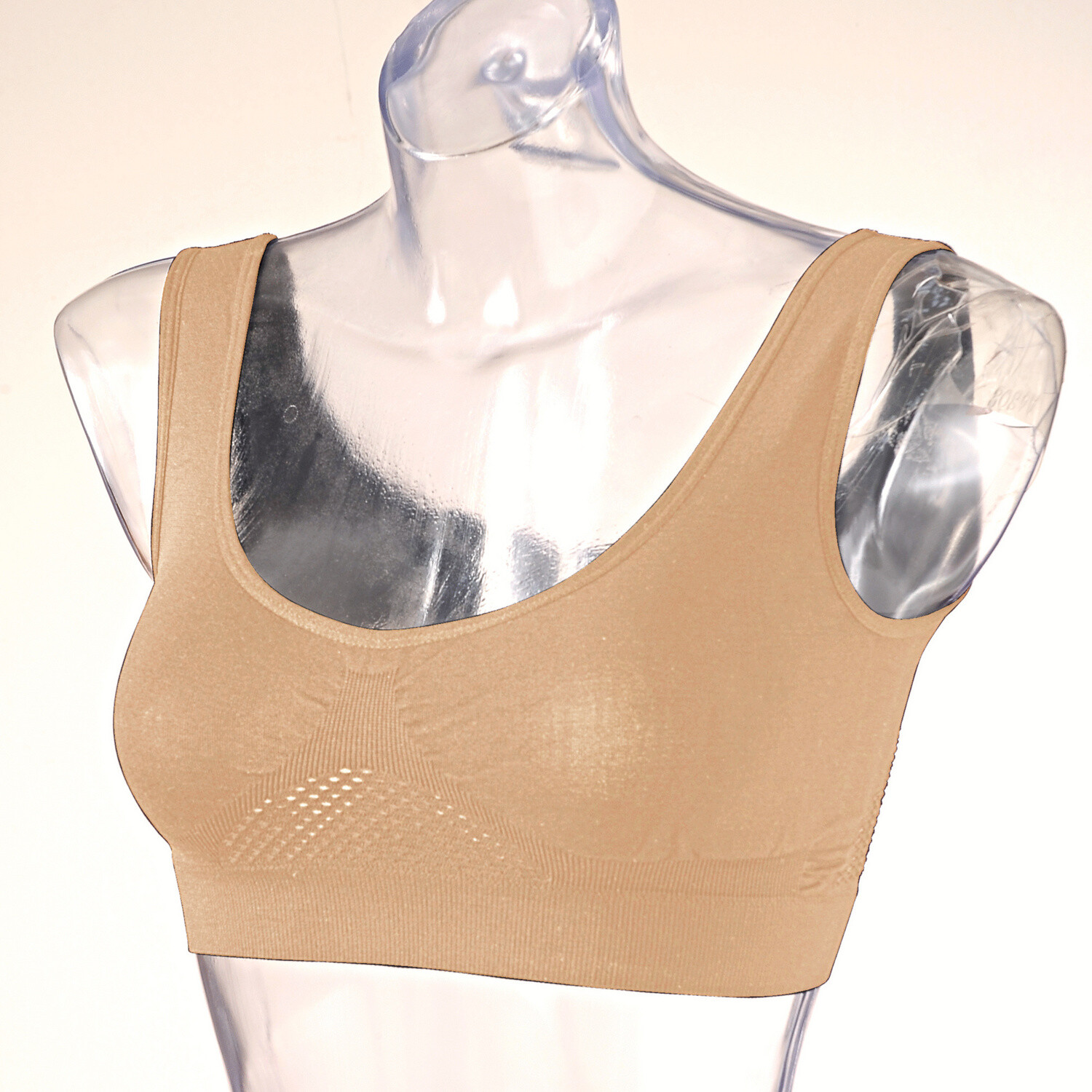Бюстгальтер виготовлений з еластичної бавовни та мережива, зручний у носінні завдяки конструкції на кісточках. Напівзшитий. Мереживна обробка на вирізі та під грудьми. Низ чашечок з бавовняної підкладки. Еластичні та регульовані бретельки ззаду. Еластична під грудьми. Мереживна спинка. Застібка на гачки ззаду. Стандарт 100 згідно з Oeko-Tex (CQ 1216 / 3 IFTH). Цей знак вказує на текстильні вироби, які пройшли лабораторні випробування на широкий спектр шкідливих речовин, і виріб є безпечним понад чинні стандарти. Можна прати в пральній машині.