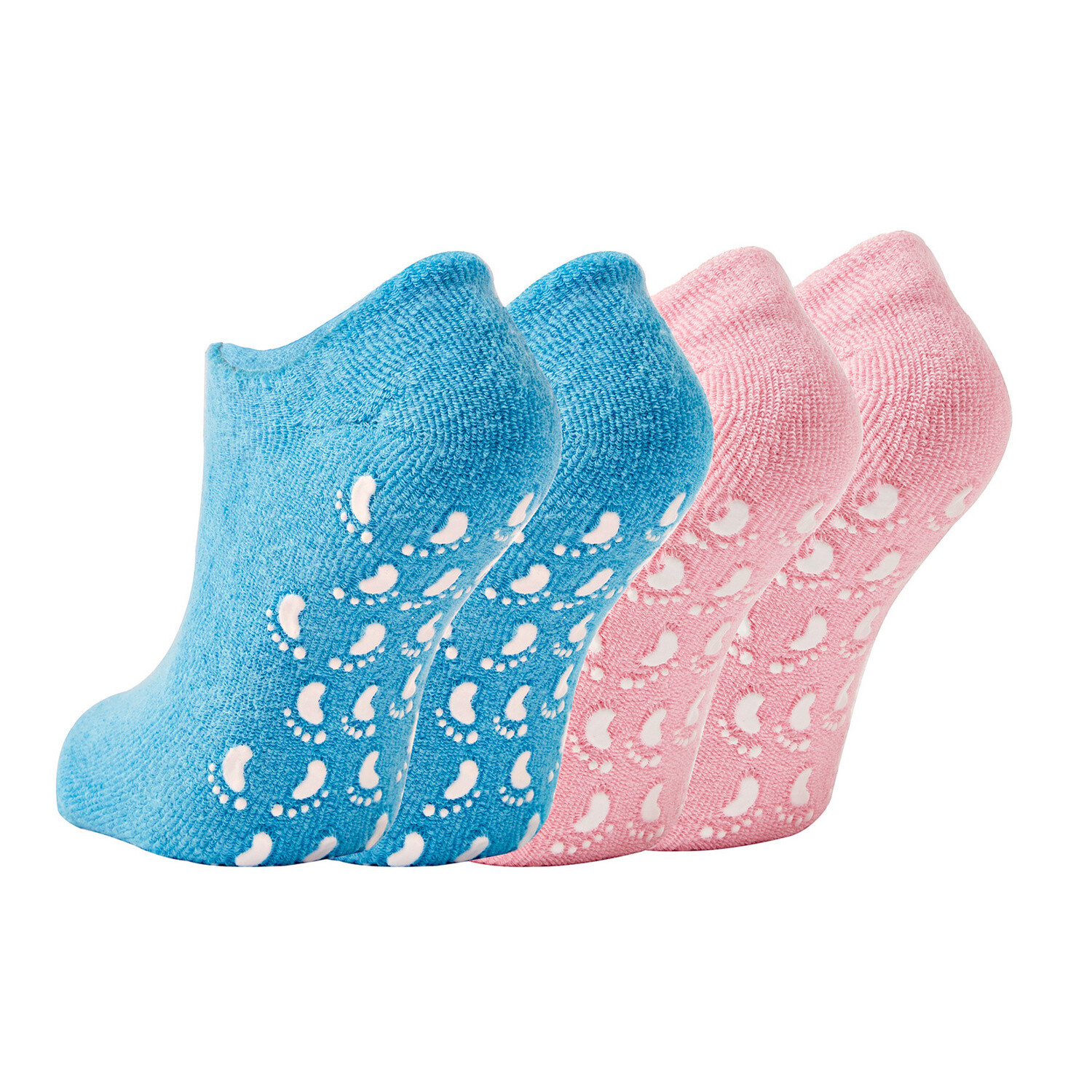 Нарешті більше ніяких сухих, потрісканих ніг! Ці м'які гелеві шкарпетки діють як зволожуюча маска, яка інтенсивно доглядає та живить ваші ноги. Вони глибоко зволожують шкіру вітаміном Е та цінними трояндовою й оливковою оліями. Також ідеально підходять для ваших власних кремів для догляду за ногами. Не ковзають завдяки гумовим шипам.