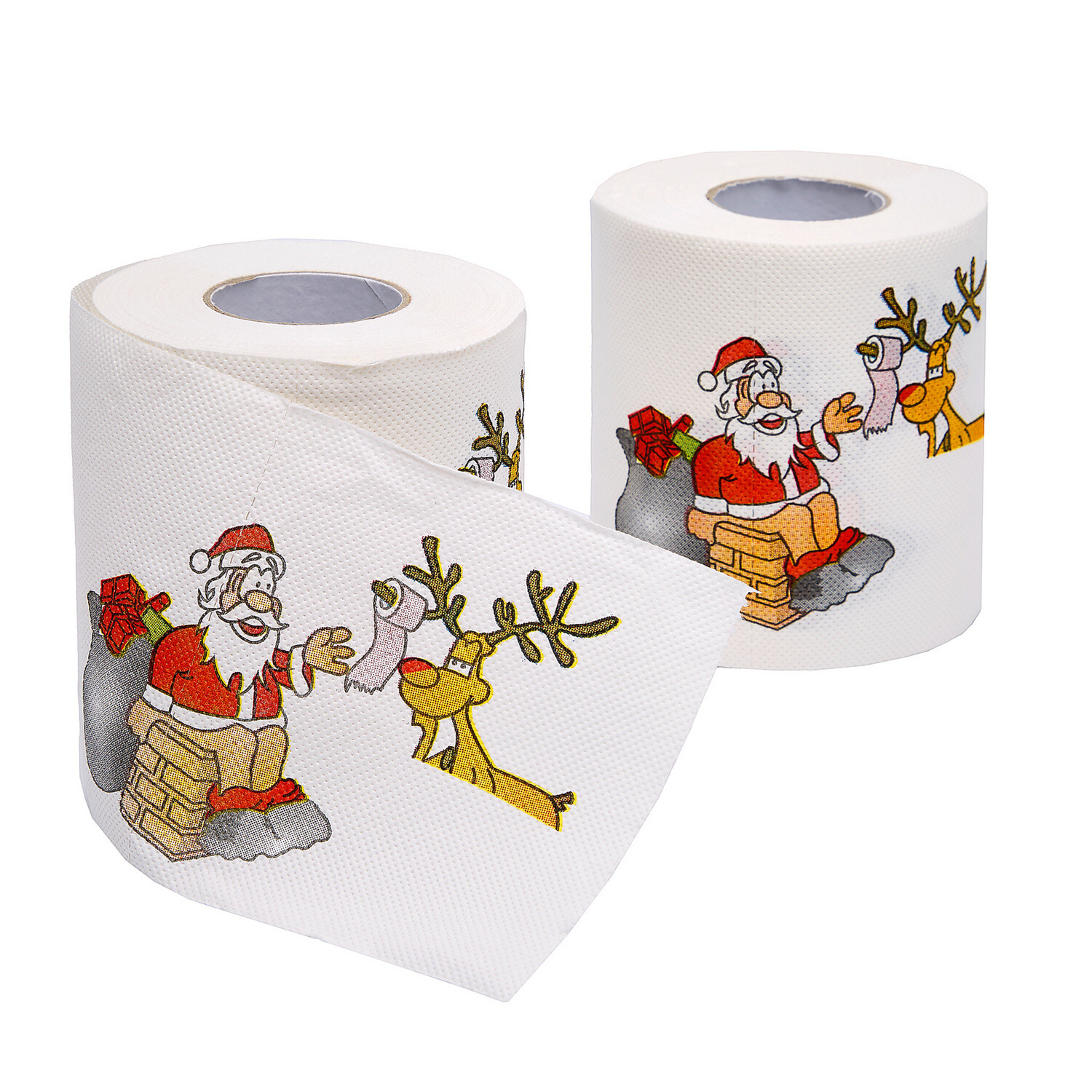 З веселими мотивами Санти в туалеті та оленя Рудольфа, цей 3-шаровий туалетний папір приверне увагу на будь-якій різдвяній вечірці. 240 аркушів у рулоні забезпечують безліч сезонних розваг. 2 рулони в наборі - м'який, кумедний і справжній предмет для розмов!