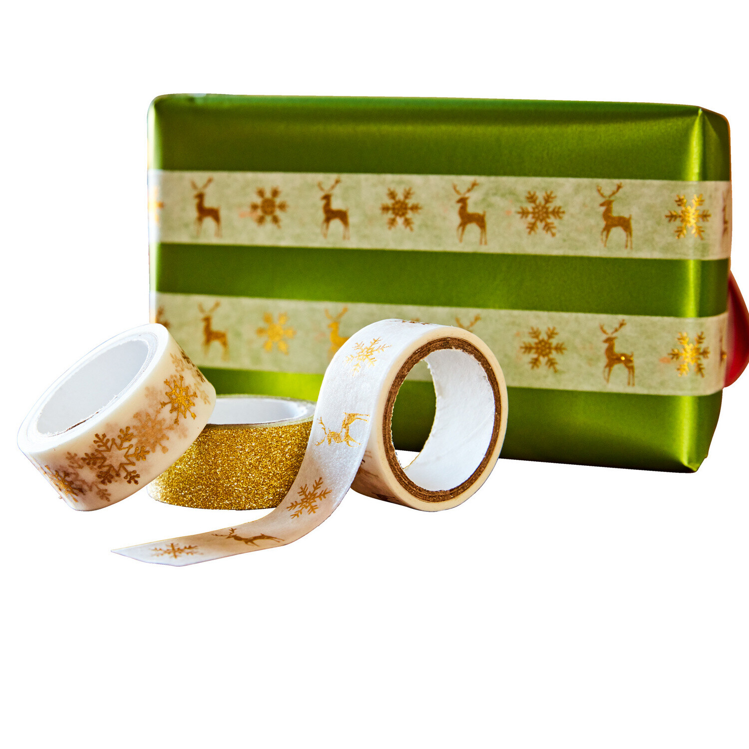 Ці елегантні пакувальні стрічки з 3 різдвяними мотивами полегшать пакування. Просто наклейте їх - і все готово!