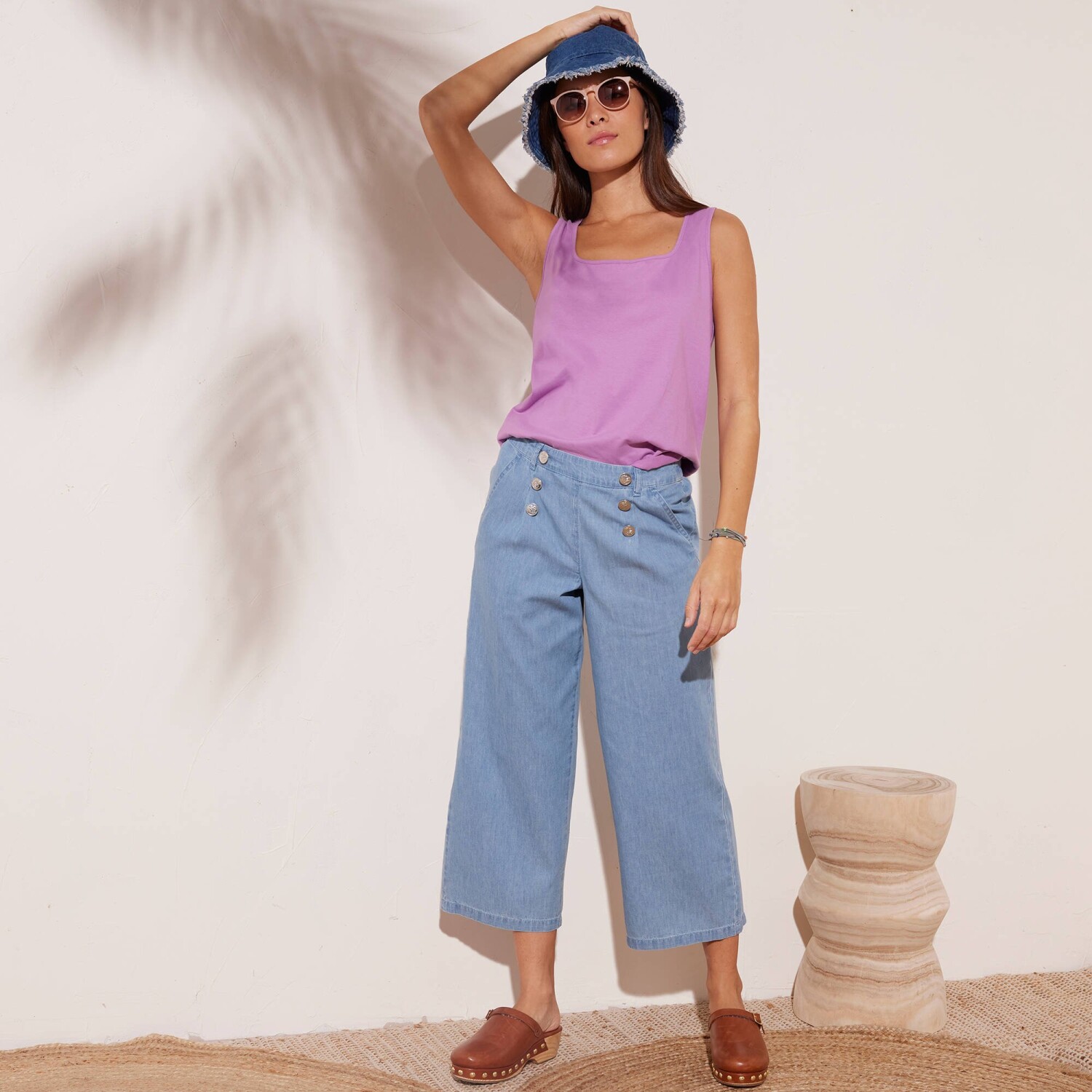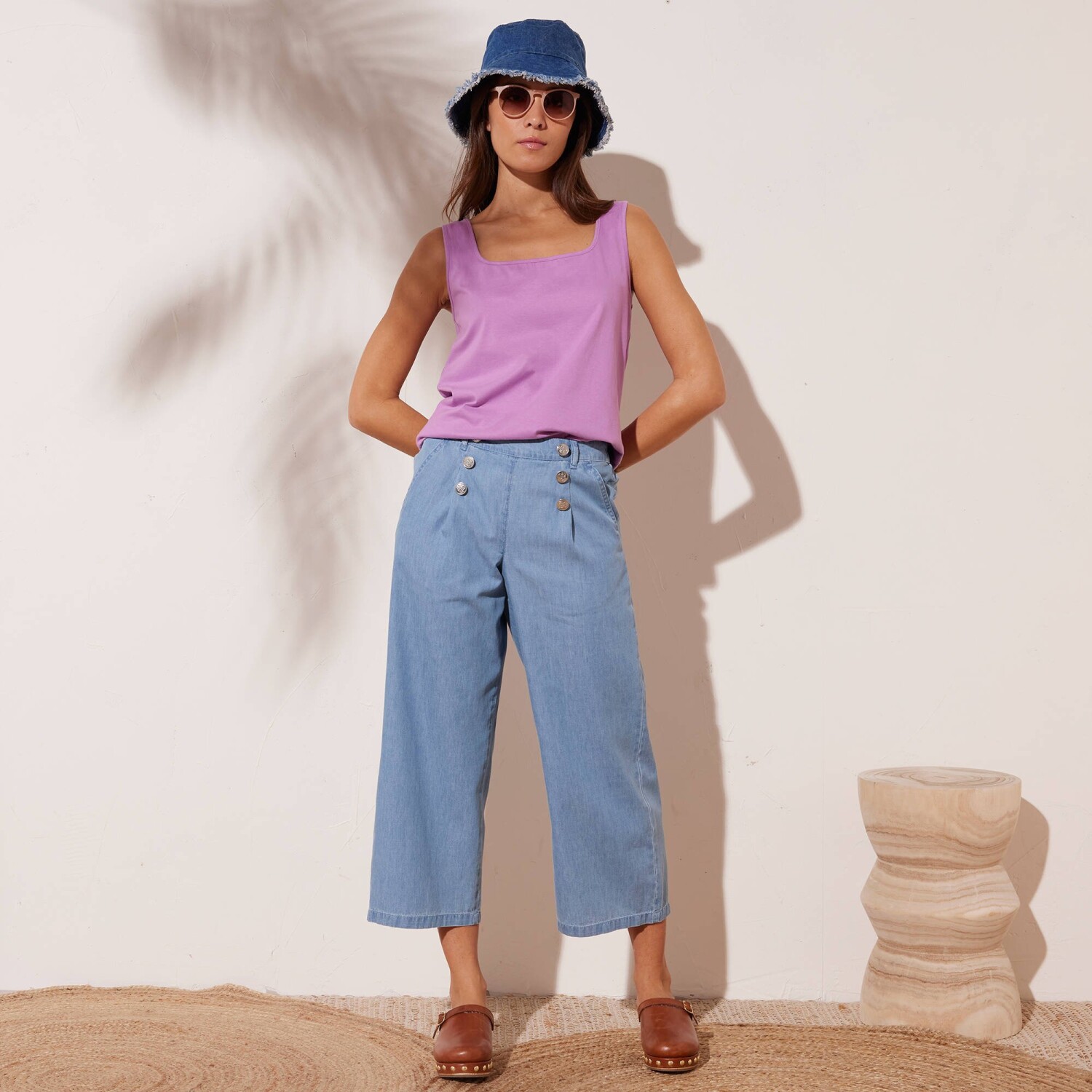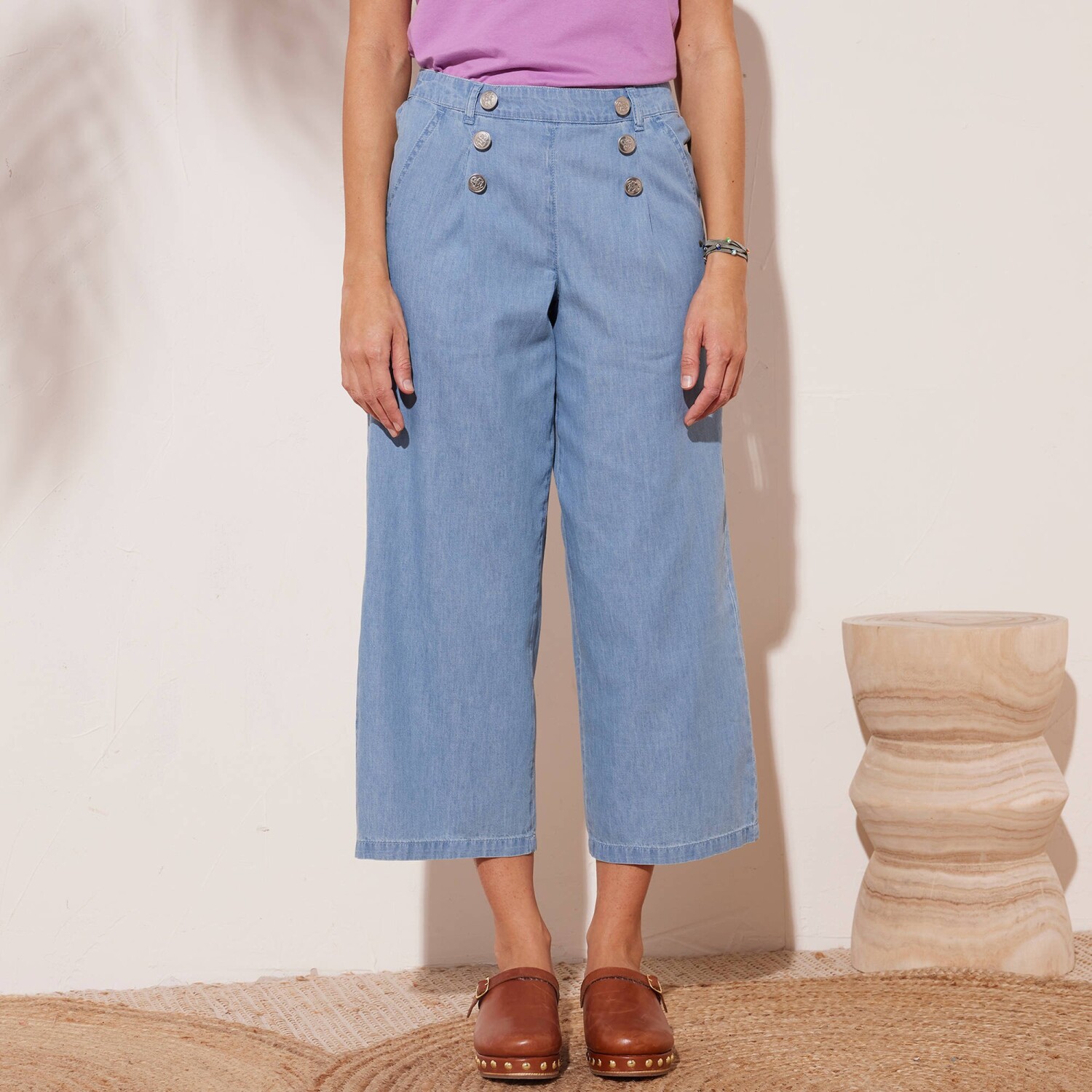 Джинси-стрейч mom натхненні ретро-модою, а їхній крій підходить для будь-якої фігури. Зручний крій mom. Висока талія. Фігурна талія зі шлевками. Застібка на блискавку + 1 ґудзик. 2 прошиті витачки спереду. 2 прорізні кишені. Піднятий задній край та витачки. 2 фальшиві кишені з окантовкою ззаду. Контрастна строчка. Можна підвернути вище щиколоток. Стандарт 100 згідно з Oeko-Tex (n° CQ 1216 / 3 IFTH). Цей знак позначає текстильні вироби, які пройшли лабораторні випробування на широкий спектр шкідливих речовин, і виріб є безпечним понад чинні стандарти. Можна прати в пральній машині.