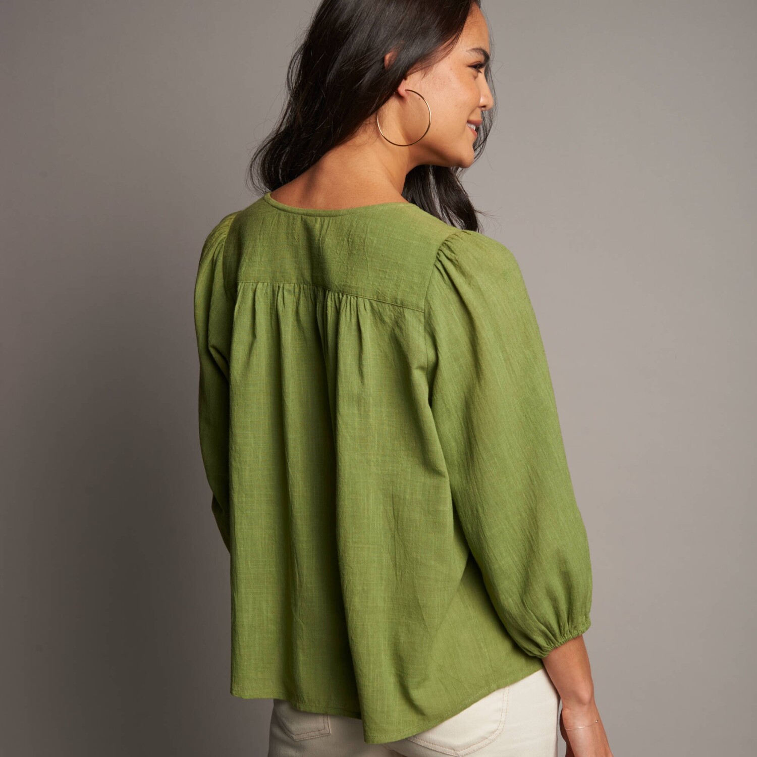 Блузка з круглим вирізом і короткими рукавами - легка, повітряна та м'яко струмлива. Можна прати при температурі 30 °C. Будь ласка, вкажіть свій розмір у формі замовлення. Підходить для подорожей + не потребує прасування. Легка у догляді + швидко сохне. Зберігає форму.