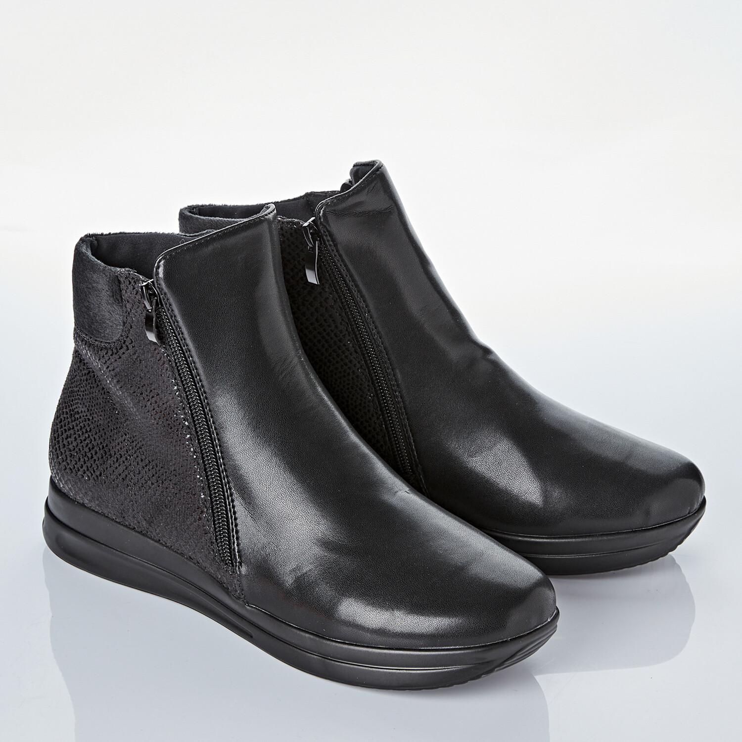 Гладка передня частина, елегантне тиснення під крокодила ззаду, оксамитовий м'який край та тепла підкладка - вам сподобаються ці ботильйони. Блискавки з обох боків забезпечують комфортне взування. Нековзка танкетка має каблук заввишки приблизно 3 см. Модні крокодилові акценти. Оксамитовий м'який край. Тепла підкладка. Легко взувати. Нековзка танкетка. Танкетка має каблук заввишки приблизно 3 см.