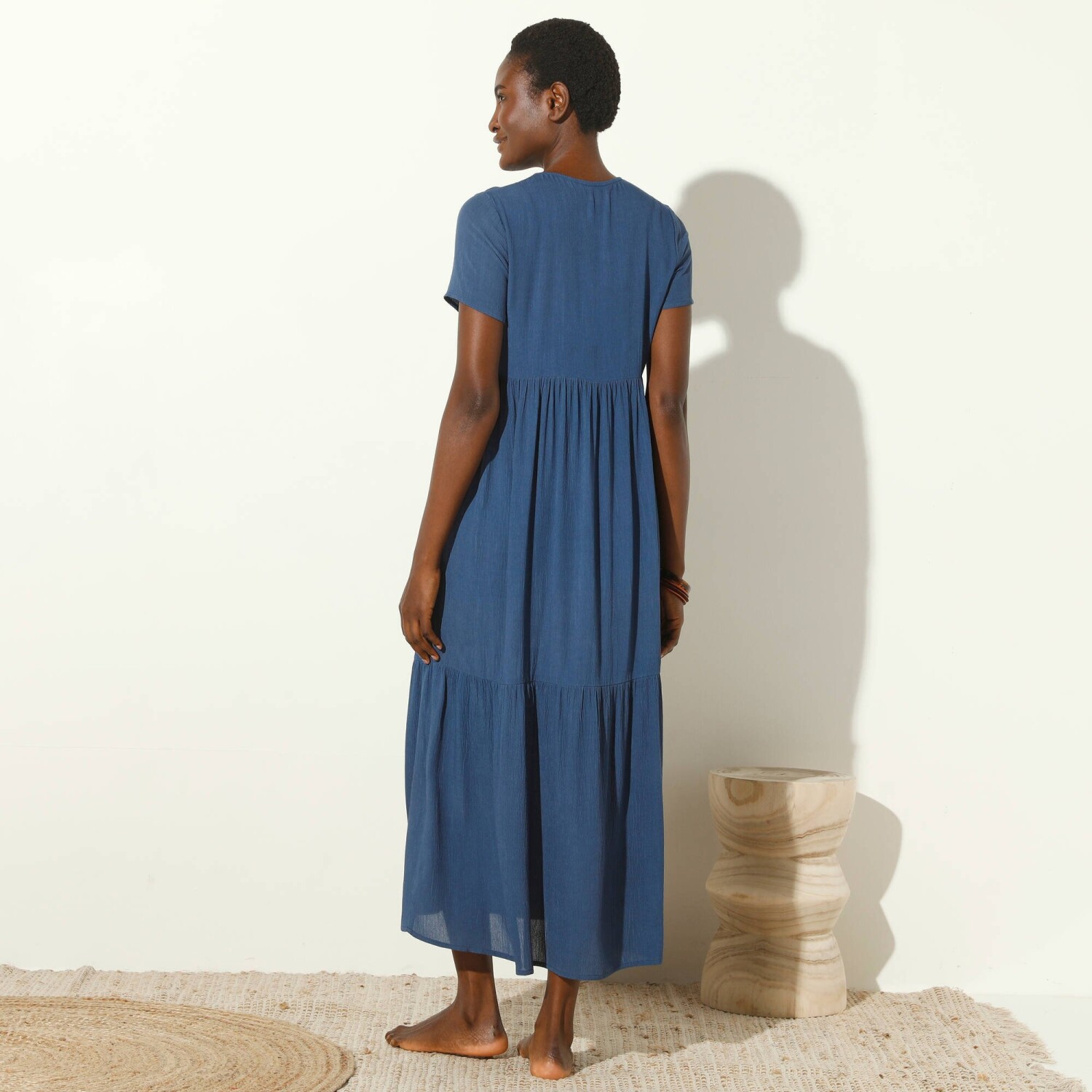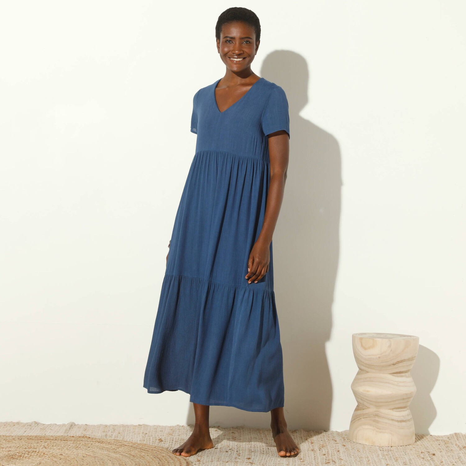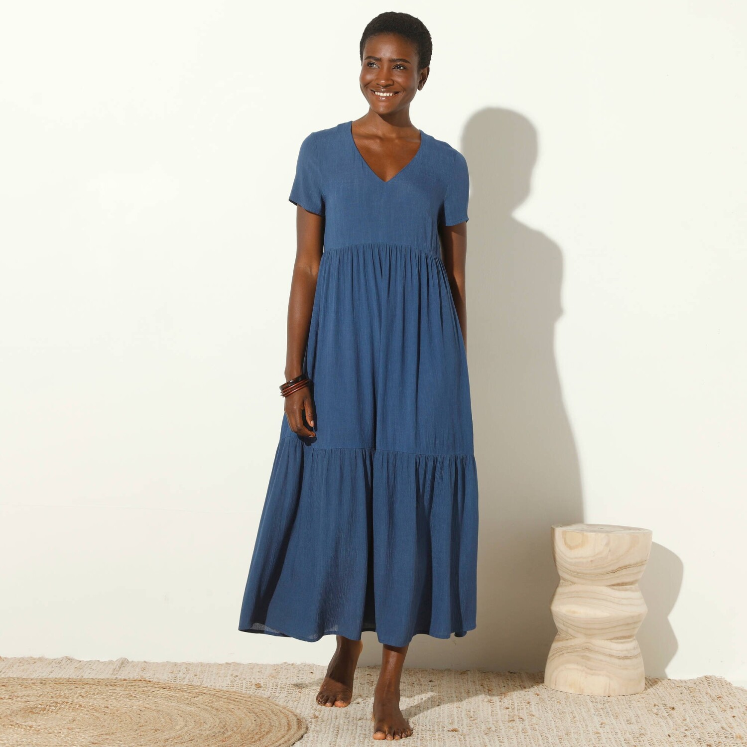 Особливі моменти вимагають особливого вбрання! Для цієї нагоди ми підготували довгу сукню з квадратним вирізом горловини. Виготовлена з легкого, повітряного крепу. Широкі бретелі. Квадратний виріз горловини з біжутерією. Структурований крій спереду для подовження. Виріз на талії. Жакет ззаду для приталеного вигляду. Розширена низова частина. Підкладка зверху. Можна прати в пральній машині.