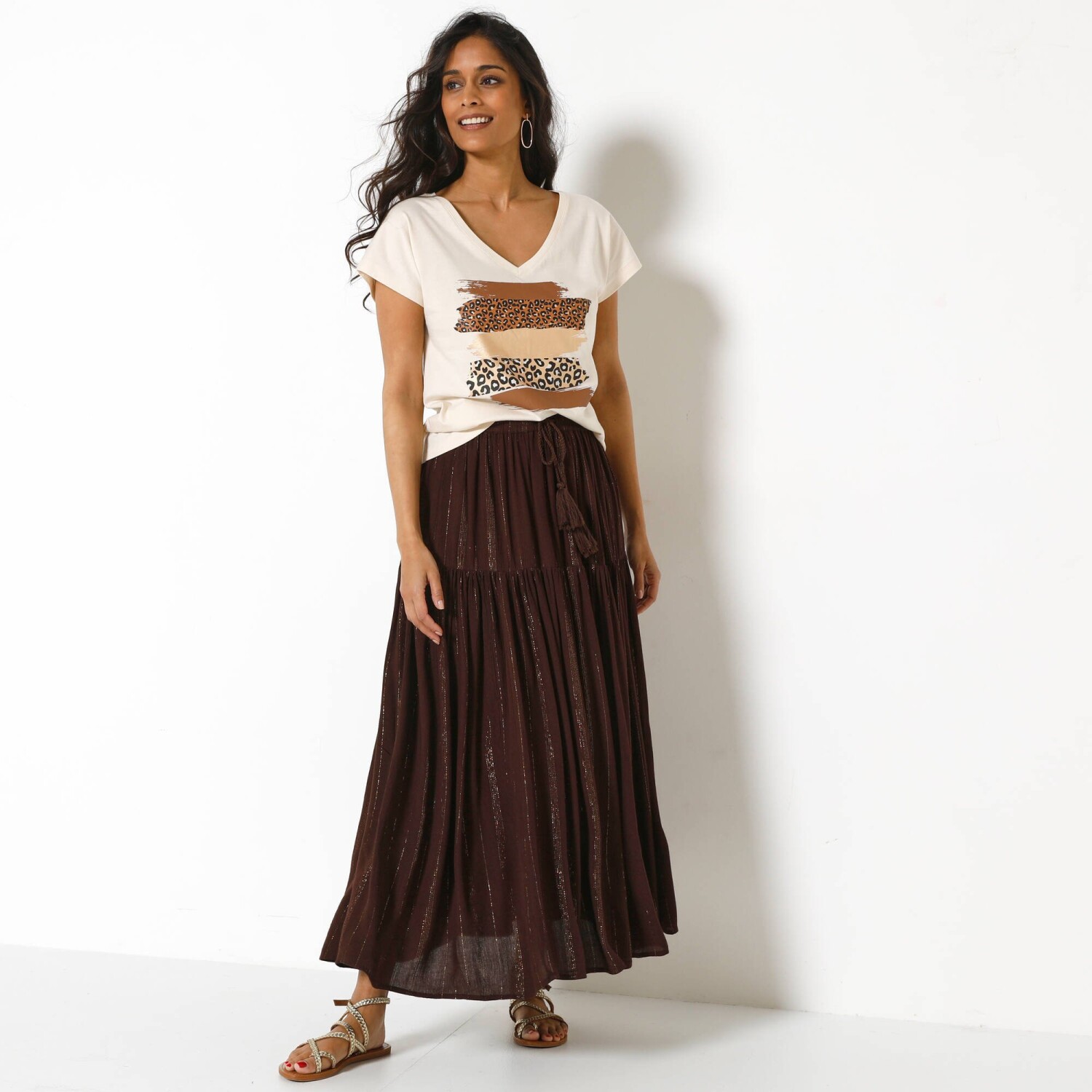 Це ідеальна спідниця для літнього сезону! Коротка спідниця-кльош спеціально розроблена для невисокого зросту. М'яка на дотик, злегка еластична, зручна в носінні. Довжина розрахована на фігуру нижче 160 см. Фігурна талія зі шлевками спереду та ззаду. Застібка-блискавка спереду + 1 ґудзик. 2 накладні кишені спереду. 2 фальшиві кишені з окантовкою ззаду. Виточки ззаду. Злегка розкльошений поділ. Сертифікат «Зроблено в зеленому» від OEKO-TEX®. Окрім перевірки кількох сотень хімічних речовин, що сприяють високій безпеці, цей знак гарантує дотримання уважних принципів виробництва та контрольованих соціальних практик. Можна прати в пральній машині.
