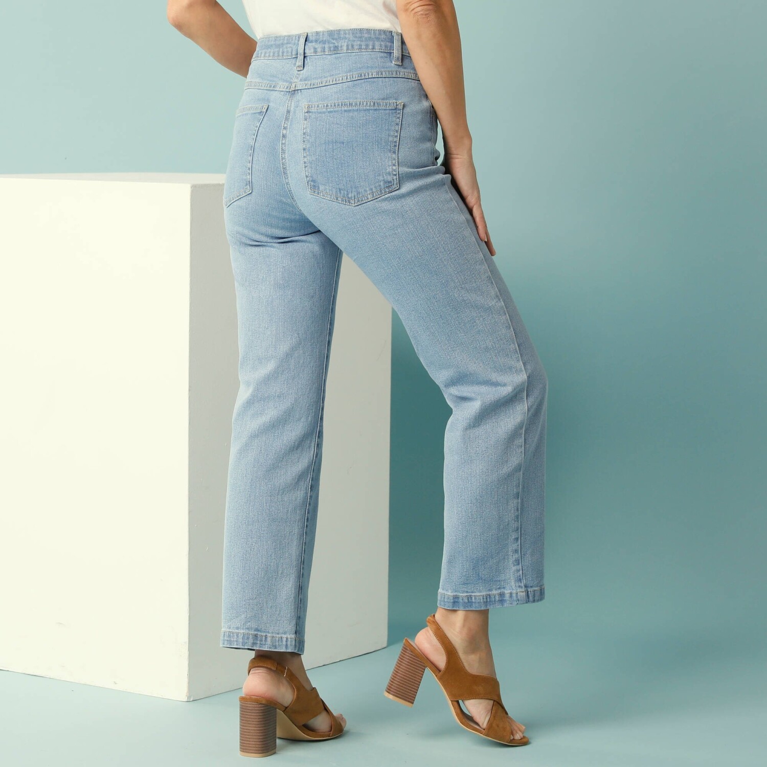 Широкі джинси з акцентом на повсякденний, комфортний стиль. Широкий крій. 5 кишень. Звичайна талія. Фігурний пояс зі шлевками, піднята частина ззаду. Застібка на блискавку + 1 ґудзик. Контрастна строчка. Еластичний денім. Стандарт 100 згідно з Oeko-Tex (n° CQ 1216 / 3 IFTH). Цей знак позначає текстильні вироби, які пройшли лабораторні випробування на широкий спектр шкідливих речовин, і виріб є безпечним понад чинні стандарти. Можна прати в пральній машині.