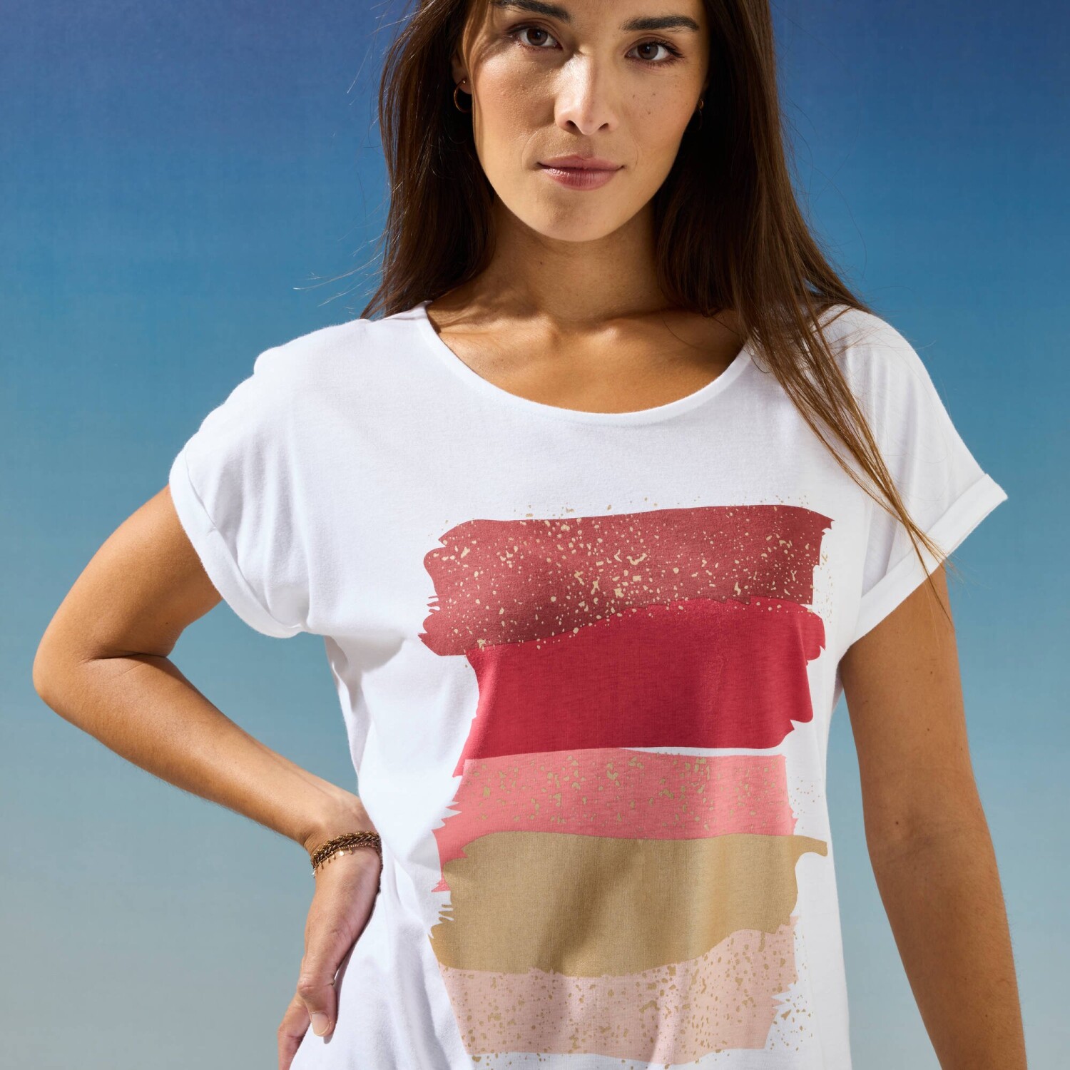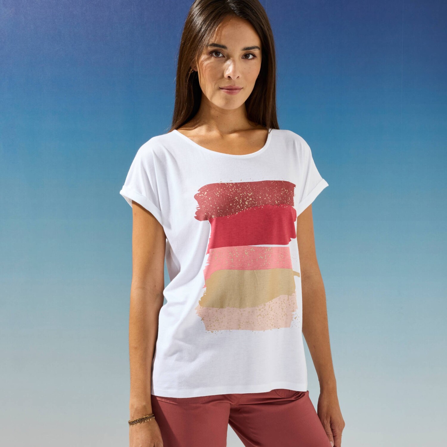 Футболка з мереживом та принтом
