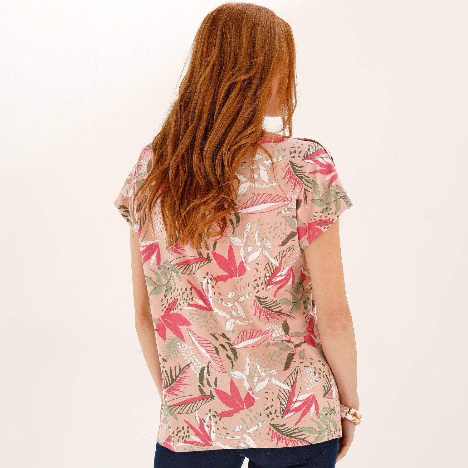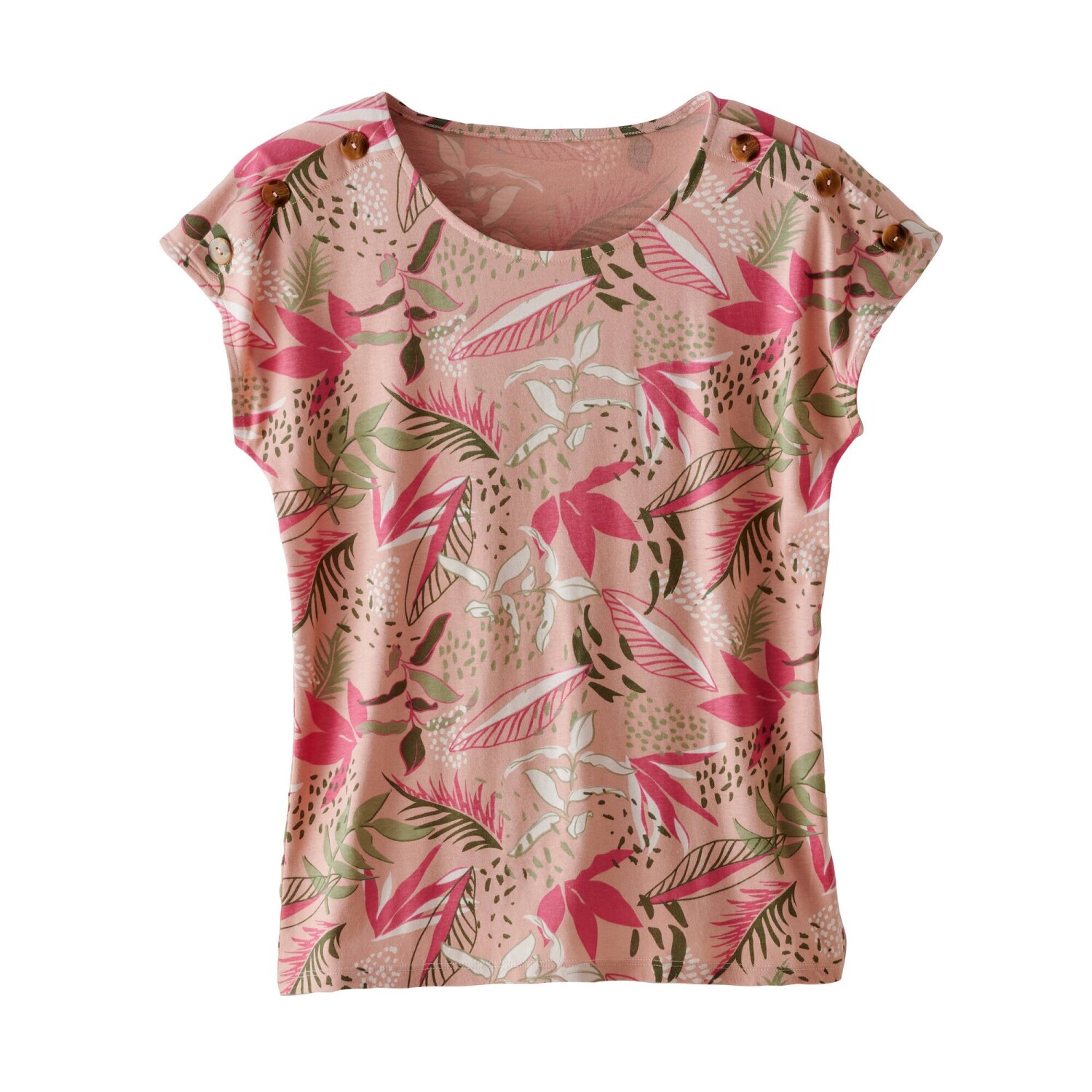 Вільна однотонная трикотажна футболка, розроблена для маленької фігури. Вільний крій. Трикотаж, що легко доглядати. Круглий, злегка вільний виріз горловини. Спущені плечі. Закачані рукави. Прямий поділ. Стандарт 100 згідно з Oeko-Tex (n° CQ 1216 / 3 IFTH). Цей знак означає, що текстильні вироби пройшли лабораторні випробування на широкий спектр шкідливих речовин, і виріб є безпечним понад застосовні стандарти. Можна прати в пральній машині.