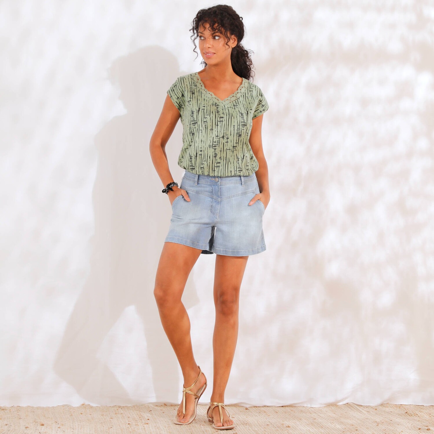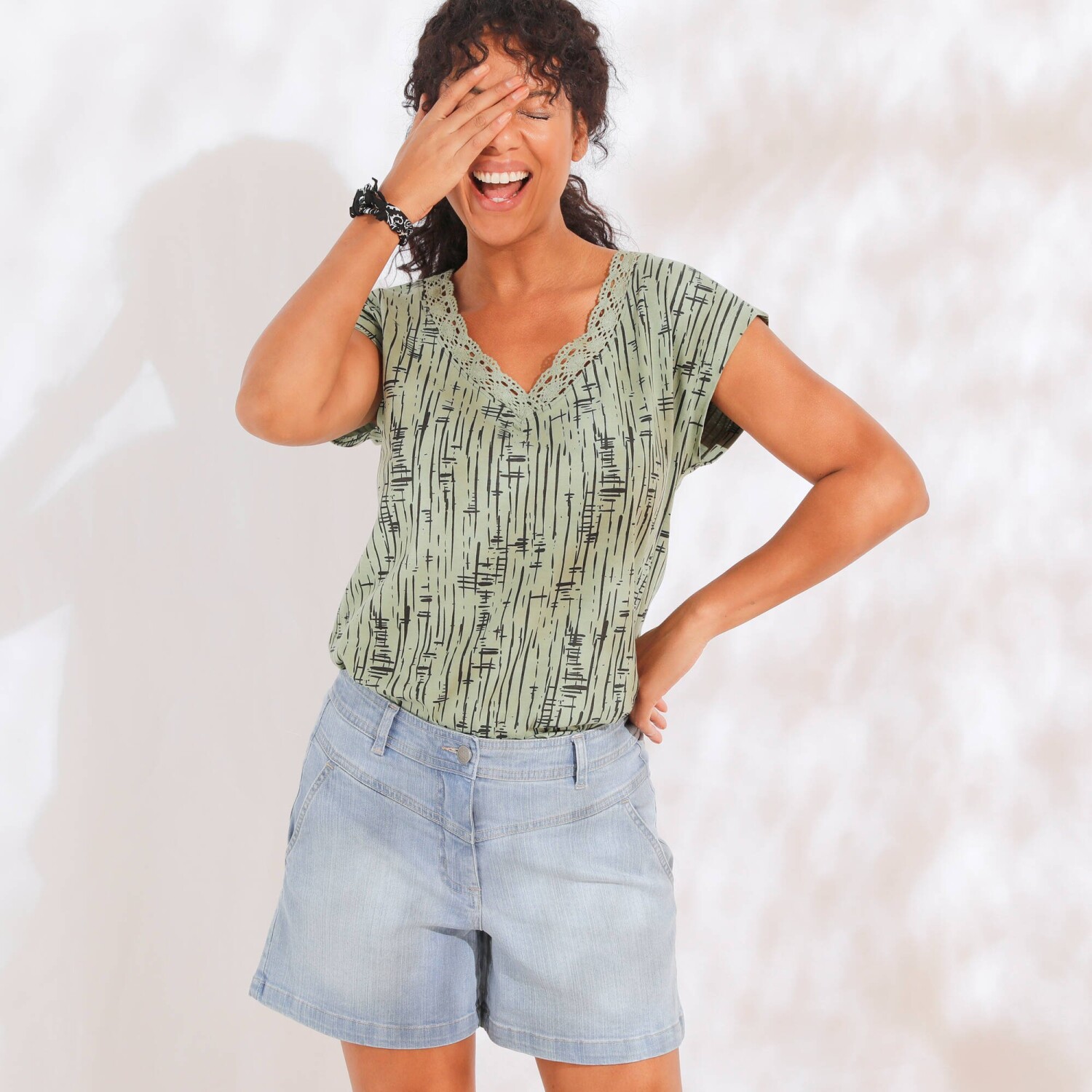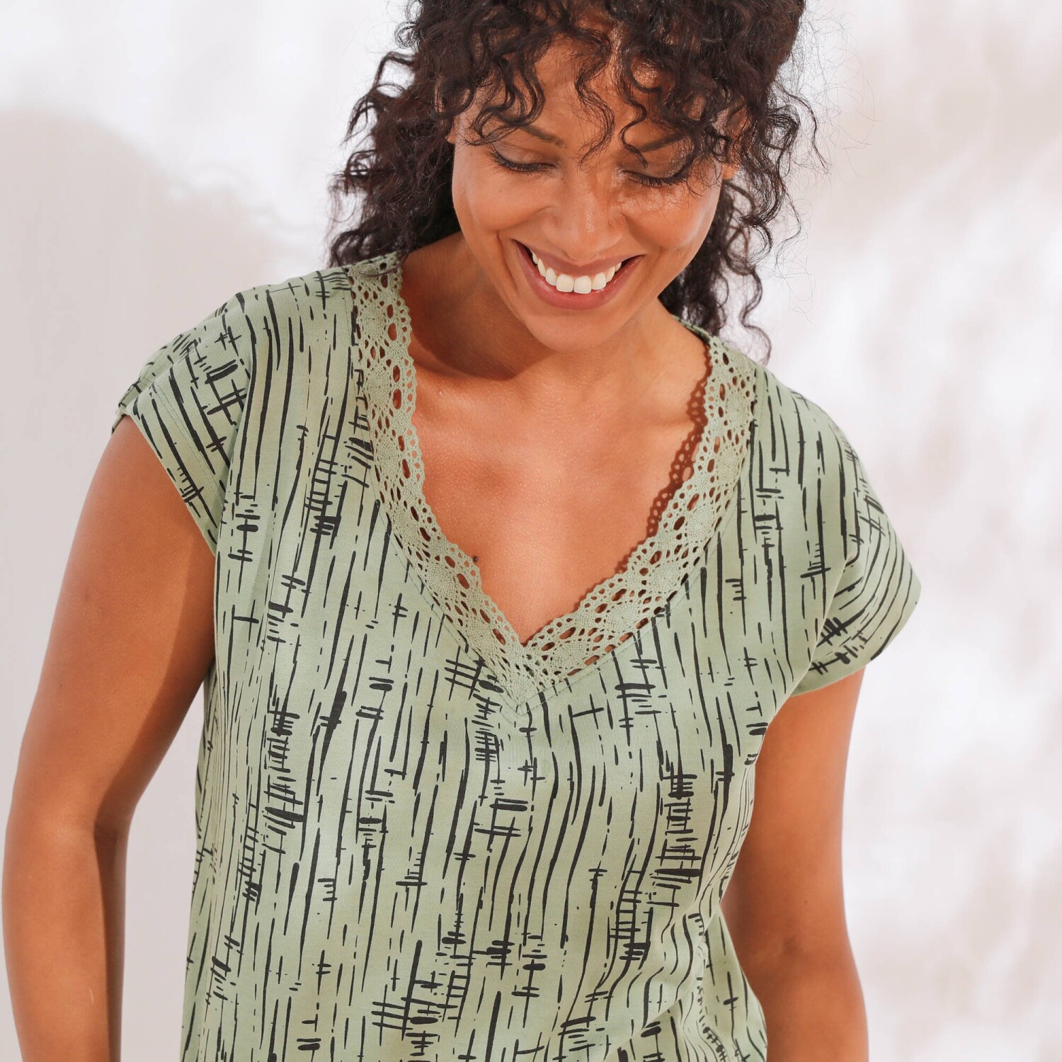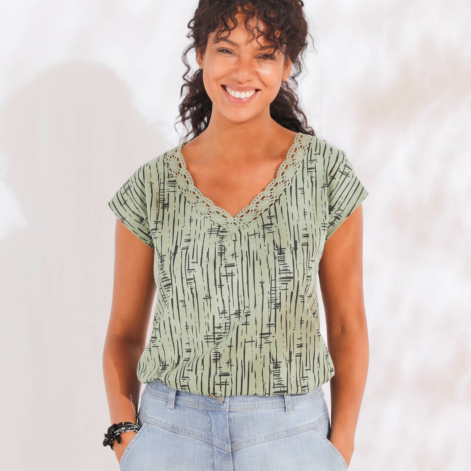 Елегантна футболка з м'якого джерсі: злегка приталена, з вигідним вирізом - жіночна і зберігає форму.