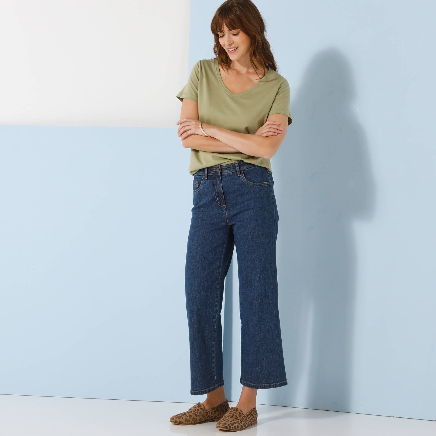 Ця монохромна футболка з макраме вигідно підкреслить вашу літню засмагу. Повітряний трикотаж. Злегка закруглений V-подібний виріз горловини. Спущені плечі. Спереду та ззаду вставки з макраме. Прозора спинка. Прямий поділ. Можна прати у пральній машині.
