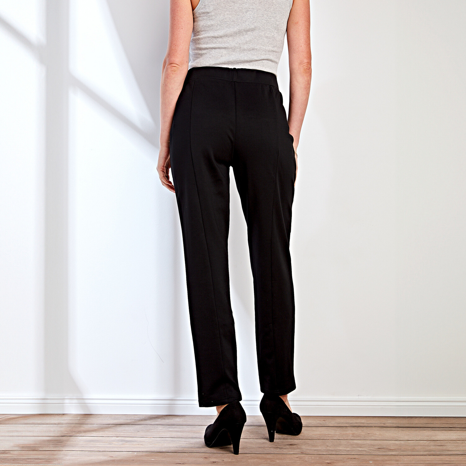 Є штани, спеціально розроблені для жінок зі зростом 160 см і менше! Прямий облягаючий крій. Нормальна висота талії. 5 кишень. Приталений фігурний пояс з 5 петлями для ременя. Піднята спинка. Застібка на блискавку + 1 ґудзик. Знімний пояс з пряжкою та 5 отворами для регулювання. Виготовлений з еластичного деніму. Стандарт 100 відповідно до Oeko-Tex (CQ 1216 / 3 IFTH). Цей знак ідентифікує текстильні вироби, які пройшли лабораторні випробування на вміст широкого спектру шкідливих речовин, і продукт є безпечним понад чинні стандарти. Можна прати у пральній машині.