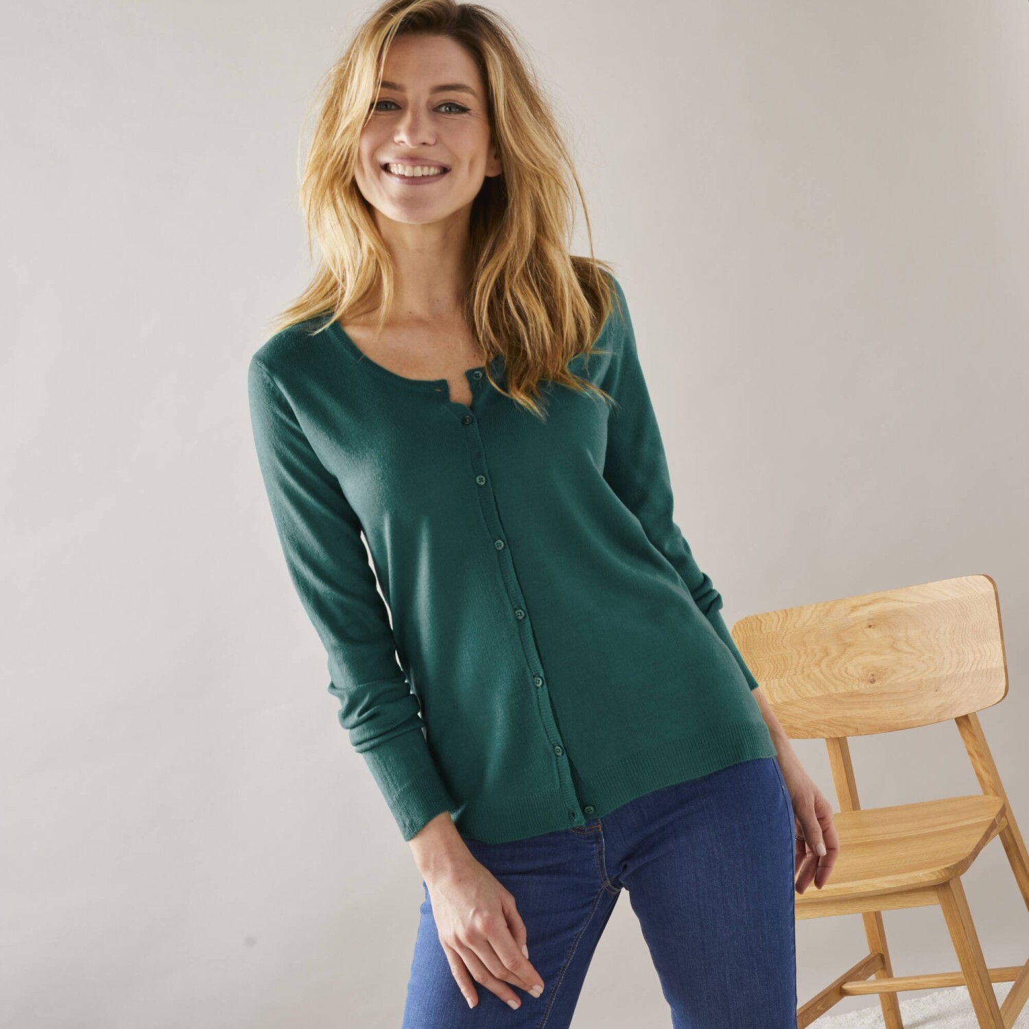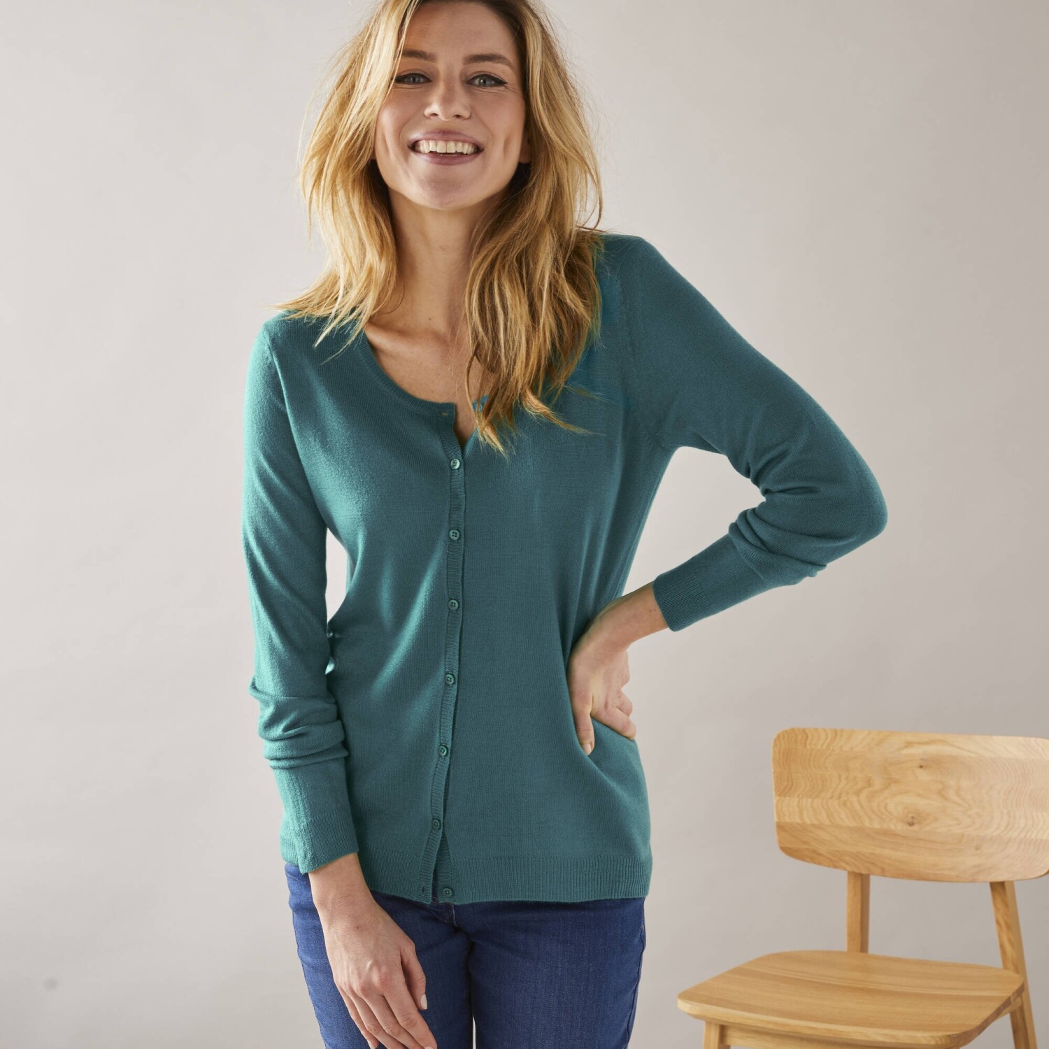 Яка насолода зануритися в цей кардиган з ворсової в'язки. Без застібки. Круглий виріз горловини. Довгий рукав. Тонка перламутрова в'язка. Можна прати у пральній машині.