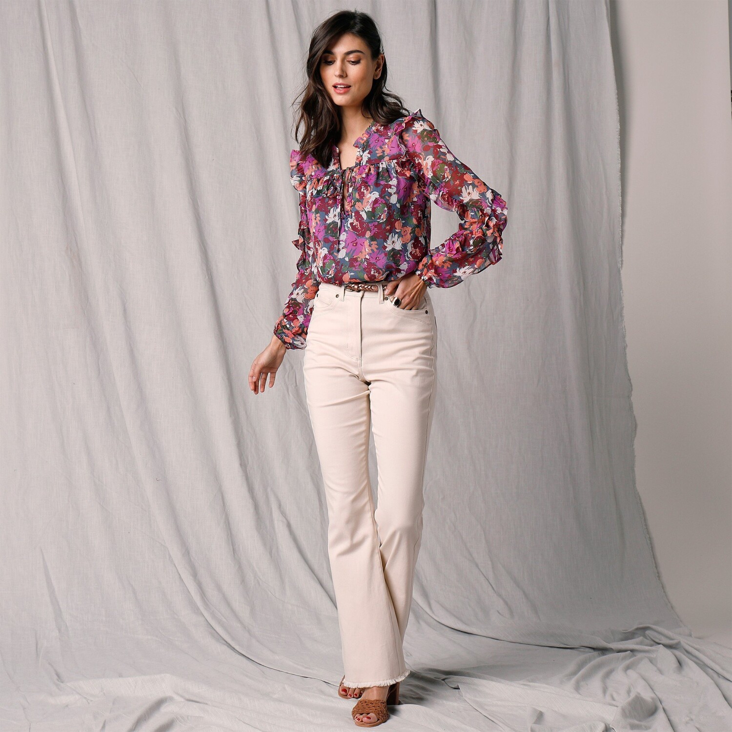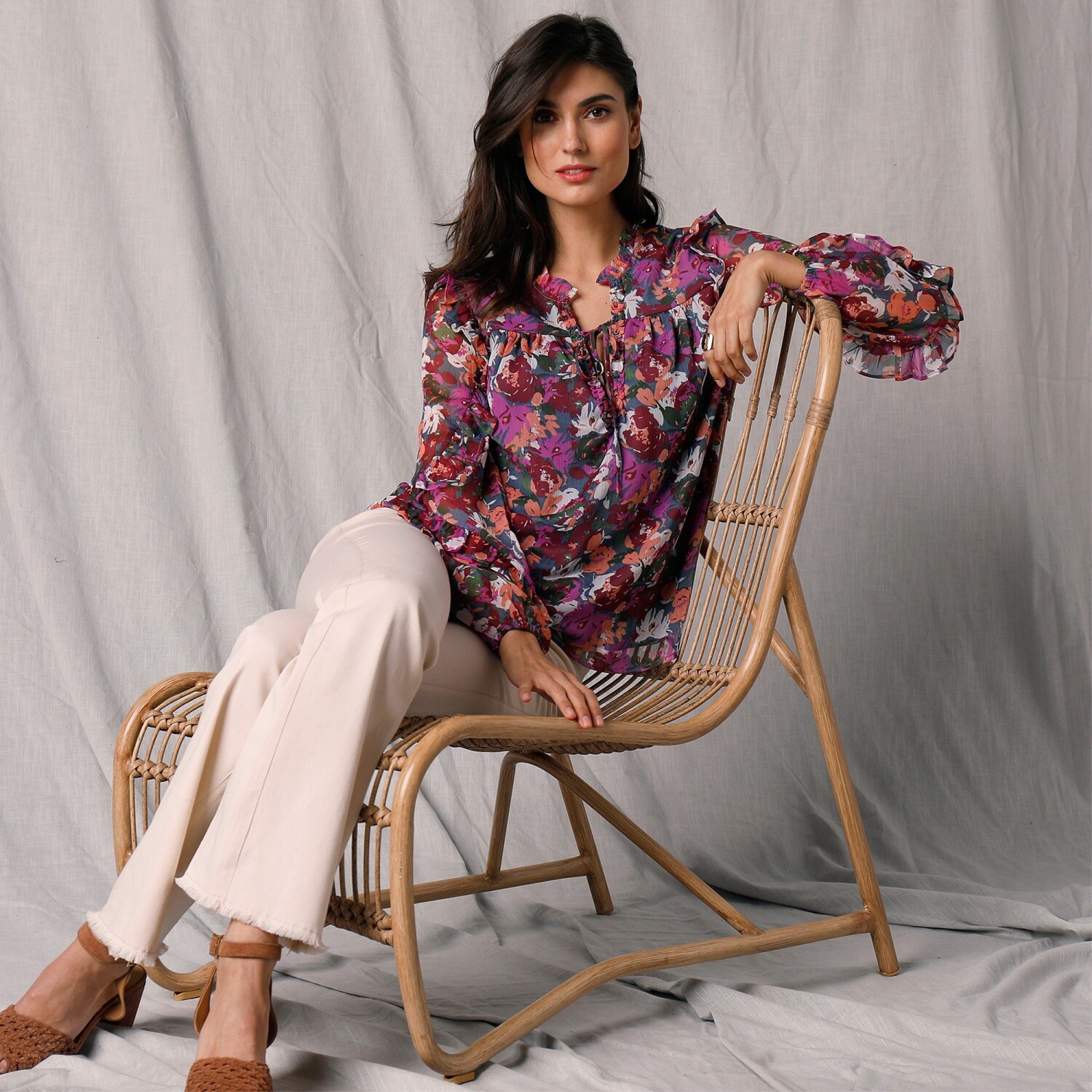 Наша улюблена – блузка в стилі бохо з макраме, яка робить акцент на прозорості. Повністю виготовлена з макраме для вишуканої прозорості. Вільний крій. Круглий виріз горловини. Рукави кльош 3/4 з хвилястими кінцями. Прямий нижній поділ, хвилясті кінці. Можна прати в пральній машині.