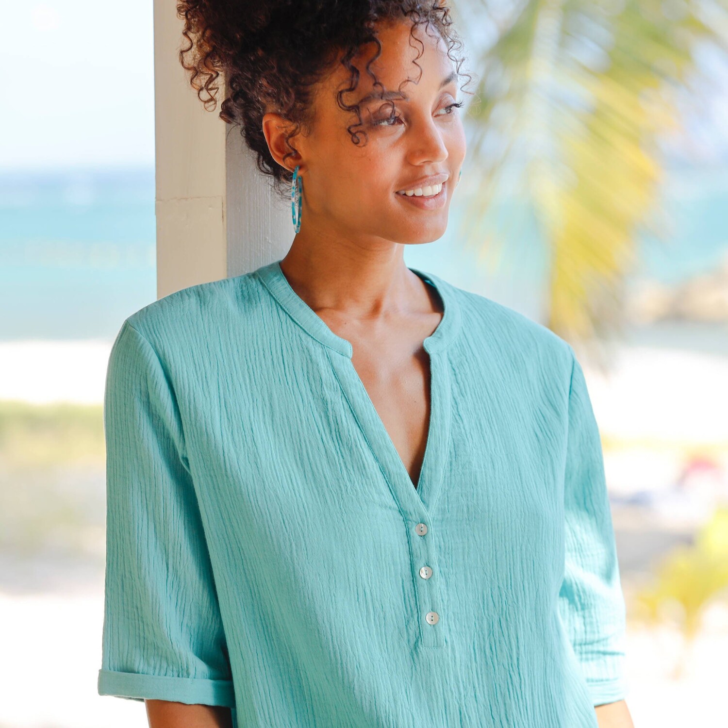 Крепова туніка з рукавами 3/4 та макраме