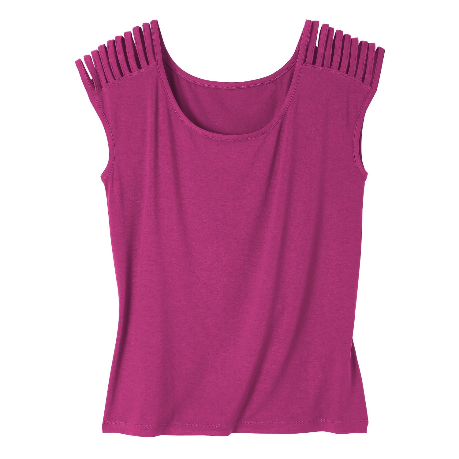 Спокусливі бретелі, модний прямий крій та еластична в'язка - ось переваги цієї жіночої футболки! Виготовлена з повітряного, легкого у догляді в'язання. Зручний прямий крій. Круглий виріз горловини. Нерухомі бретелі, що утворюють короткі рукави. Прямий поділ. Однотонний колір. Стандарт 100 згідно з Oeko-Tex (n° CQ 1216 / 3 IFTH). Цей знак вказує на текстильні вироби, які пройшли лабораторні випробування на широкий спектр шкідливих речовин, і виріб є безпечним понад чинні стандарти. Можна прати в пральній машині.