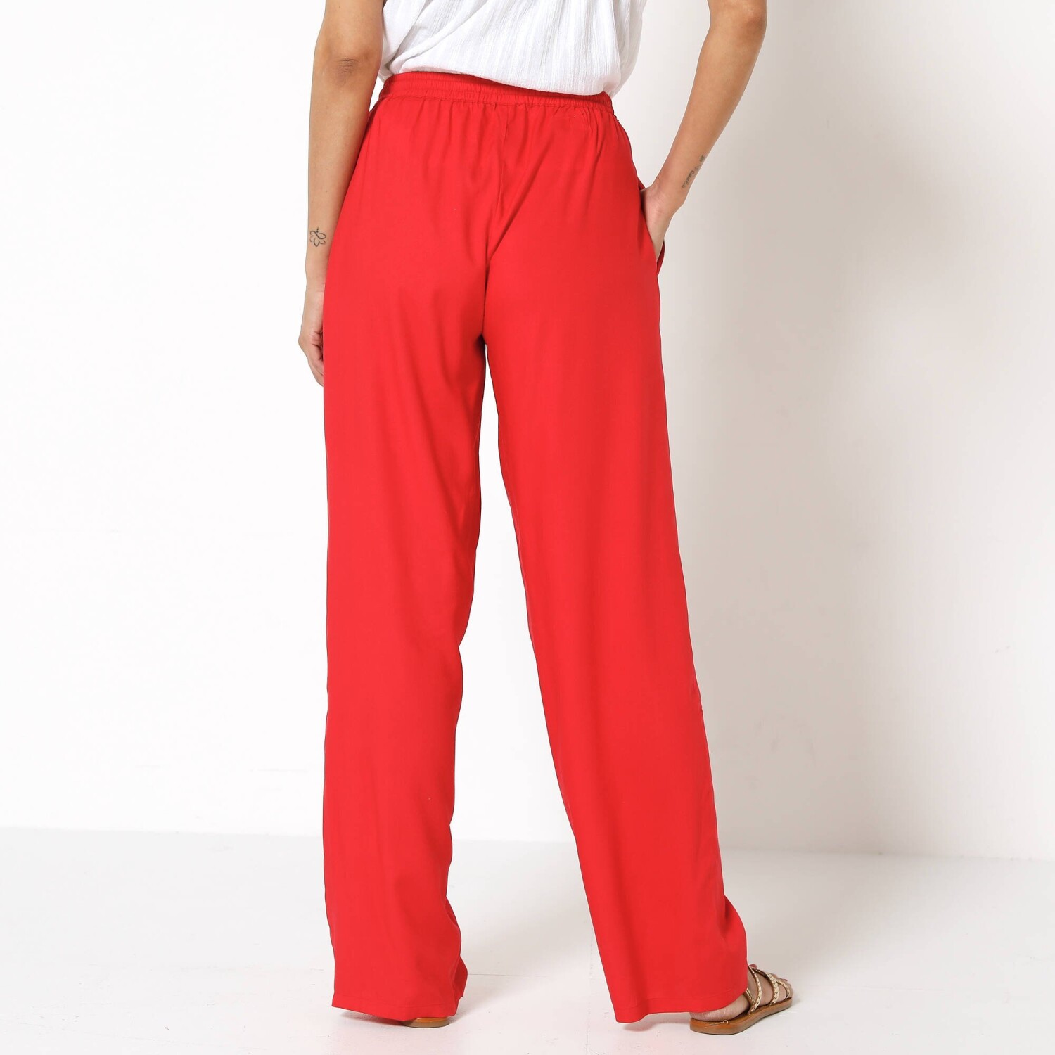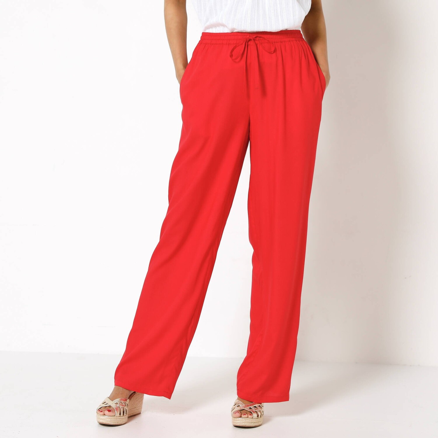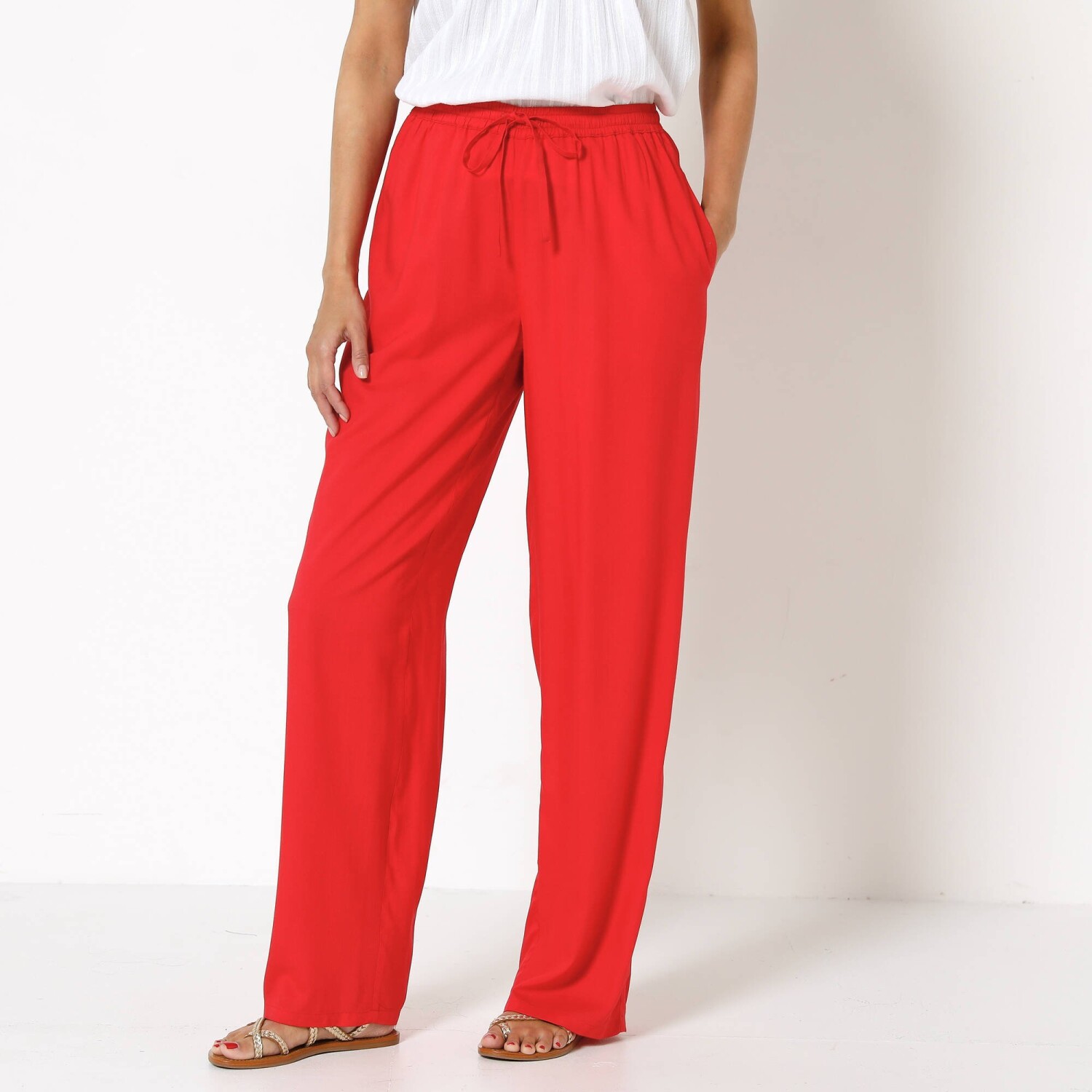 Жодна жінка не повинна обходити свій гардероб без широких штанів. Ми пропонуємо вам ці штани з повітряної віскози, зручні в носінні. Широкий крій. Стандартна висота талії. Еластичний пояс зі шнурком для комфорту. 2 кишені в бічних швах. Широкі штанини з підшипником. Можна прати в пральній машині.