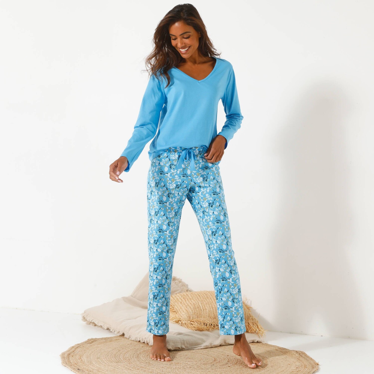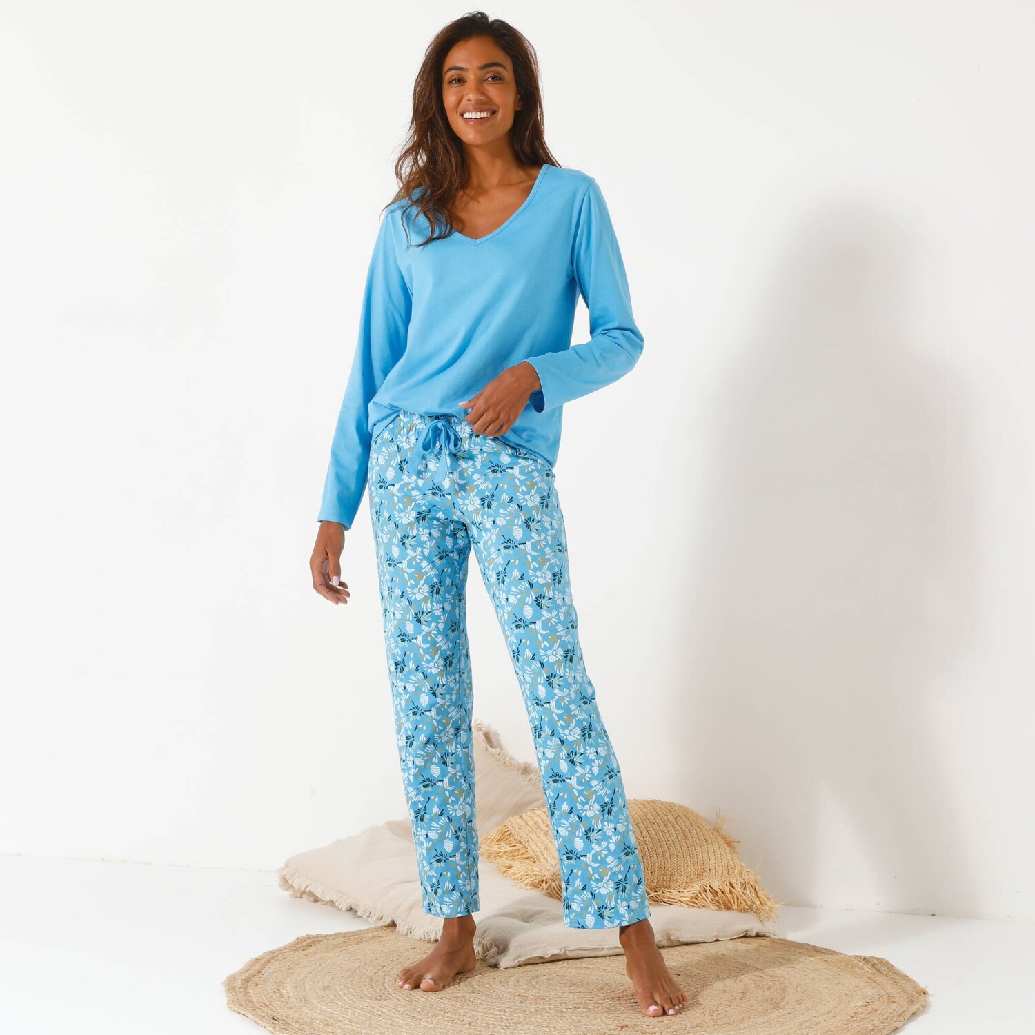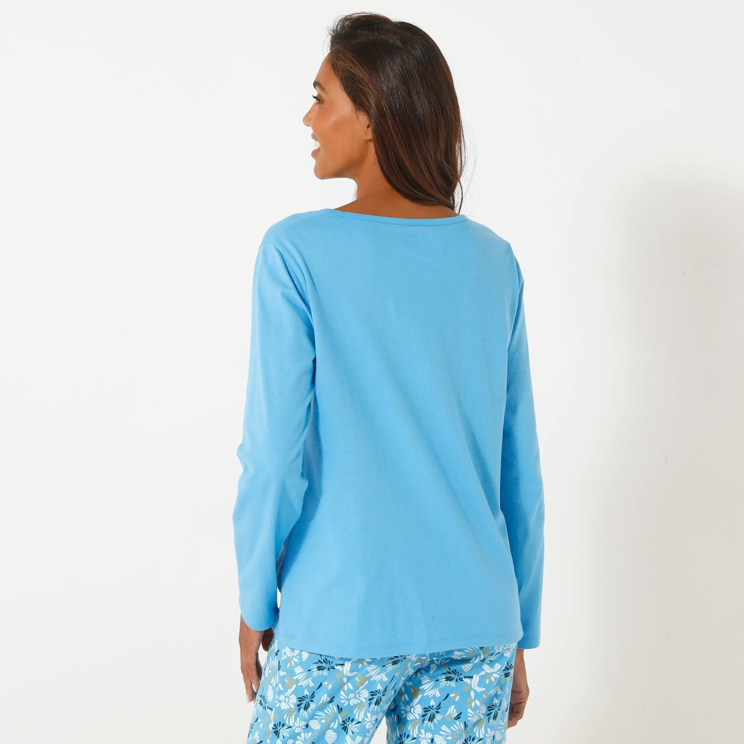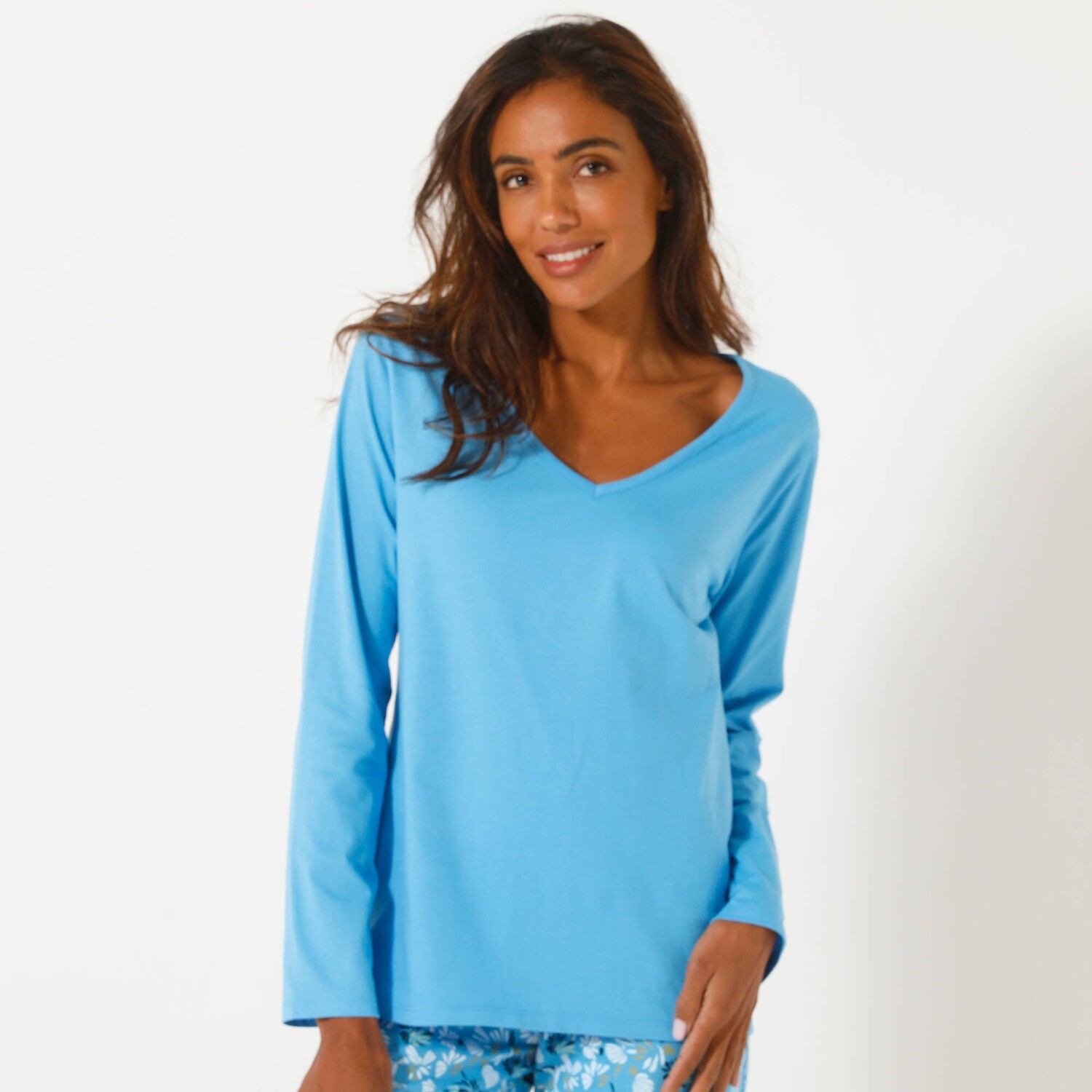 Просто поєднайте однотонний топ з короткими рукавами з нижньою частиною, і у вас буде піжама вашої мрії! Заокруглений V-подібний виріз. Зібрані плечі. Короткі рукави з рюшами. Прямий поділ. Стандарт 100 згідно з Oeko-Tex (n° CQ 1216 / 3 IFTH). Цей знак позначає текстильні вироби, які пройшли лабораторні випробування на широкий спектр шкідливих речовин, і виріб є безпечним понад чинні стандарти. Можна прати в пральній машині.