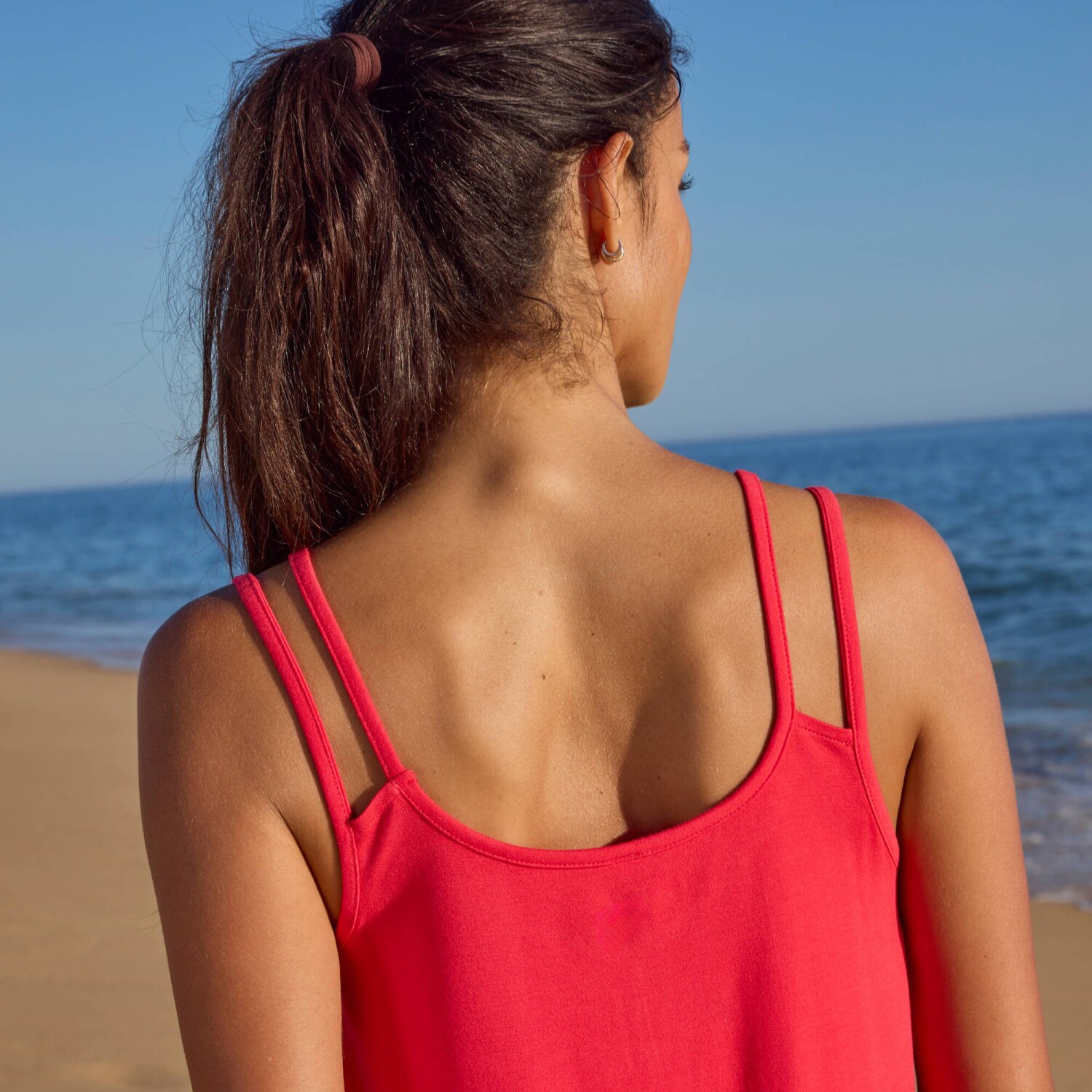 Мадейра додасть оригінального вигляду будь-якому вбранню. Злегка заокруглений V-подібний виріз із застібкою на ґудзиках. Широкі бретелі зі вставкою. Прямий поділ. Стандарт 100 згідно з Oeko-Tex (n° CQ 1216 / 3 IFTH). Цей знак позначає текстильні вироби, які пройшли лабораторні випробування на вміст широкого спектру шкідливих речовин, і виріб є безпечним понад чинні стандарти. Можна прати в пральній машині.