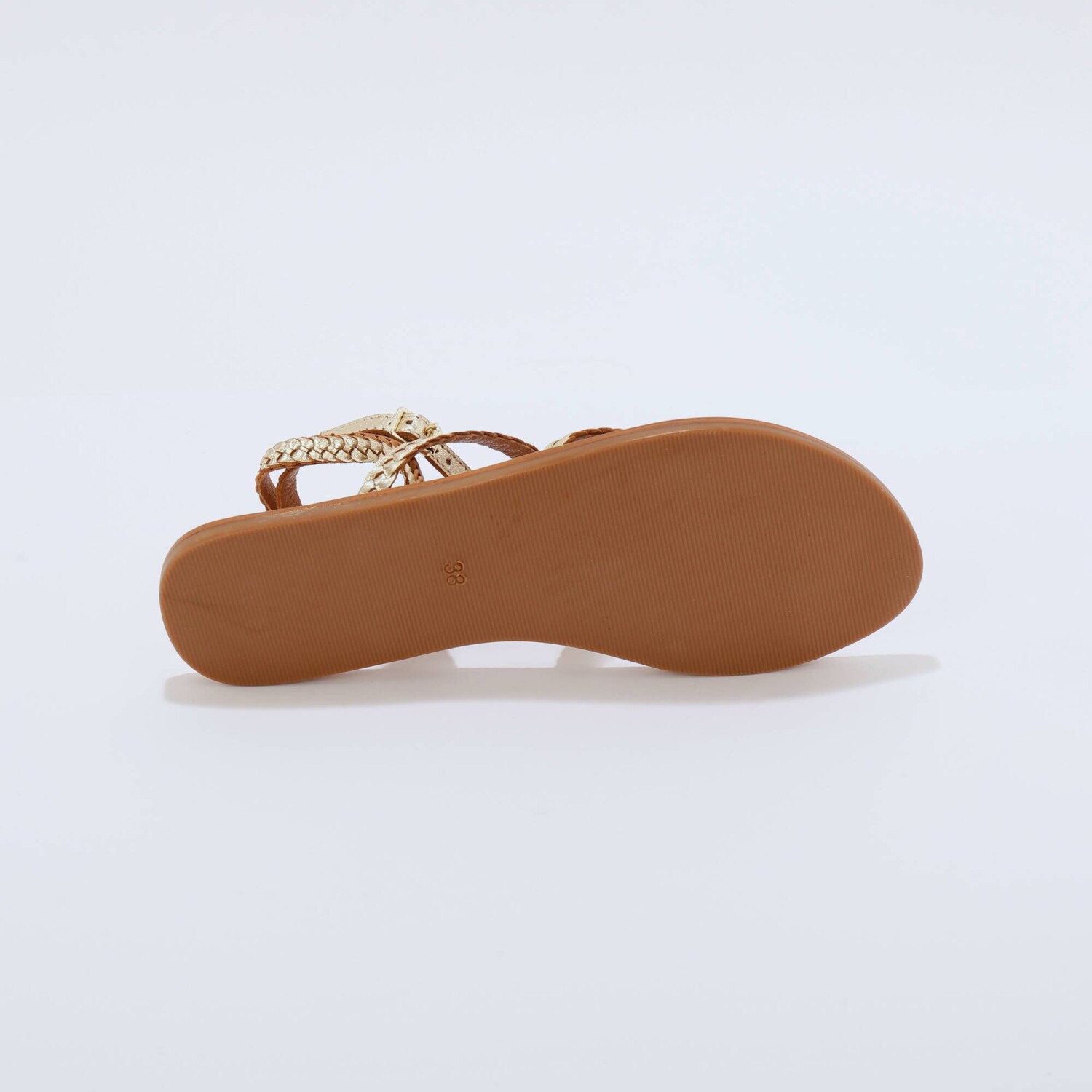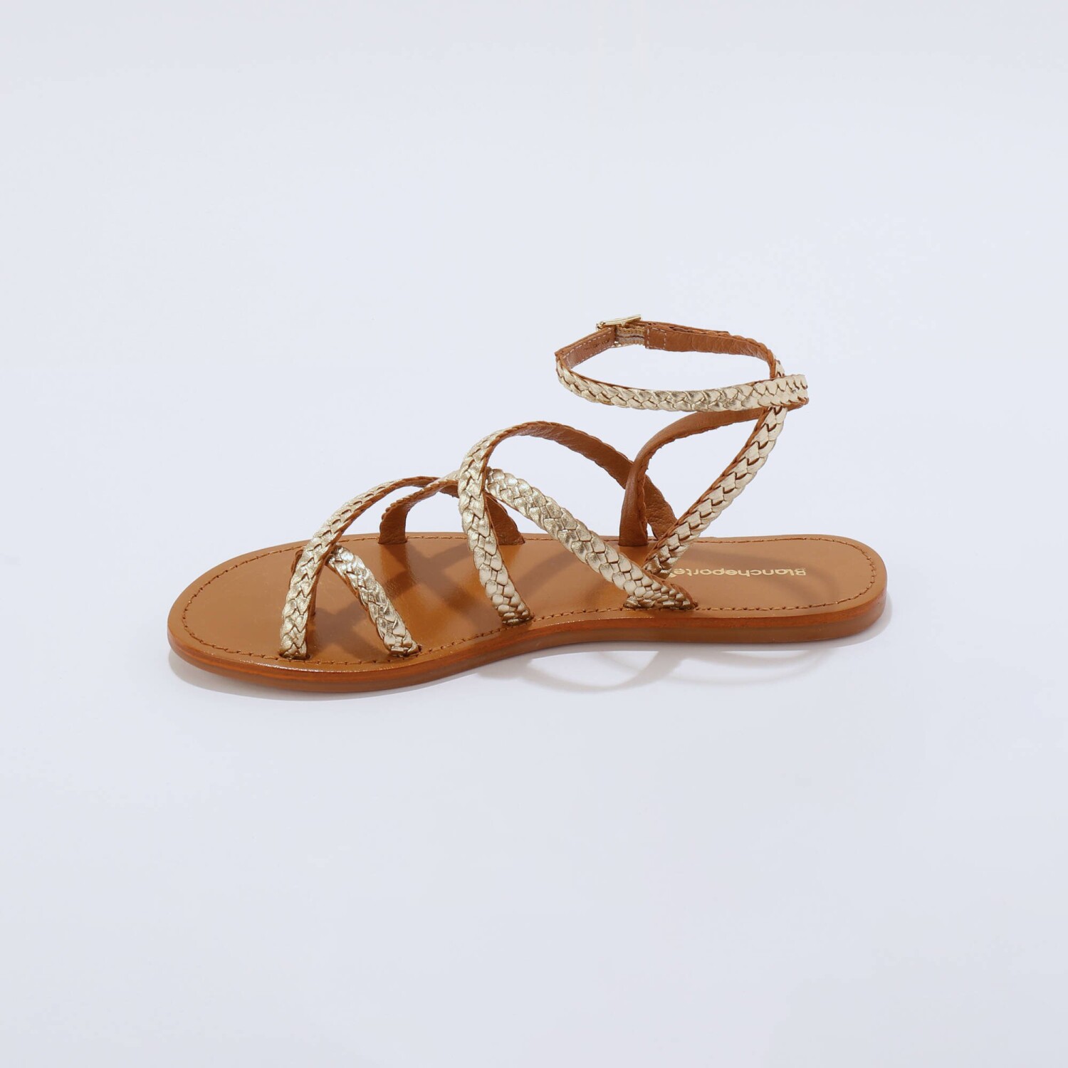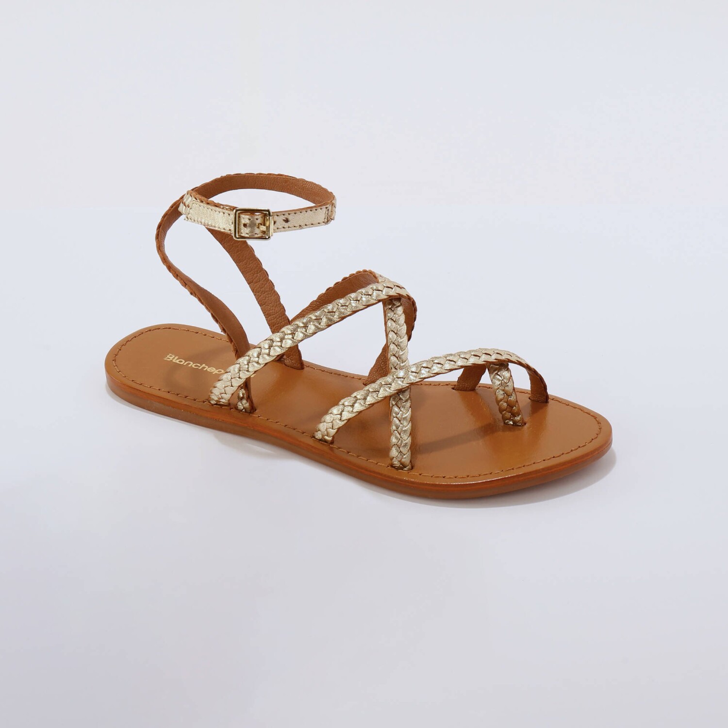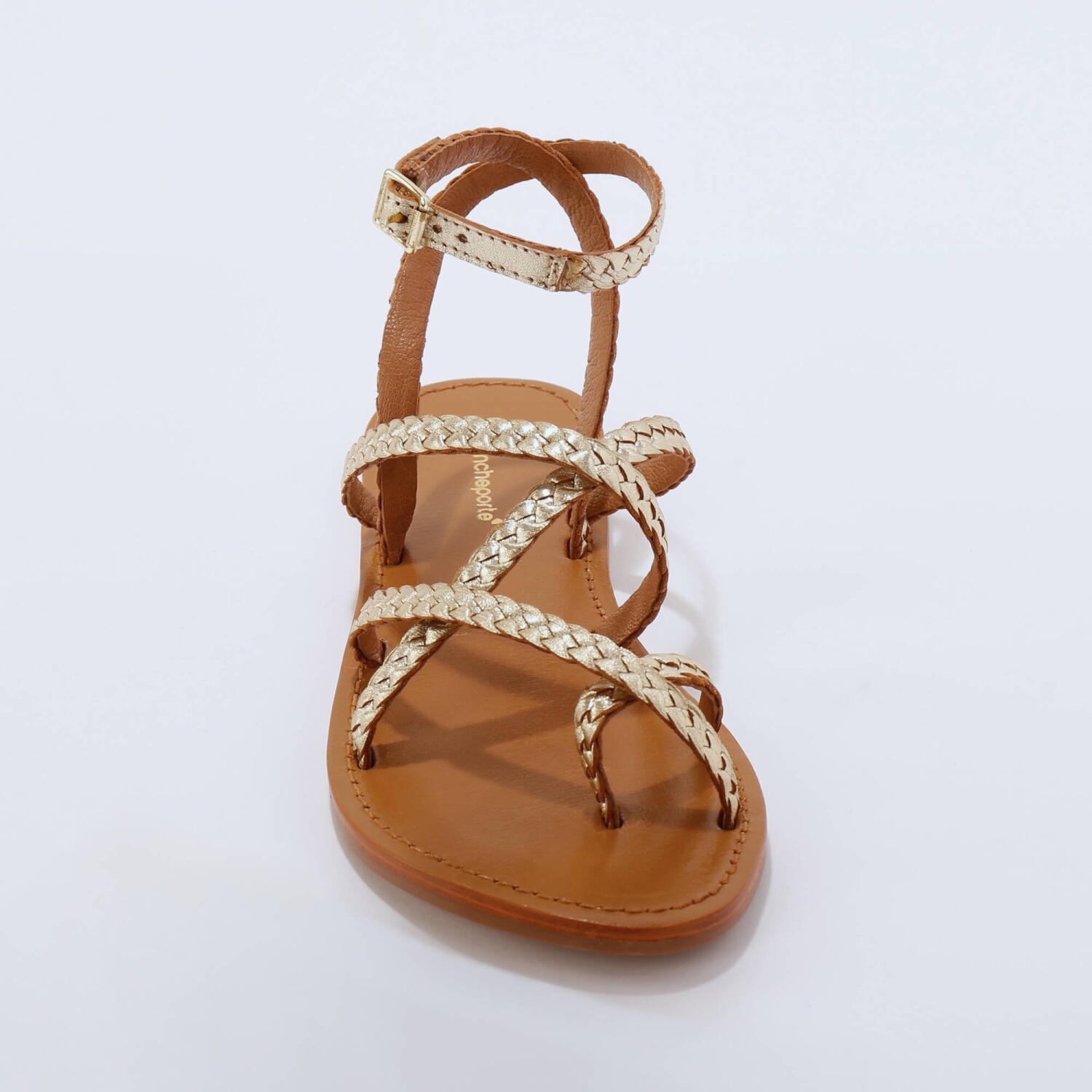 Піддайтеся стилю бохо та ажурному верху цих шкіряних сандалій від Pédiconfort. Для комфортного носіння протягом усього дня. Сандалі на танкетці від Pédiconfort. Модний верх з ажурним графічним візерунком та блискітками. Широкий ремінець на п'яті та щиколотці. Пряжка для регулювання + вставлена гумка. Шкіряна устілка на товстому пінопласті (аероземель). Двоколірна підошва на танкетці.