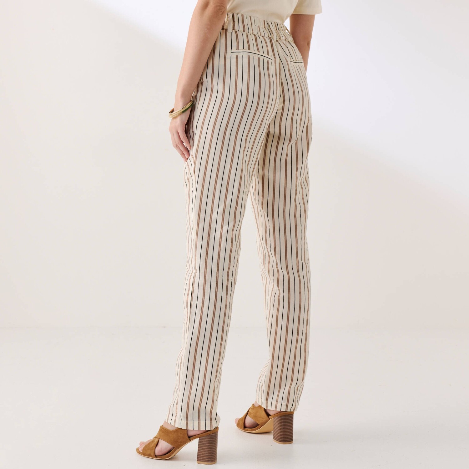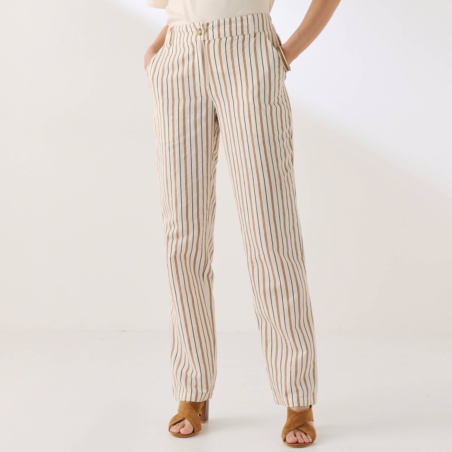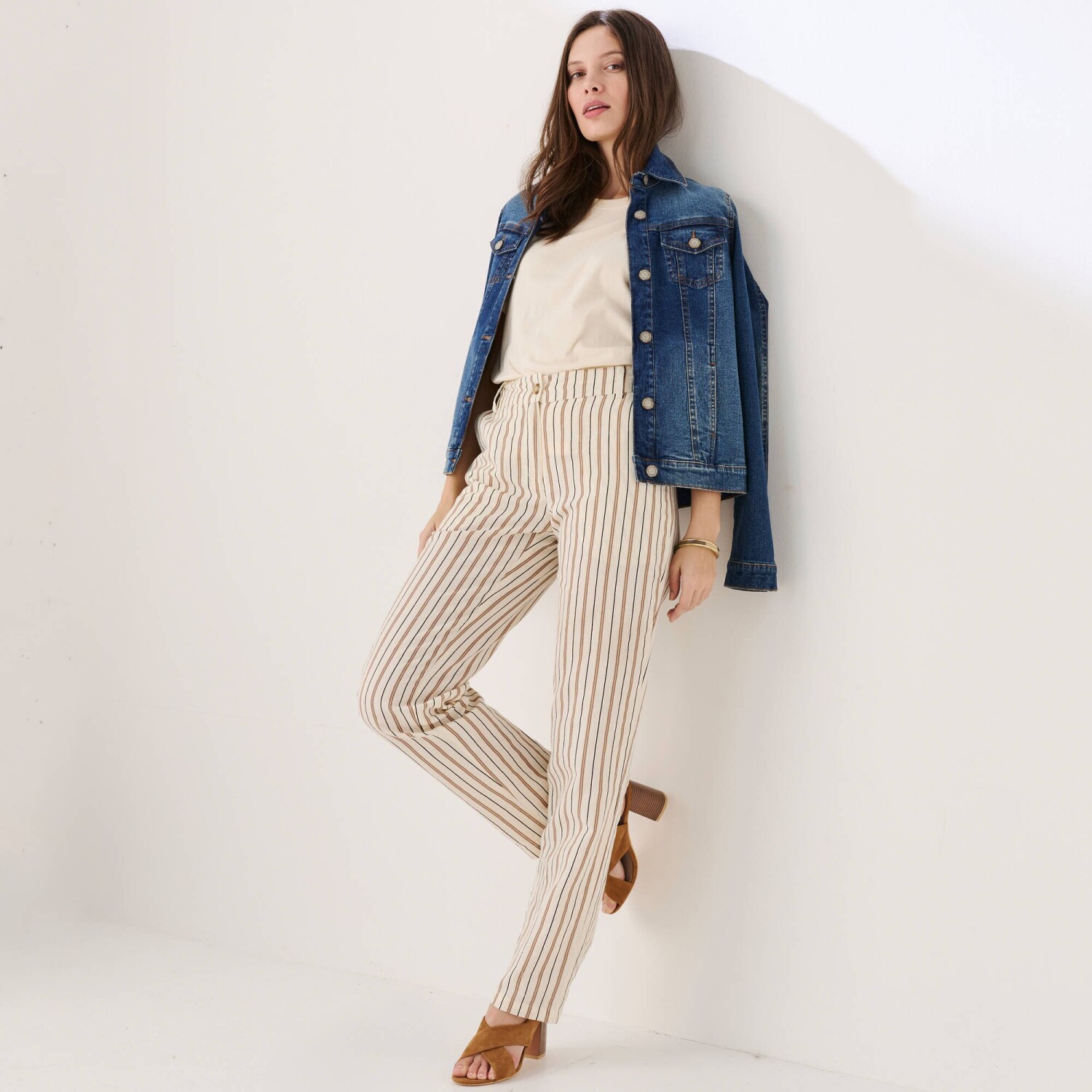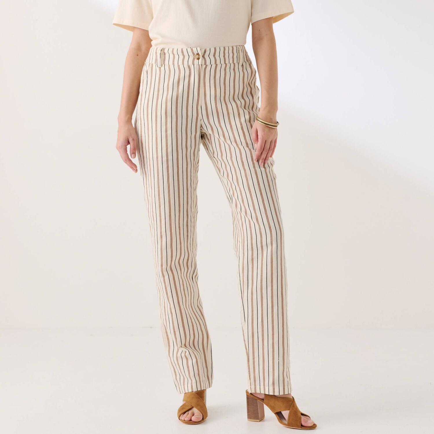Дуже модні штани еластичного крою чінос, які можна підгорнути за бажанням. Штани мають стандартну висоту талії. Талія зі шлевками, еластична стрічка з боків від 44 розміру. Застібка на блискавку та ґудзики. 2 прорізні кишені спереду. 2 витачки та 2 кишені з ґудзиками ззаду. Стандарт 100 згідно з Oeko-Tex (CQ 1216/3 IFTH). Цей знак вказує на текстильні вироби, які пройшли лабораторні випробування на широкий спектр шкідливих речовин, і виріб є безпечним понад чинні стандарти. Можна прати в пральній машині.