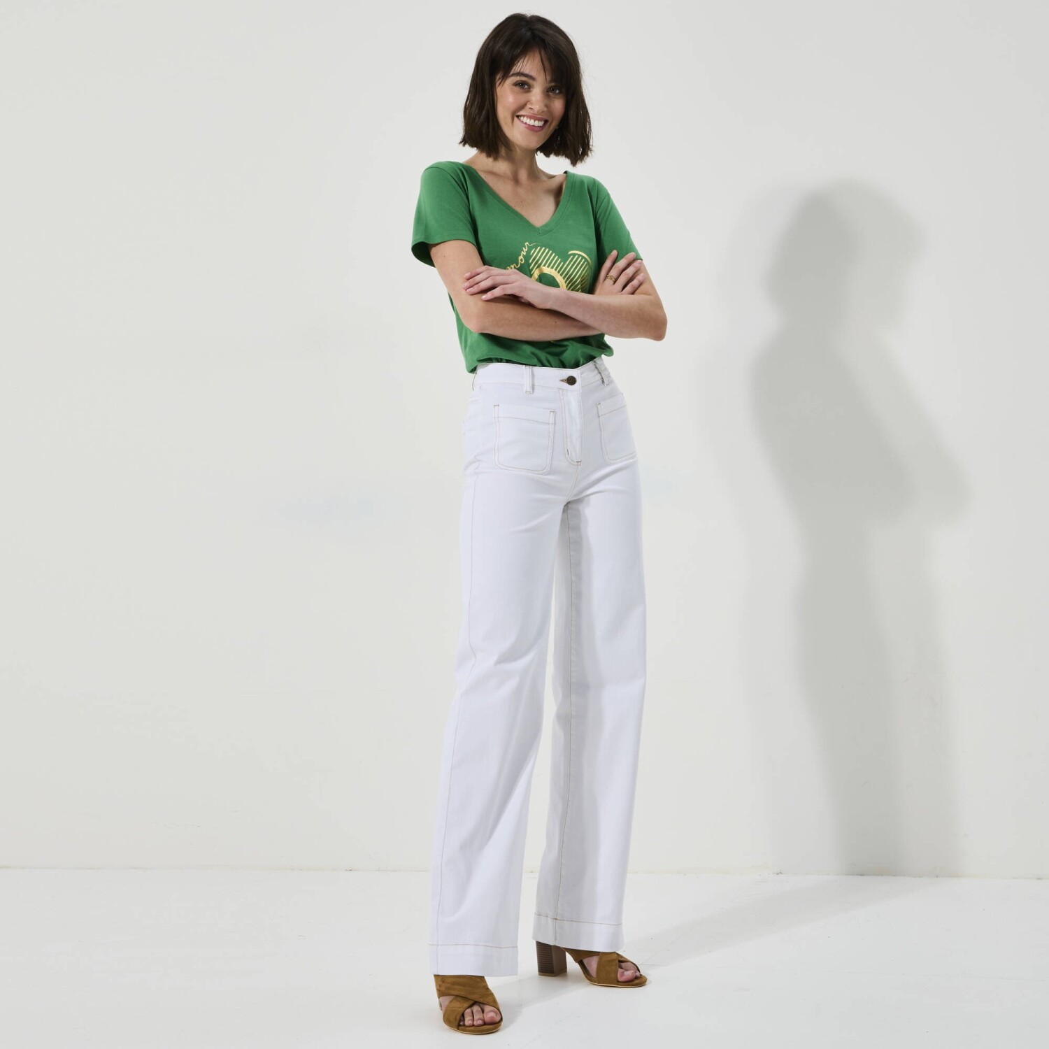 Освіжіть свій гардероб і змініть свій вигляд за допомогою цих кольорових і зручних брюк 3/4! Стрункий крій з 5 кишенями. Класична висота талії. Вшитий фігурний пояс, від розміру 44 з еластичними вставками ззаду з боків. Застібка на блискавку і ґудзик. Розрізи на кінцях штанин. Стандарт 100 згідно з Oeko-Tex (№ CQ 1216 / 3 IFTH). Цей знак позначає текстильні вироби, які пройшли лабораторні випробування на наявність широкого спектру шкідливих речовин і є безпечними понад діючі норми. Можна прати в пральній машині.