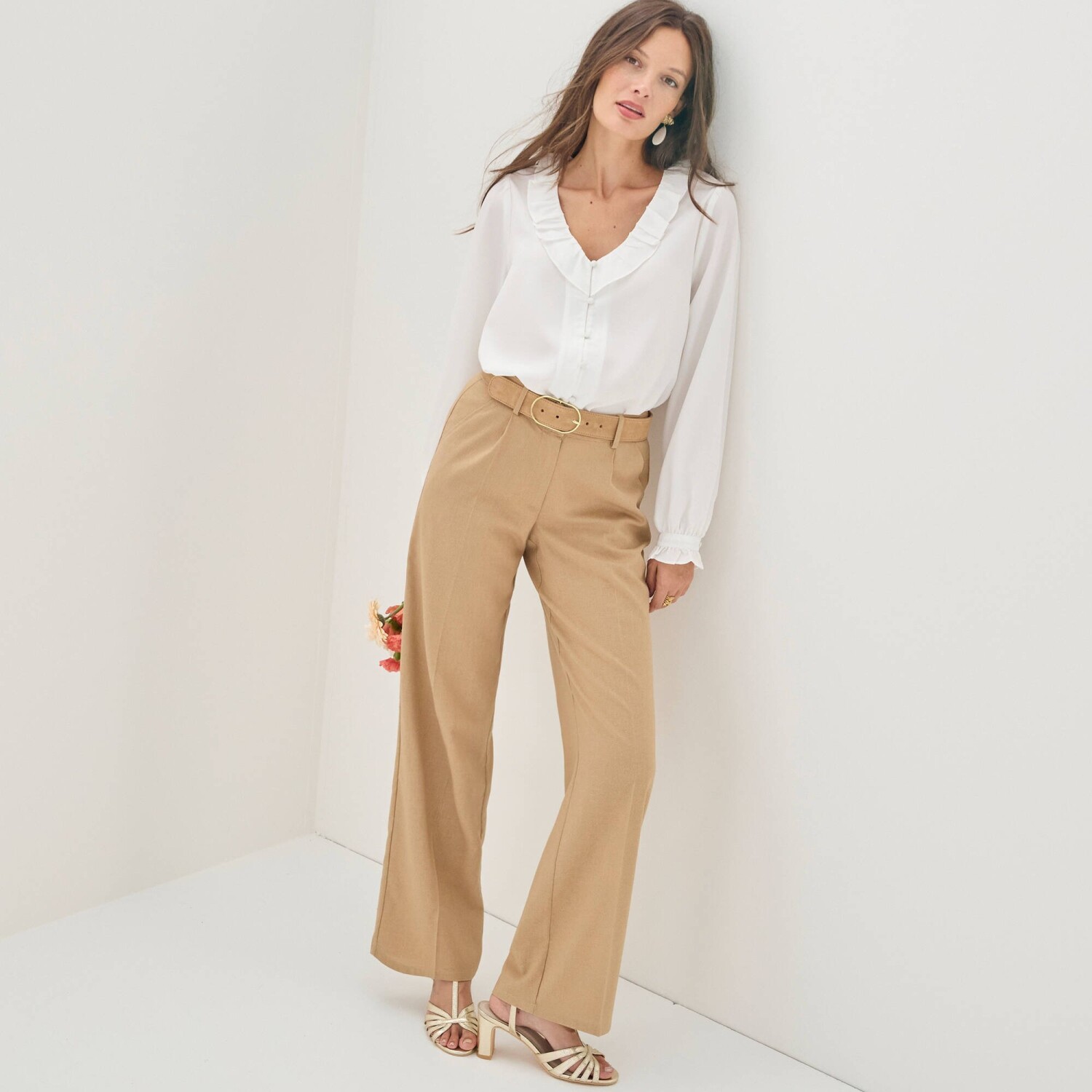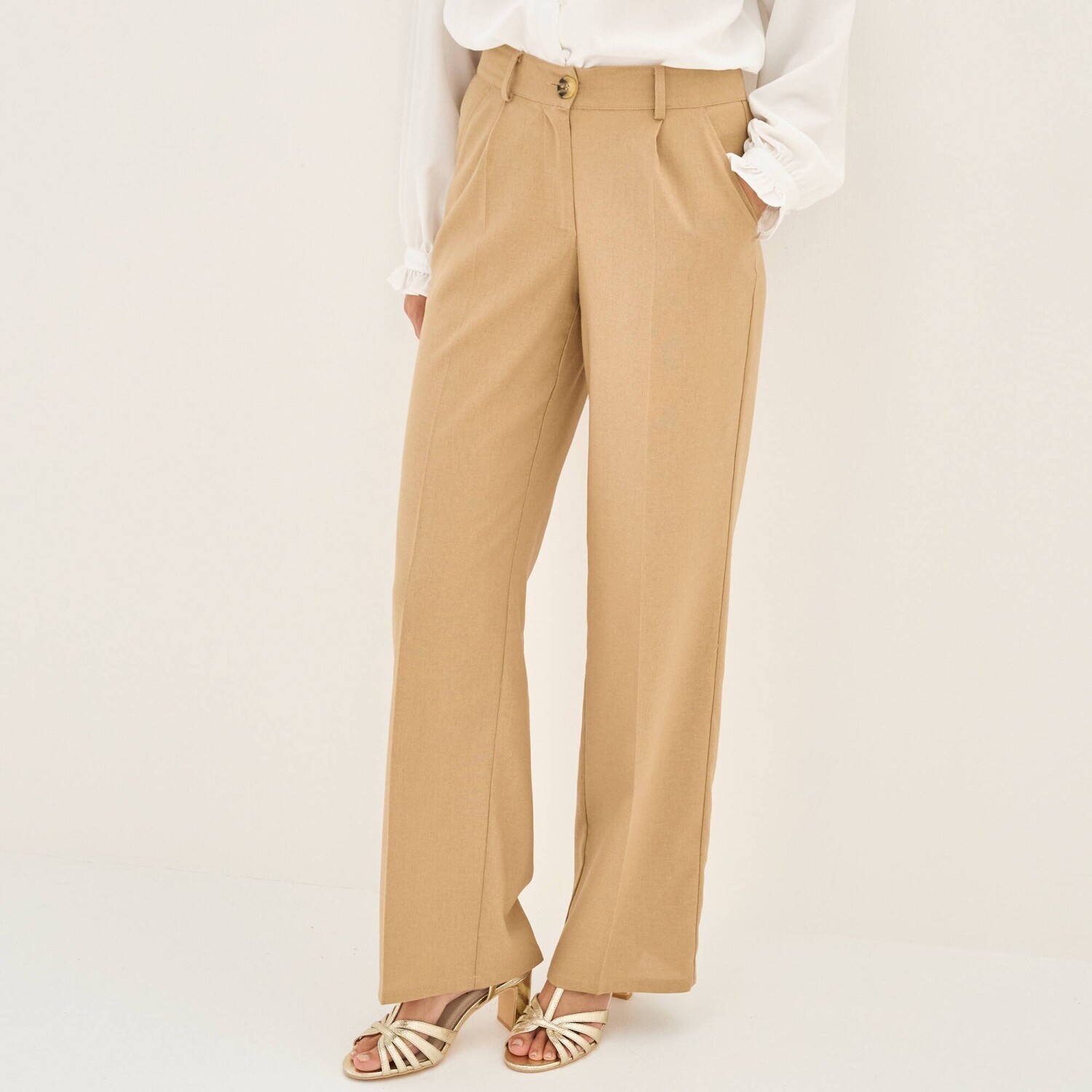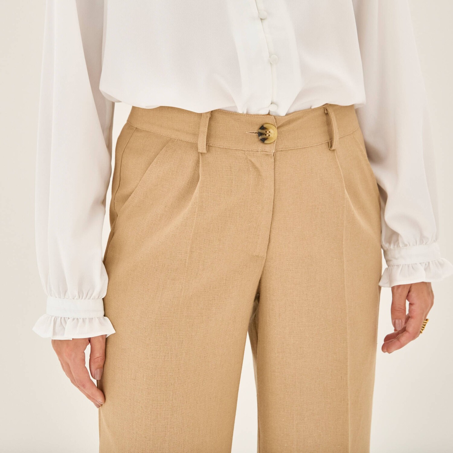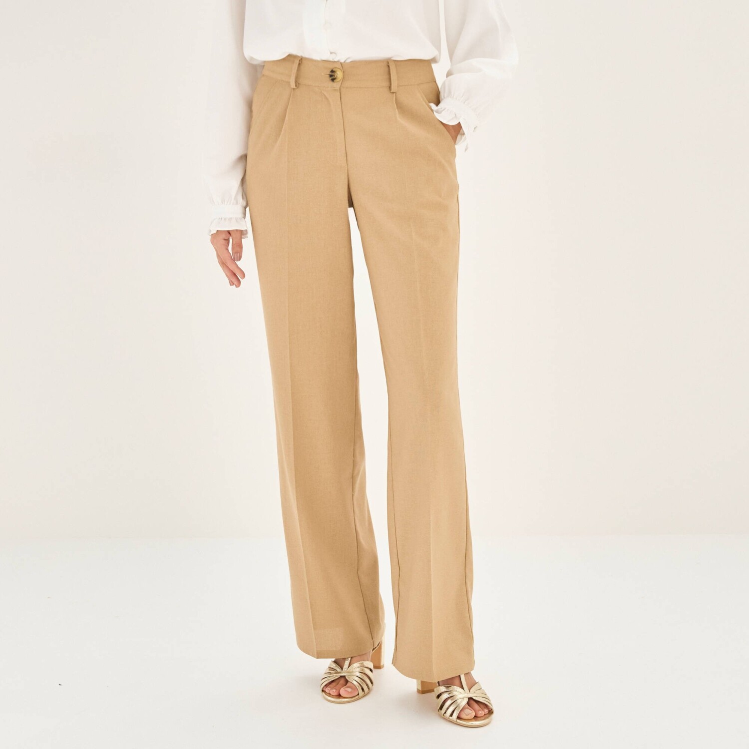 Штани-сигарети з візерунком «глен» пропорційно розроблені для меншої фігури (160 см або менше). Чудовий модний елемент для оптичного подовження силуету. Зручна в'язка. Стандартна талія. Приталений крій, що подовжує фігуру. Фігурна талія спереду, плоска та еластична ззаду. Застібка на блискавку, 2 гачки та внутрішній ґудзик. 2 передні прорізні кишені. 2 фальшиві кишені з окантовкою ззаду. Виточки спереду та ззаду. Штани з прихованим низом. Шайби. Можна прати в пральній машині.