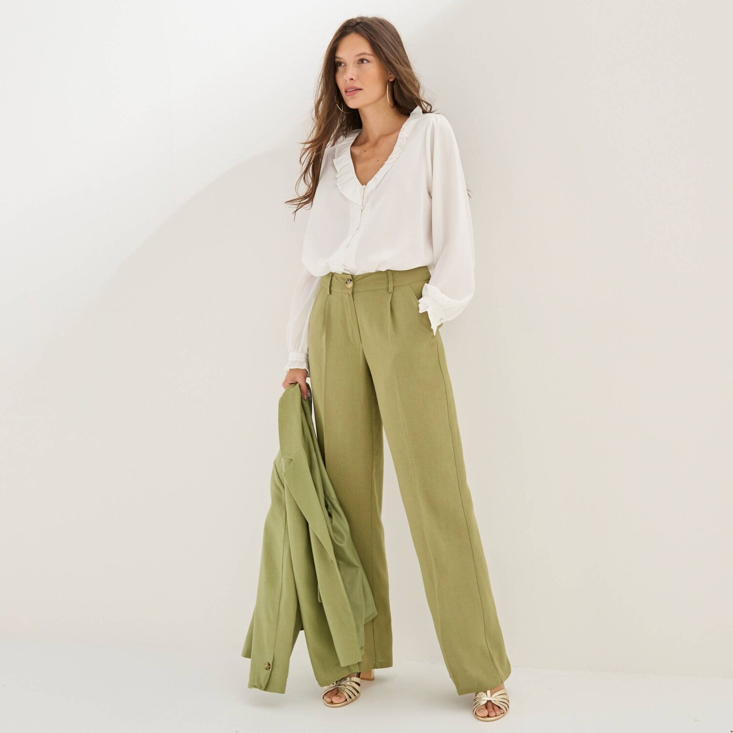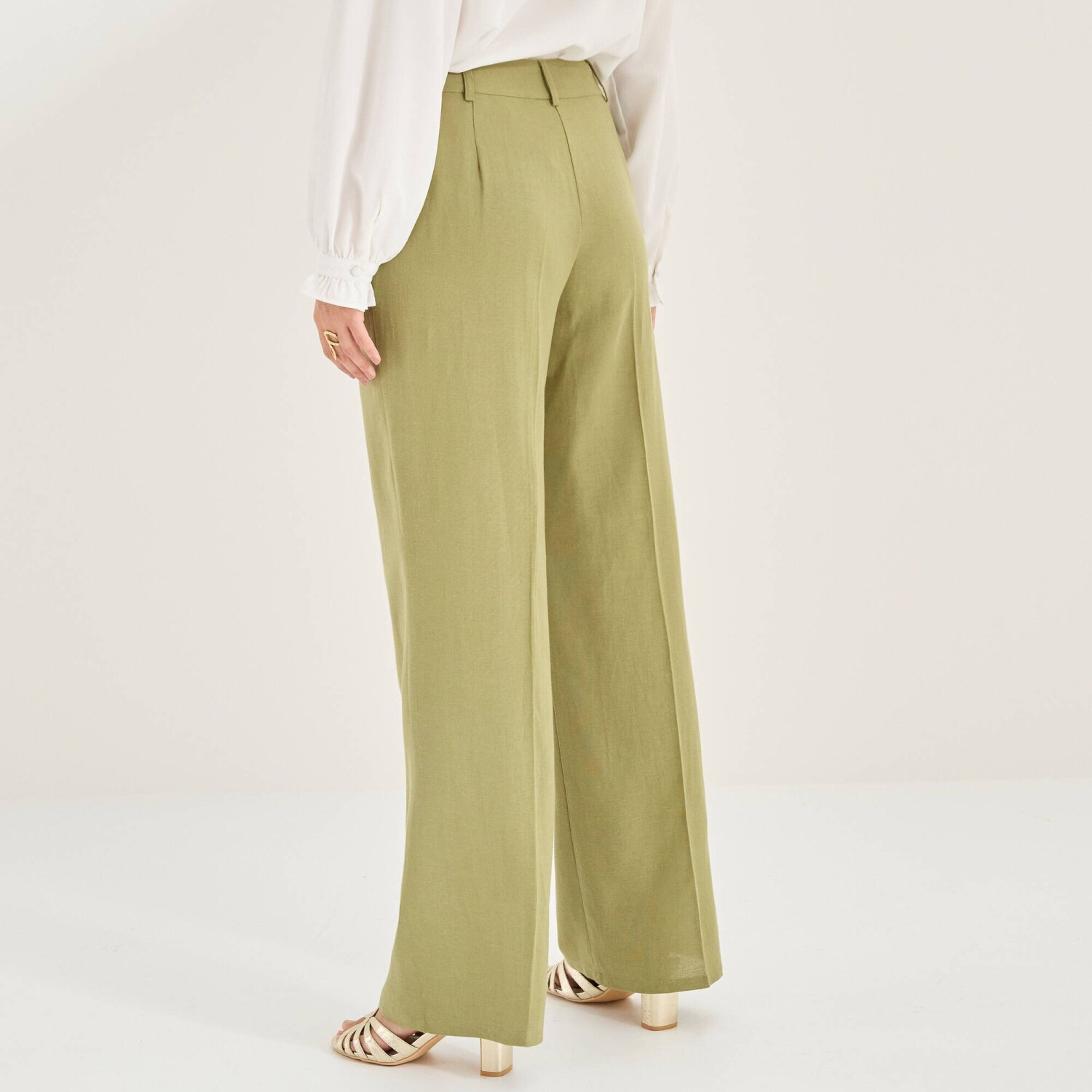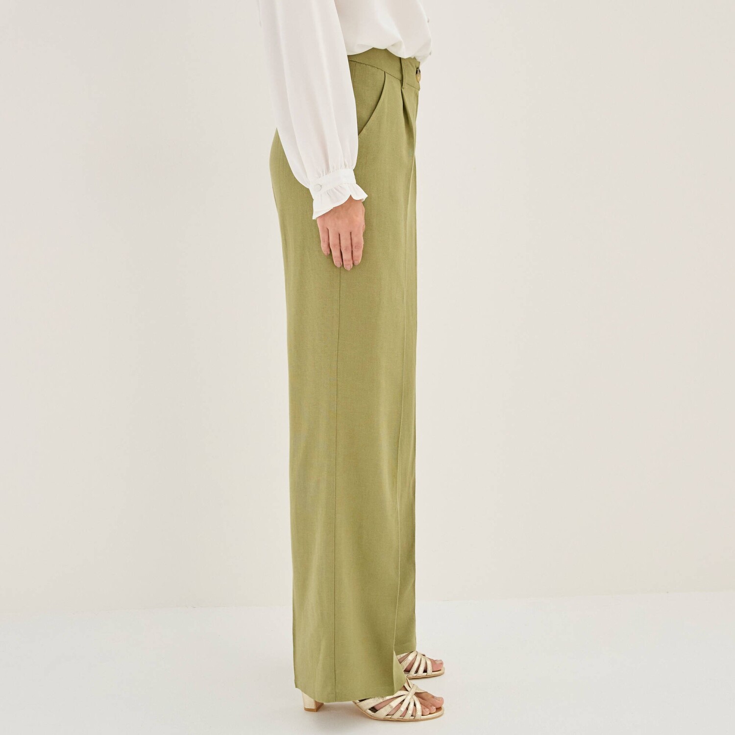 Ніякого тиску. Ці штани обов'язково стануть вашими улюбленими. Струмливий крій на трендову ширину штанин і скошені бокові кишені. Якісний трикотаж. Можна прати при температурі 30 °C. Облягає фігуру.