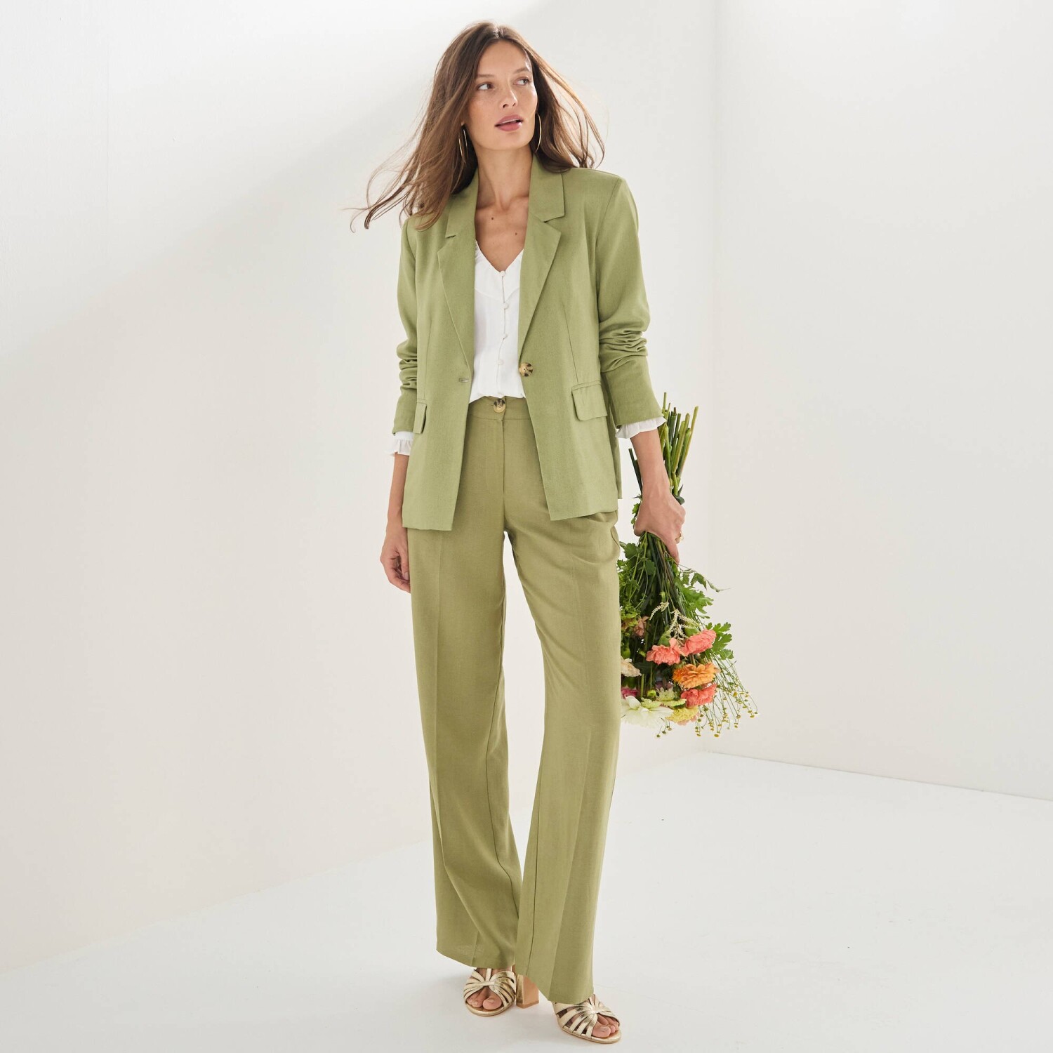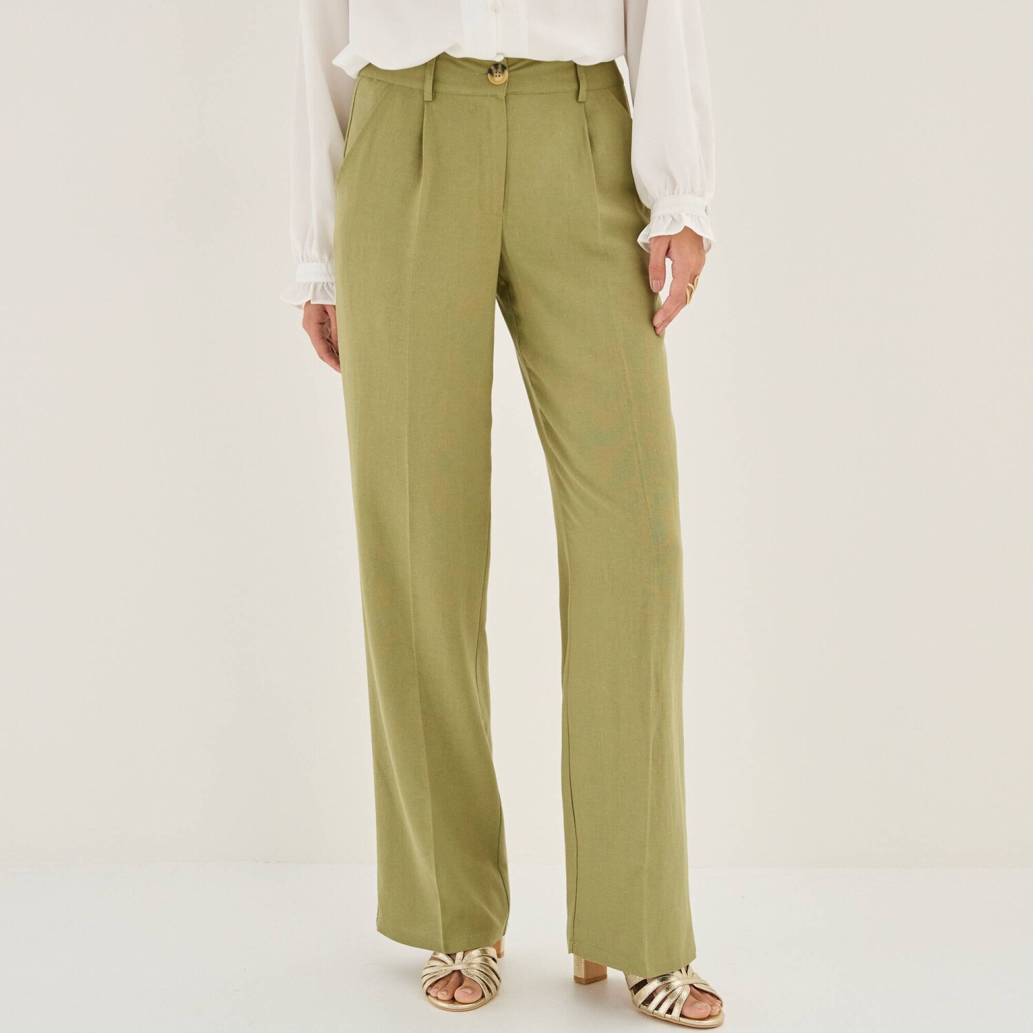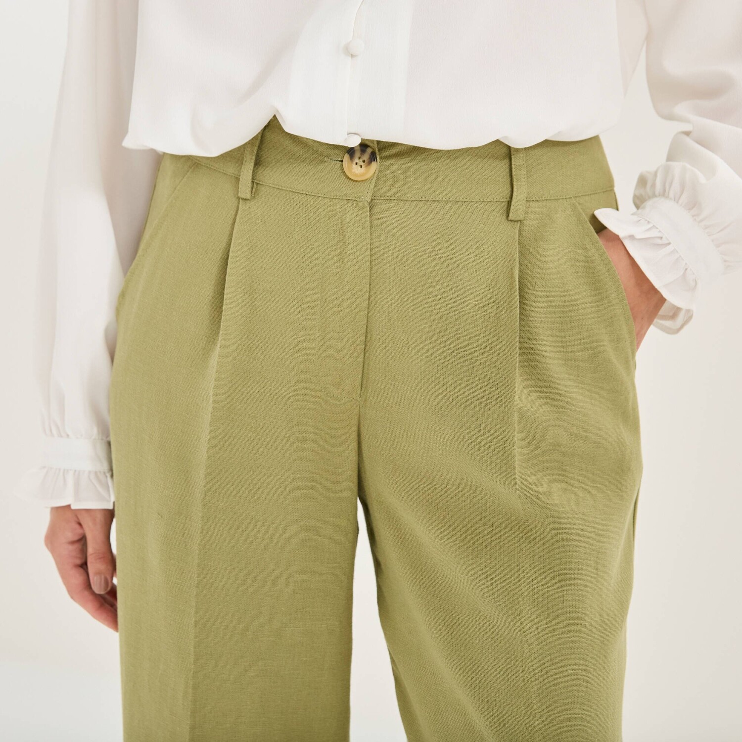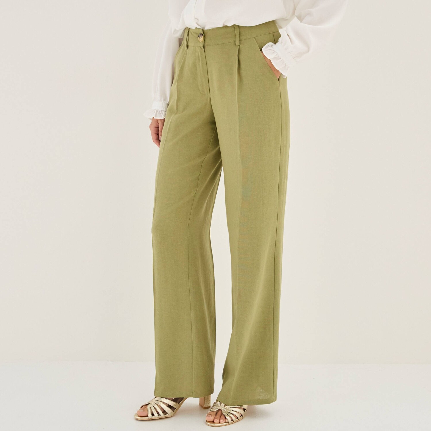 Ніякого тиску. Ці штани обов'язково стануть вашими улюбленими. Струмливий крій на трендову ширину штанин і скошені бокові кишені. Якісний трикотаж. Можна прати при температурі 30 °C. Облягає фігуру.