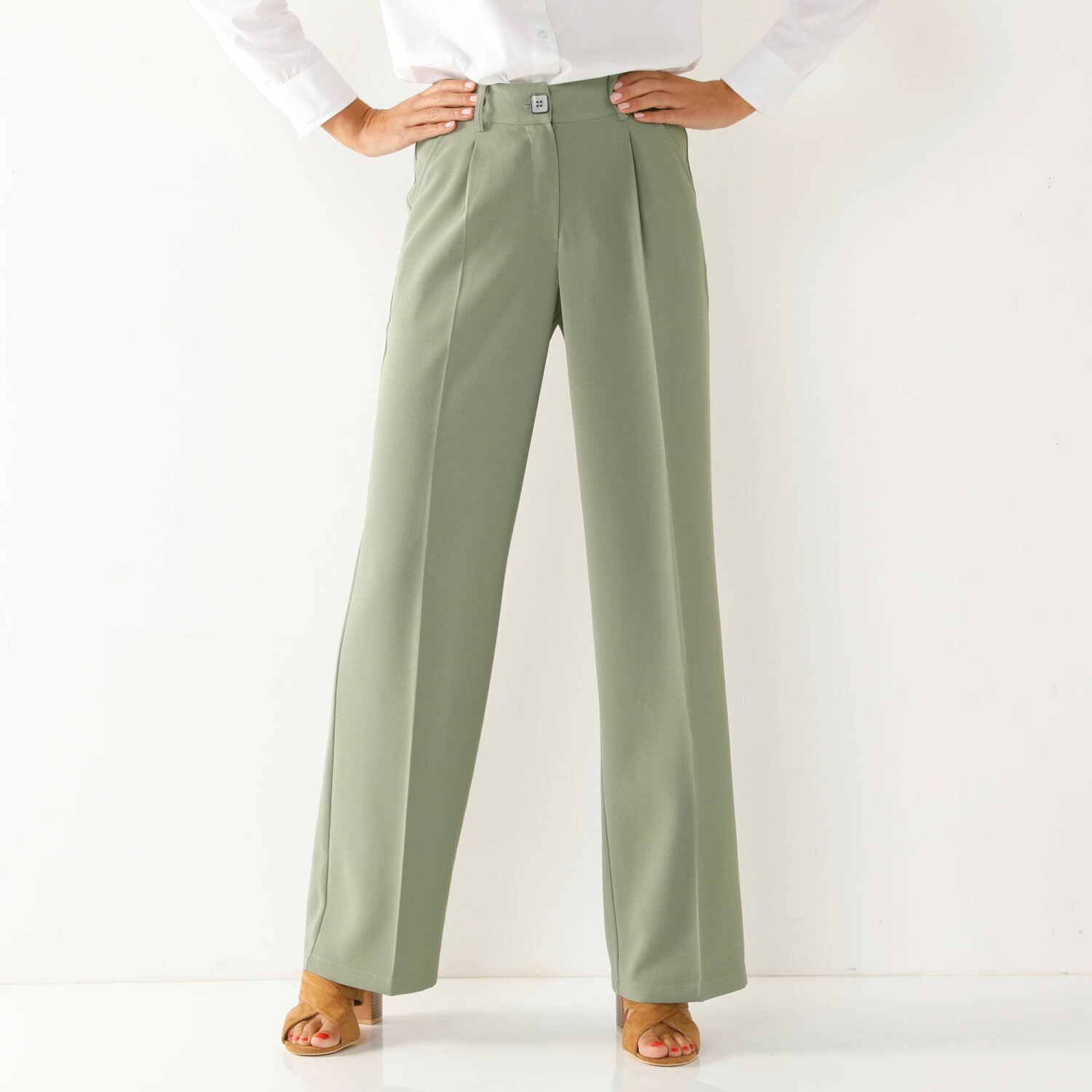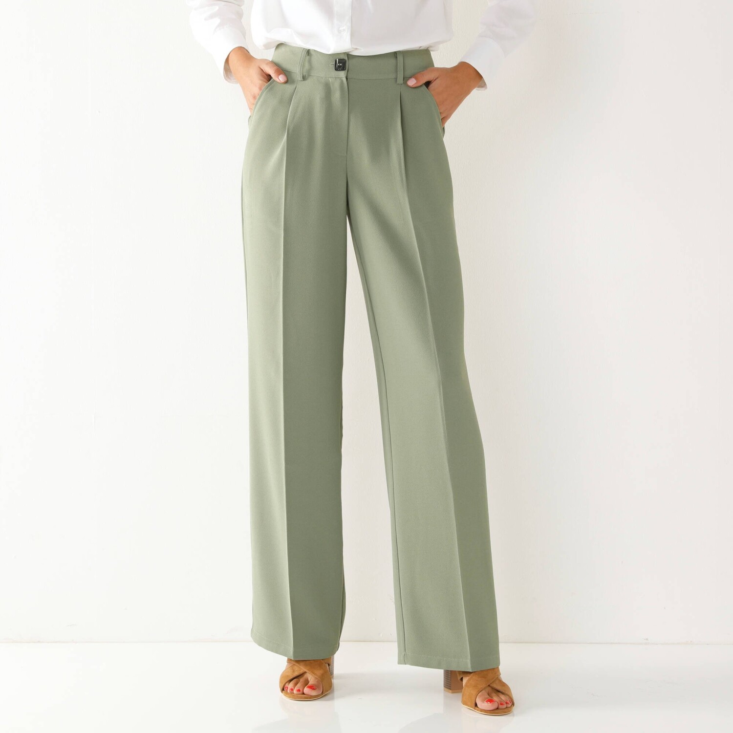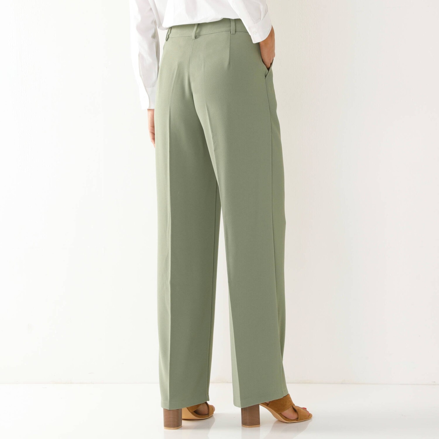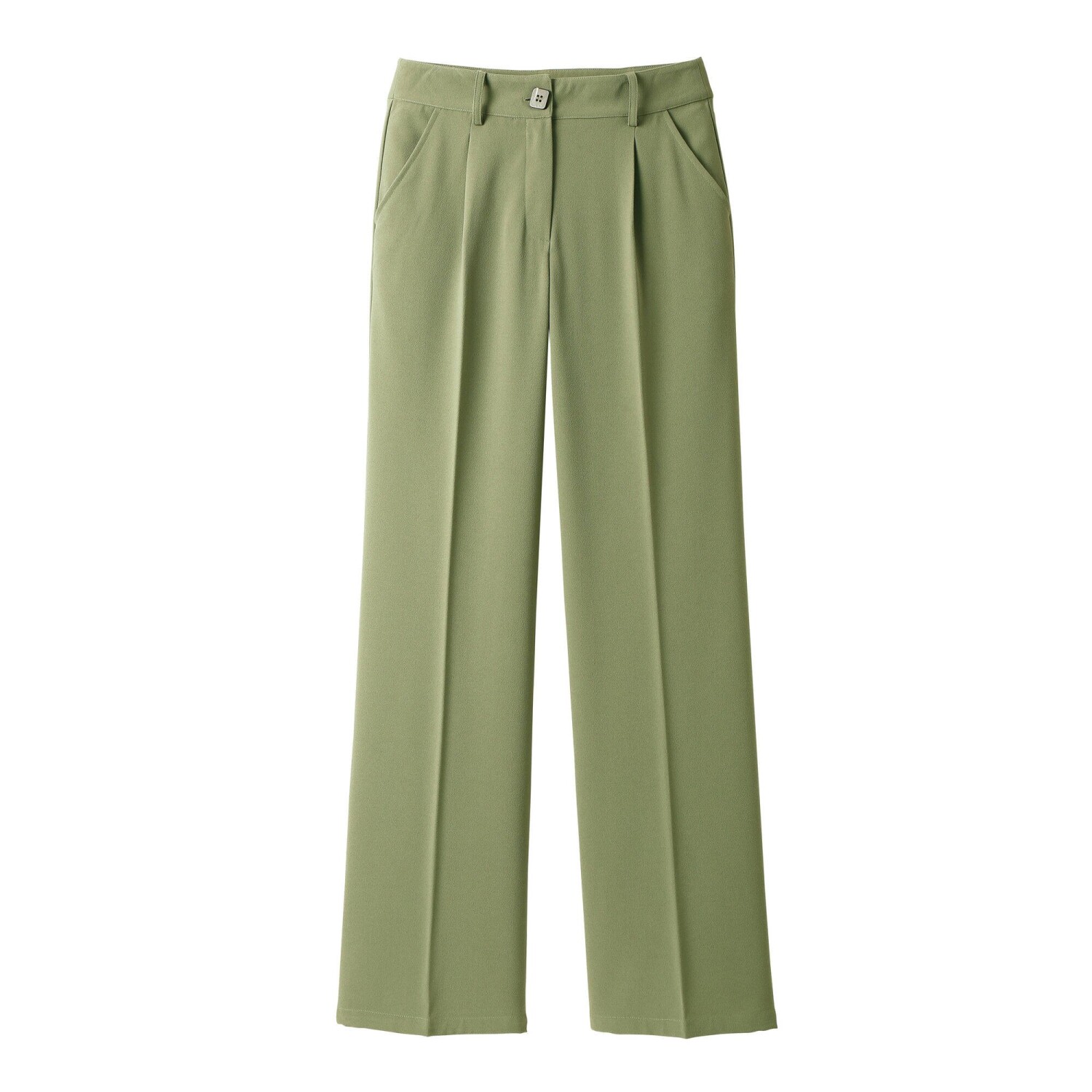 Елегантні та струмливі, ці широкі штани можна вільно комбінувати з вашими улюбленими речами. Повітряний, струмливий матеріал. Регулярна висота талії. Широкий крій. Фігурний пояс з петлями для ременя. Застібка на блискавку + ґудзик. 2 передні кишені. Передні прорізні кишені. Застібки-блискавки ззаду. Можна прати у пральній машині.