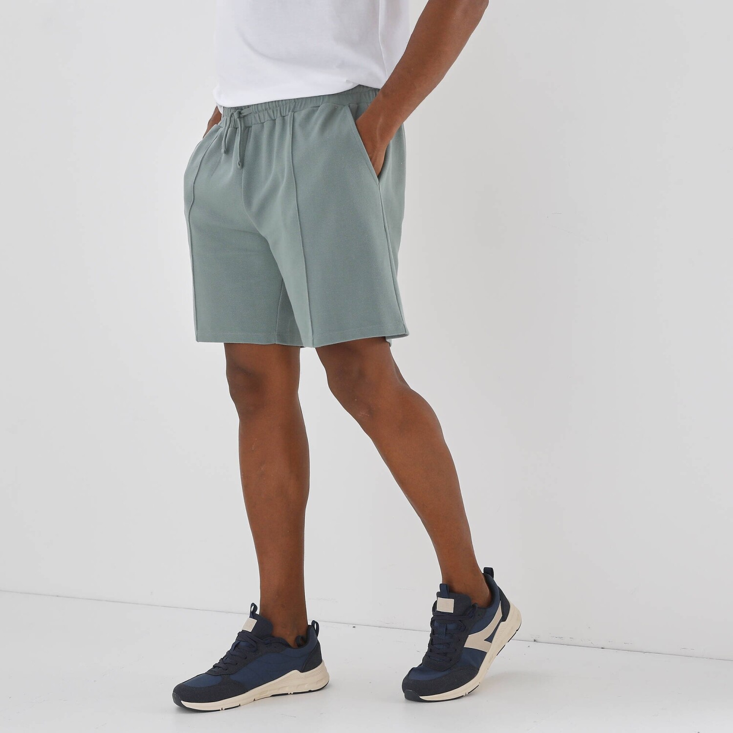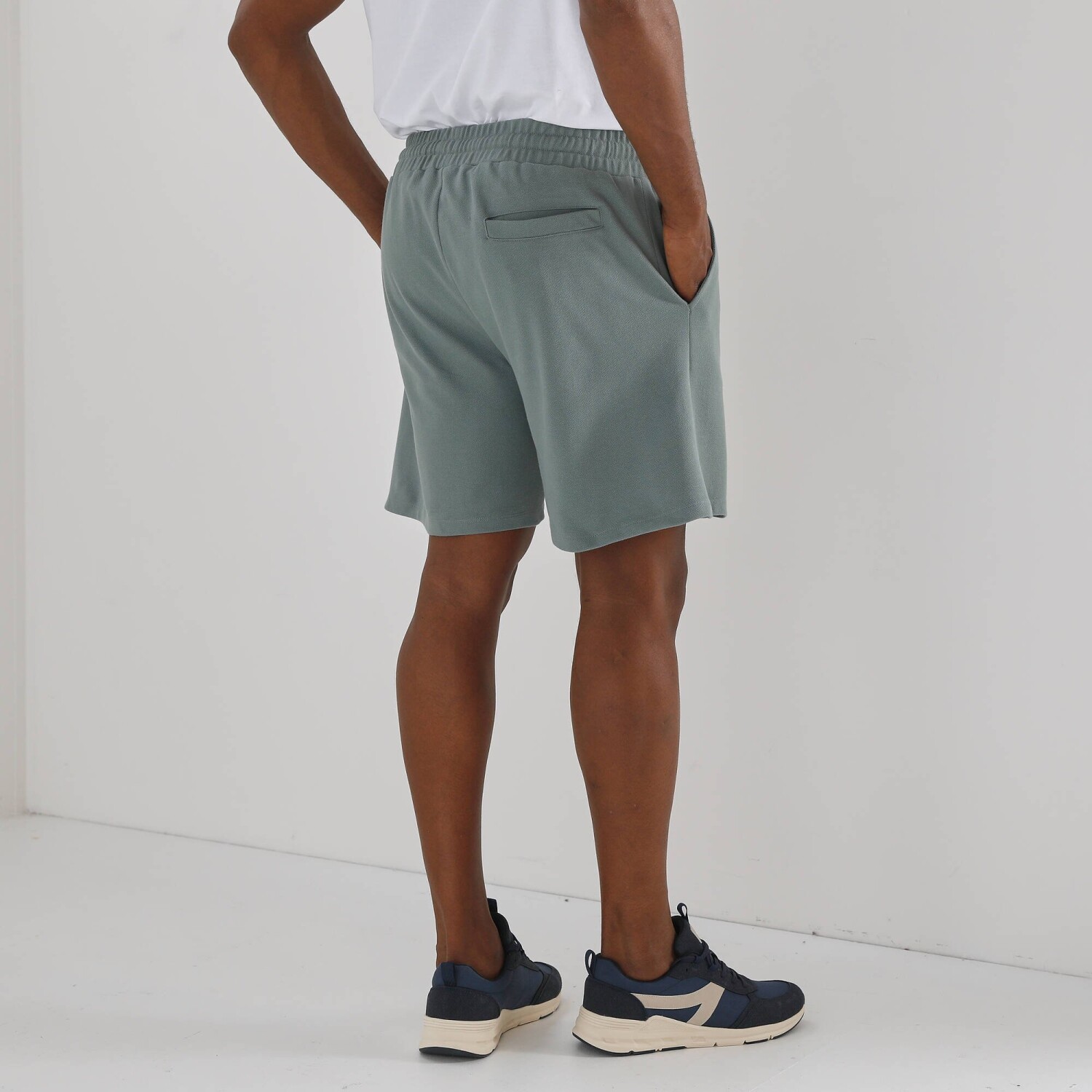 Виготовлені з хвилястого піке-трикотажу, з еластичним поясом і 3 кишенями: ці шорти – must-have для будь-якого повсякденного або спортивного образу. Тонка в'язка. Еластичний пояс зі шнурком. 2 прорізні кишені. 1 прорізна кишеня ззаду. Прямі штанини. Стандарт Oeko-Tex 100 (n° CQ 1216 / 3 IFTH). Цей знак позначає текстильні вироби, які пройшли лабораторні випробування на широкий спектр шкідливих речовин і є безпечними понад чинні стандарти. Можна прати в пральній машині.