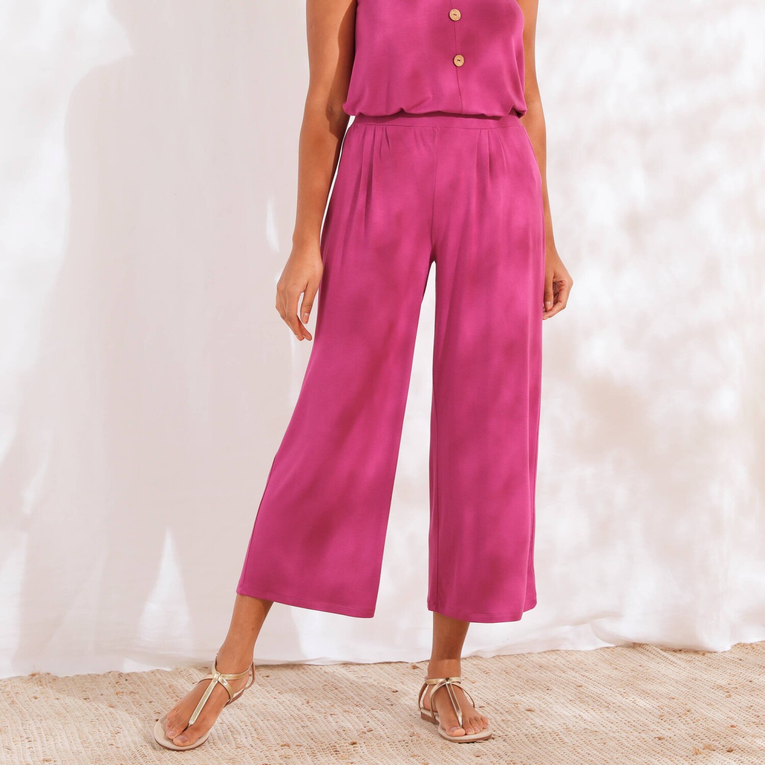 Навіть мініатюрні жінки можуть дозволити собі широкі джинси довжиною 7/8 та з високою талією. Ідеально підходять для зросту від 155 до 160 см. Крій 7/8. Висока талія. Шлевки для ременя на талії, застібка на блискавку та ґудзики спереду. 5 кишень. Піднятий край ззаду. Строчка тон у тон. Широкий строчний поділ на кінцях штанин. Стандарт 100 згідно з Oeko-Tex. Цей знак вказує на текстильні вироби, які пройшли лабораторні випробування на широкий спектр шкідливих речовин, і виріб є безпечним понад чинні стандарти. Можна прати в пральній машині.