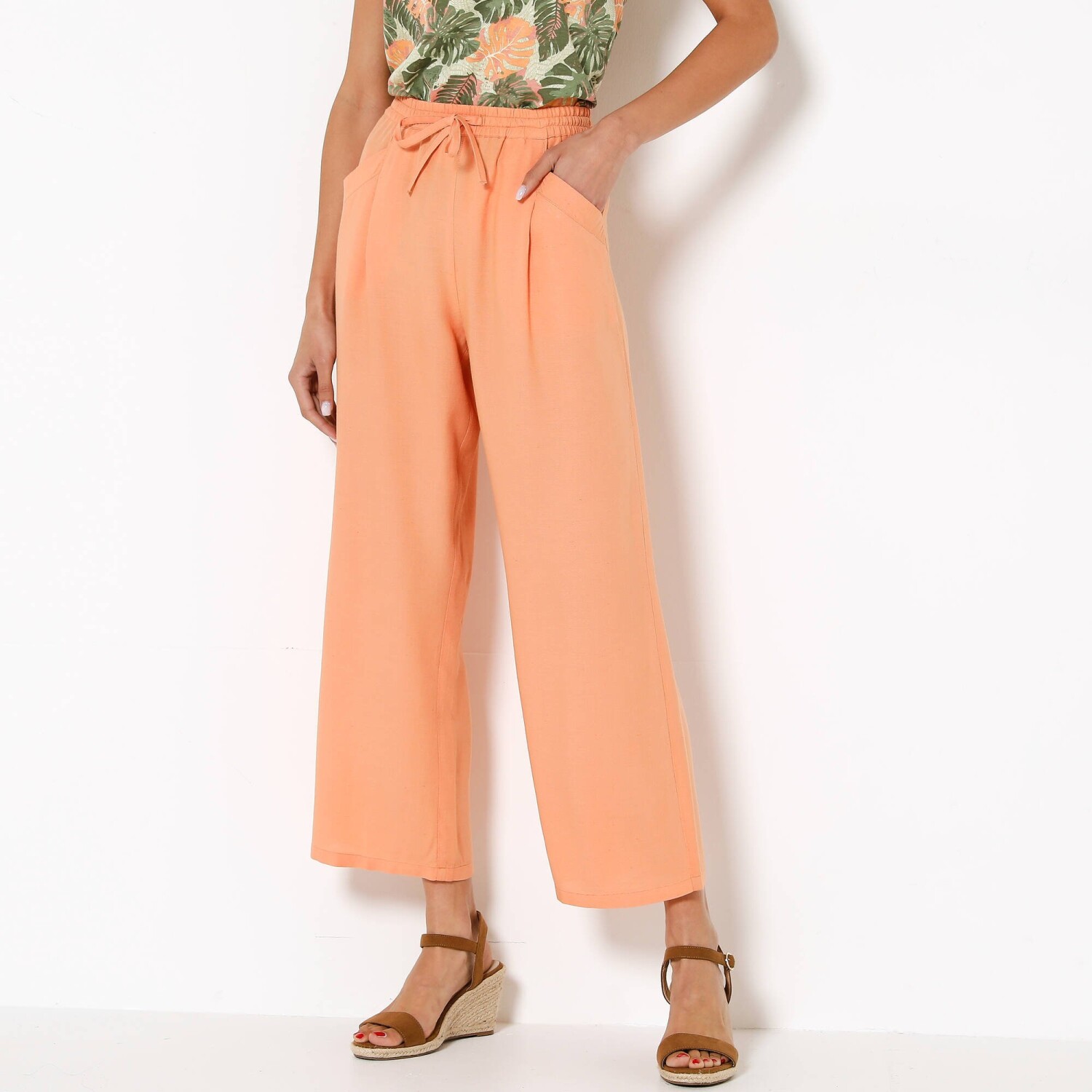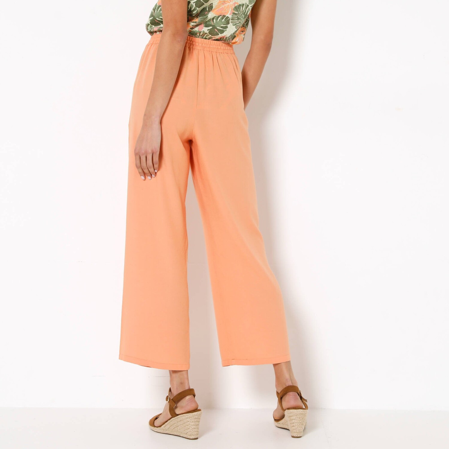 Приталений, фігурний пояс, який з 44-го розміру переходить в резинку ззаду на стегнах. Нормальна висота талії. Петлі для ременя. 2 передні кишені + 1 кишеня. Ззаду підвищення + 2 вшиті кишені. Можна прати у пральній машині.