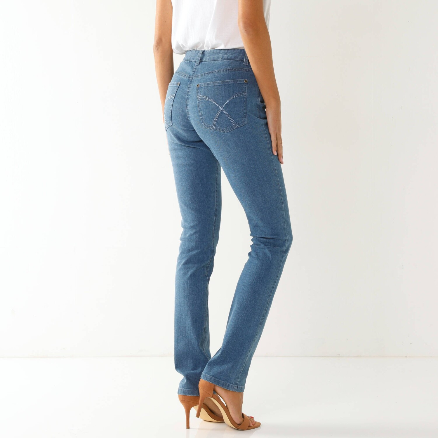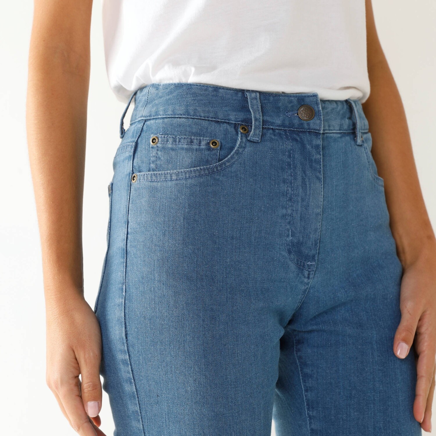 Зручні трикотажні однотонні штани 7/8, що облягають фігуру, ідеально підійдуть для різних випадків. Стандартна висота талії. Завужений крій 7/8. Ззаду еластичний пояс. Плоска талія з 5 петлями для ременя. 2 прорізні кишені спереду. 2 накладні кишені ззаду. Штани оброблені складкою. Можна прати в пральній машині.