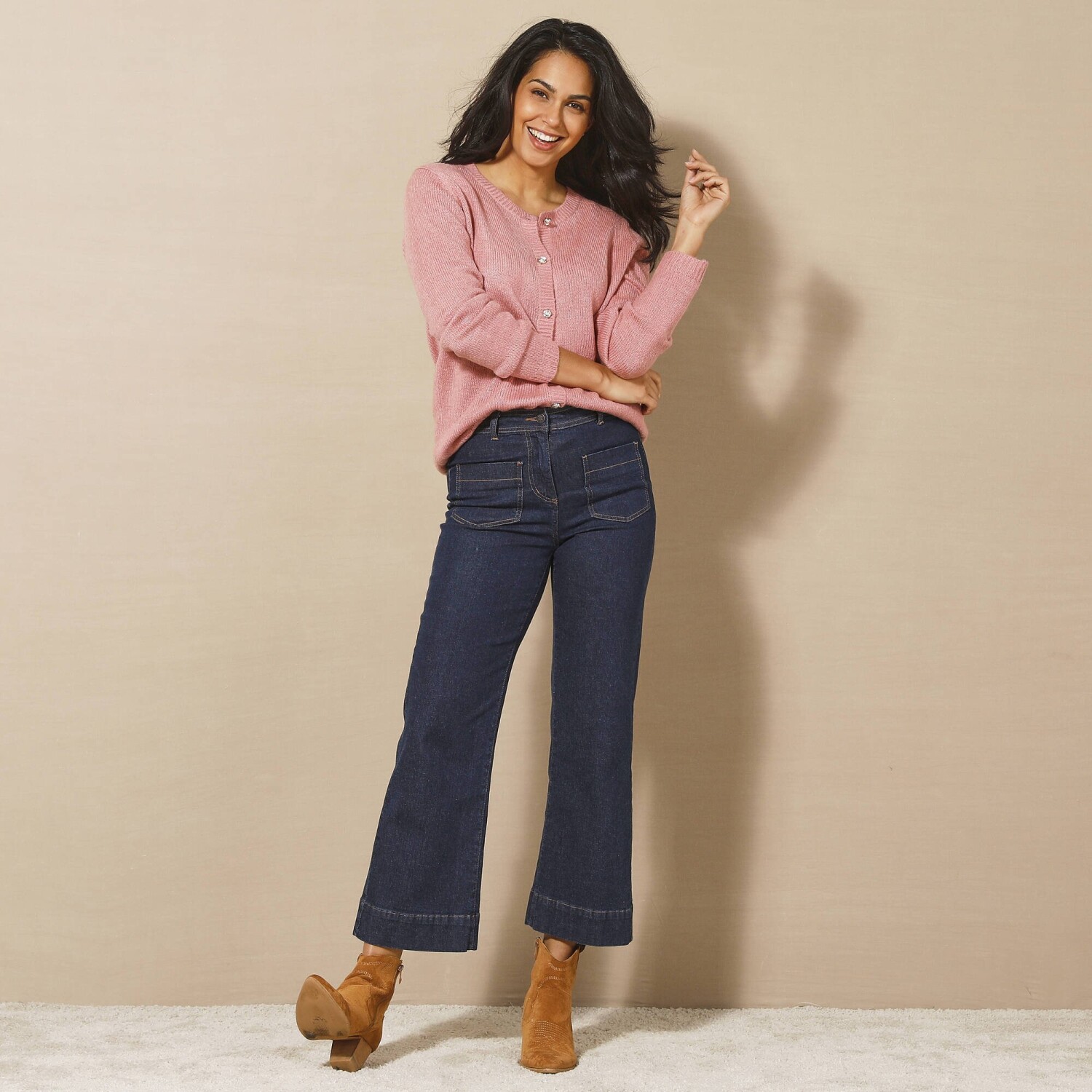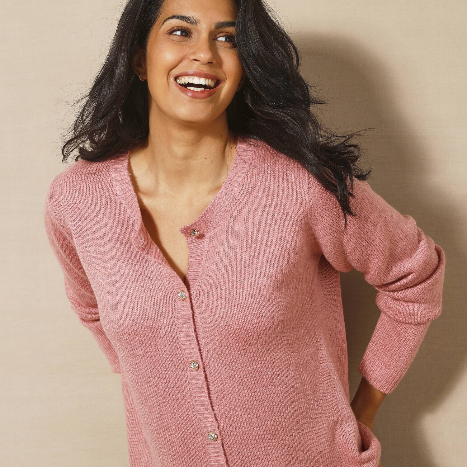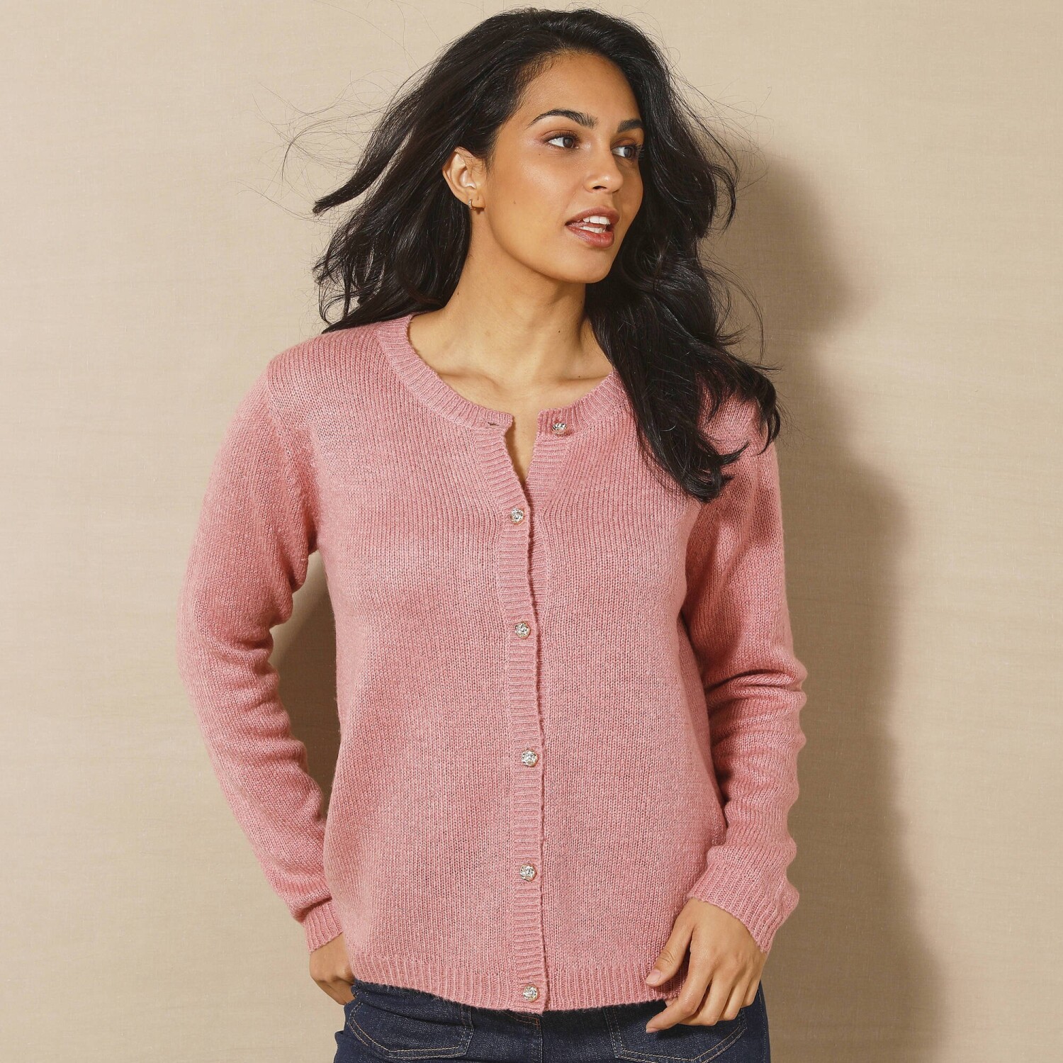 Підходить для будь-якого типу фігури. Металеві шпильки + оригінальний ґудзик. Сучасний крій (широкий і повітряний) зі спущеними плечима. Ребристий комір-стійка з асиметричною застібкою та оригінальним великим ґудзиком. Спереду застібка на запах. Довгий рукав з жакардовим візерунком на манжетах. Жакардовий візерунок спереду і ззаду по низу. Бокові розрізи для додаткового комфорту та жіночності. Прямий поділ. Можна прати у пральній машині.