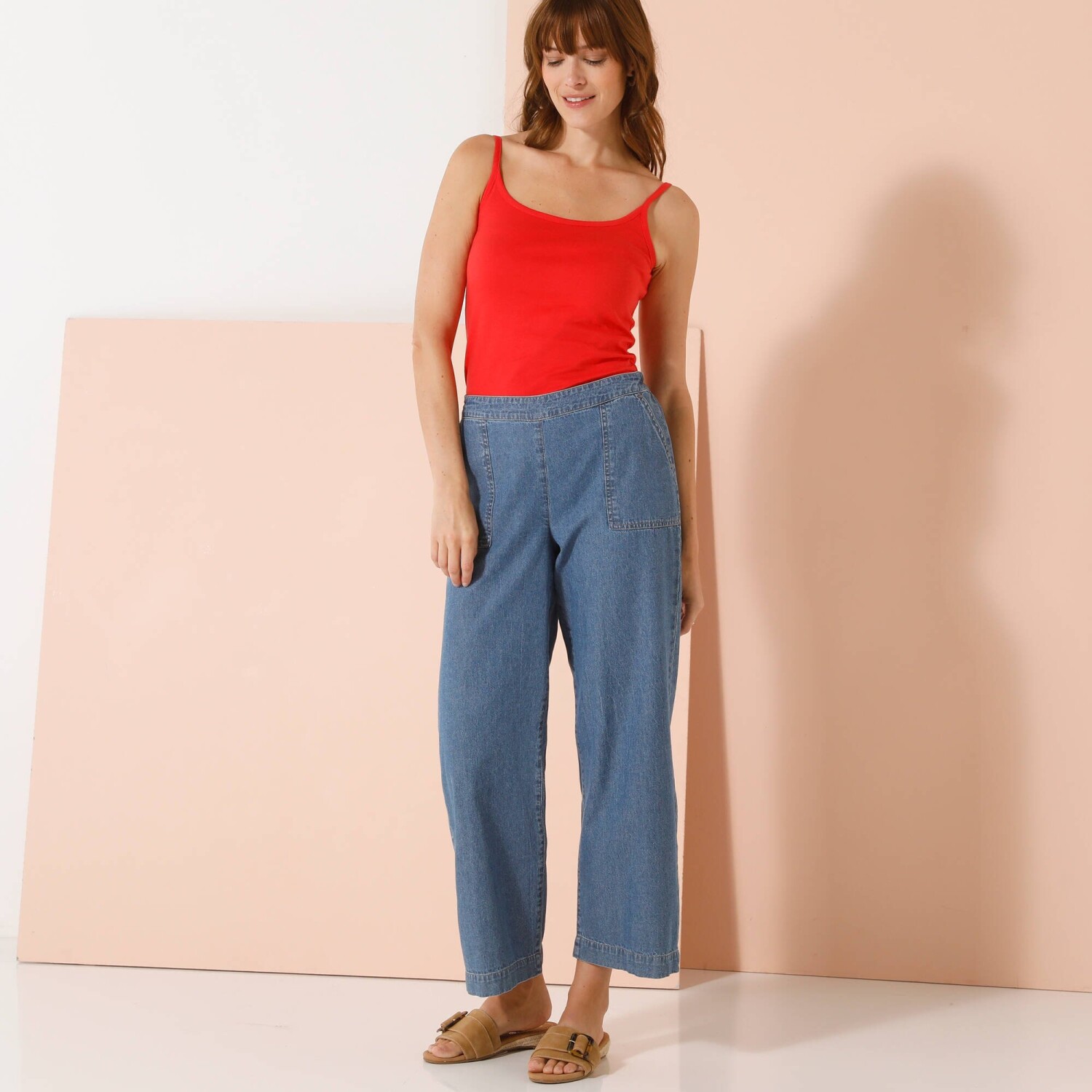 Трикотажний топ на вузьких бретелях можна носити під майку, щоб пом'якшити прозорий ефект, або самостійно. Круглий виріз спереду і ззаду. Вузькі бретелі без регулювання. Розслаблений виріз горловини. Бавовняний трикотаж. Прямий поділ. Цей виріб виготовлено з органічно вирощеної бавовни з сертифікатом GOTS (Глобальний стандарт органічного текстилю) № GCL-3688-GOTS-2023), який гарантує, що продукт містить щонайменше 95% сертифікованих органічних волокон. Виготовлено з органічної бавовни, вирощеної без використання пестицидів, добрив або хімікатів. Можна прати у пральній машині.