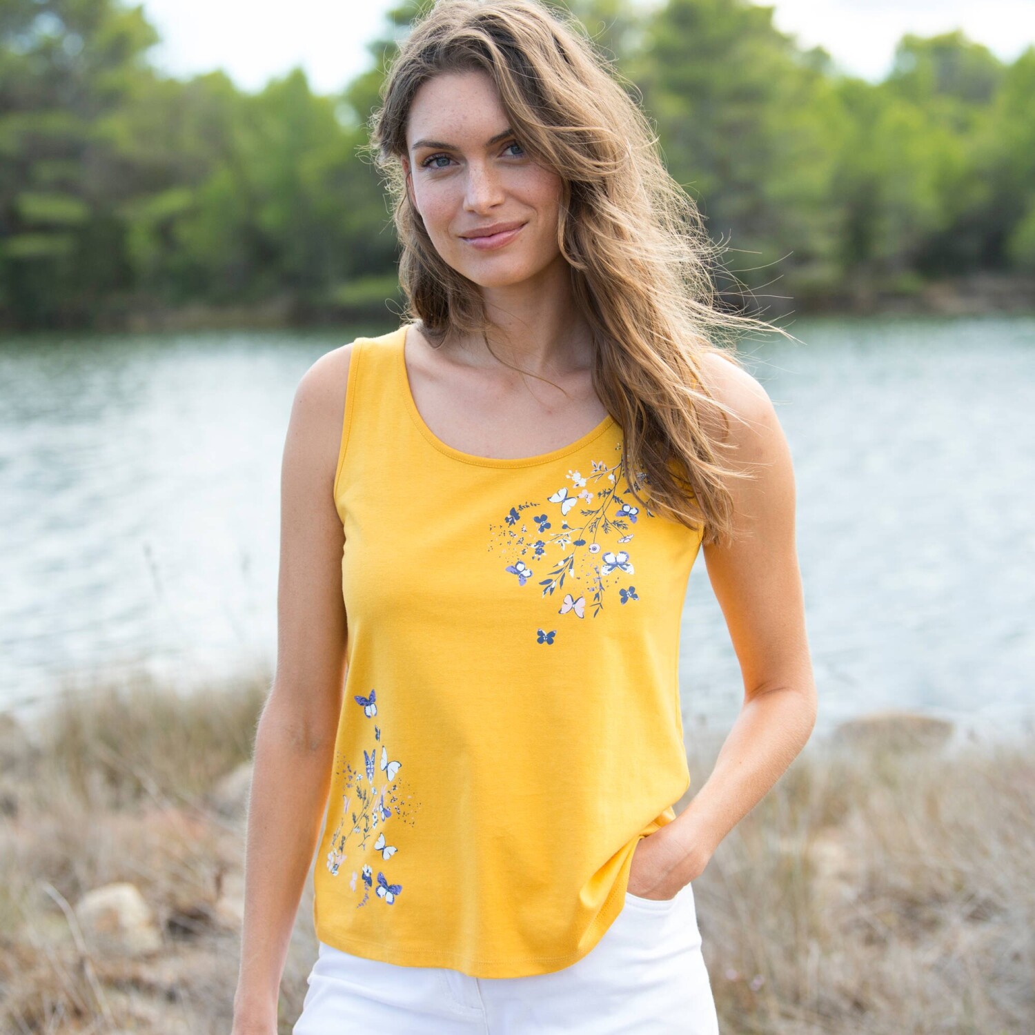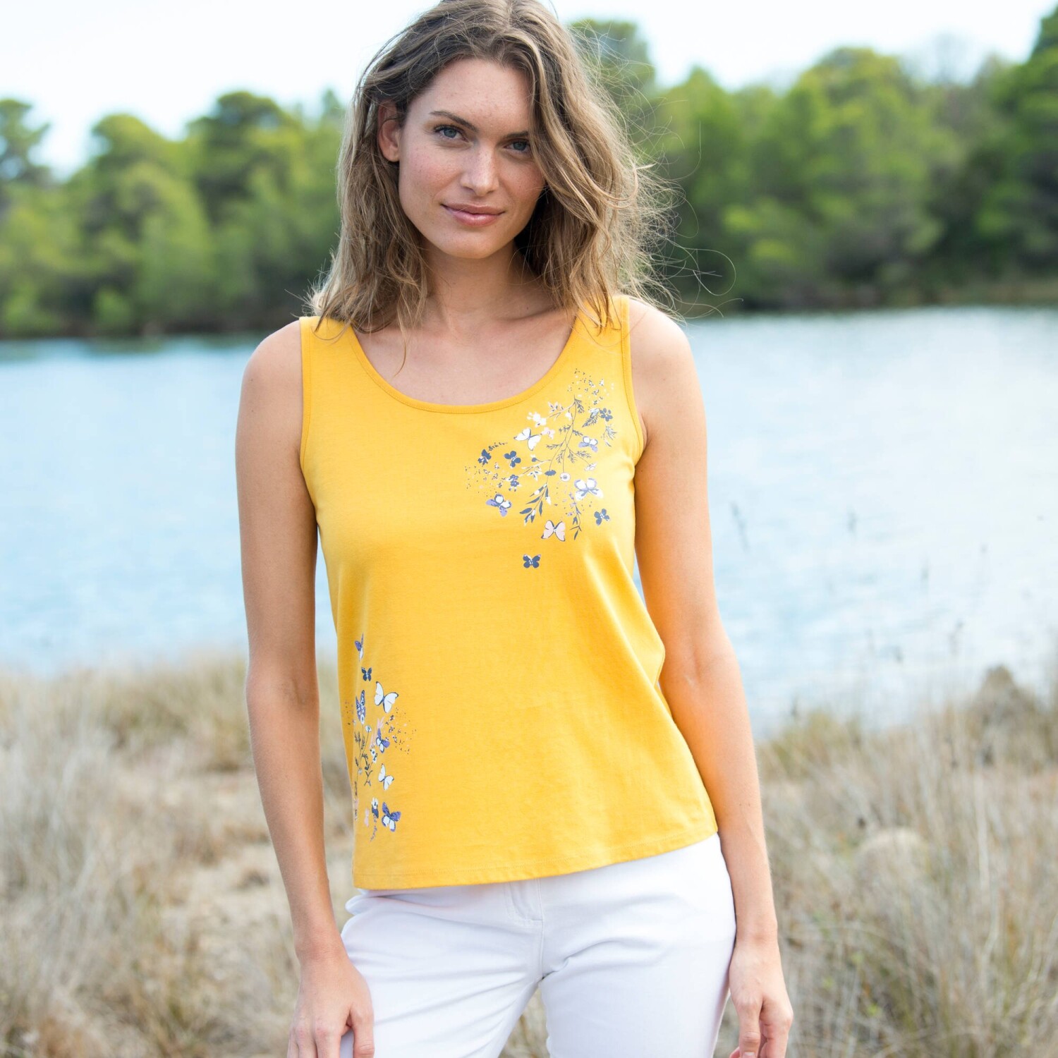 Мусліновий топ з принтом завжди буде чудовим вибором. Виготовлений з дихаючого бавовняного мусліну. Закруглений V-подібний виріз. Широкі бретелі. Розкльошений поділ. Стандарт Oeko-Tex 100 (CQ 1216 / 3 IFTH). Цей знак ідентифікує текстильні вироби, які були піддані лабораторним випробуванням на широкий спектр шкідливих речовин, і виріб є безпечним понад діючі стандарти. Можна прати у пральній машині.
