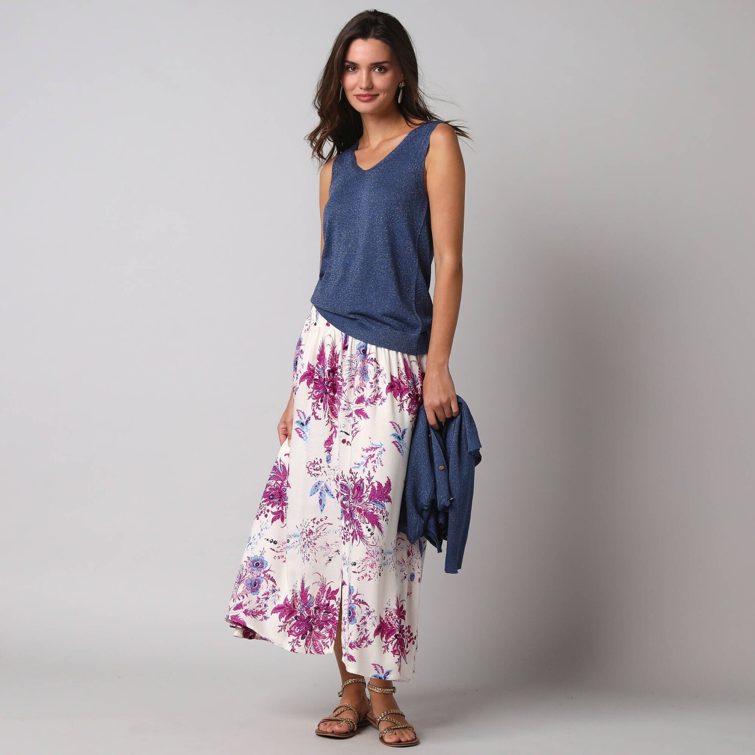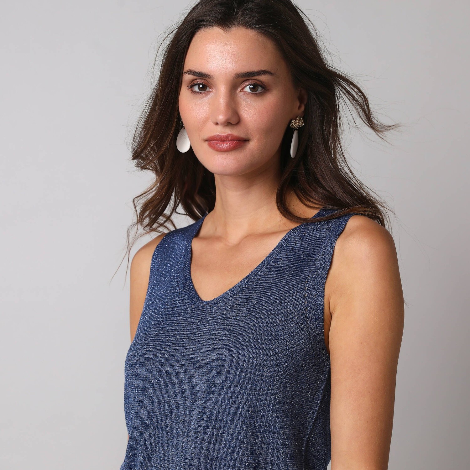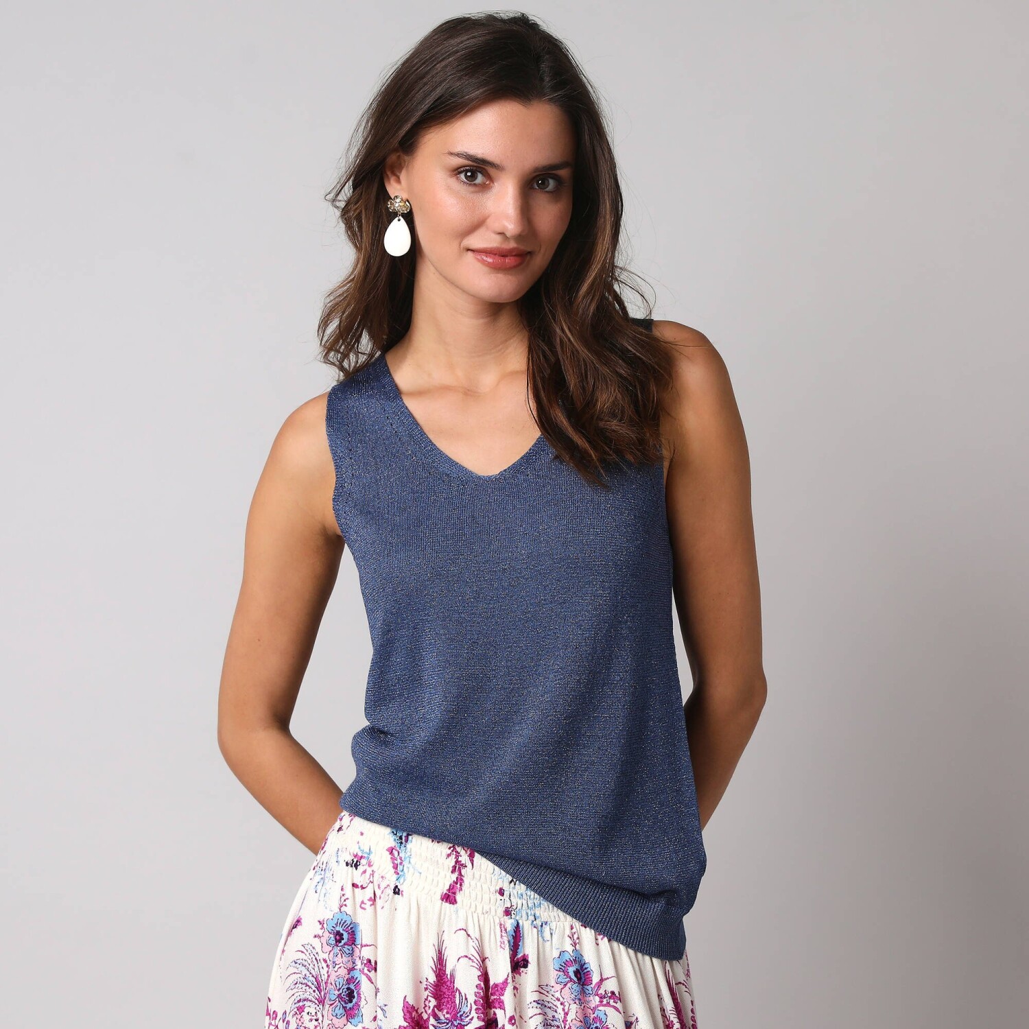 Повітряний мереживний топ ідеально підходить для різноманітних образів. Виготовлений з повітряного крепу. V-подібний виріз горловини та пройми, оздоблені квітковим мереживом. Виточки на грудях. Прямий поділ. Blancheporte обрала перероблений поліестер, що сприяє боротьбі з відходами та пропагує більш відповідальне споживання, яке дбає про навколишнє середовище. Можна прати в пральній машині.
