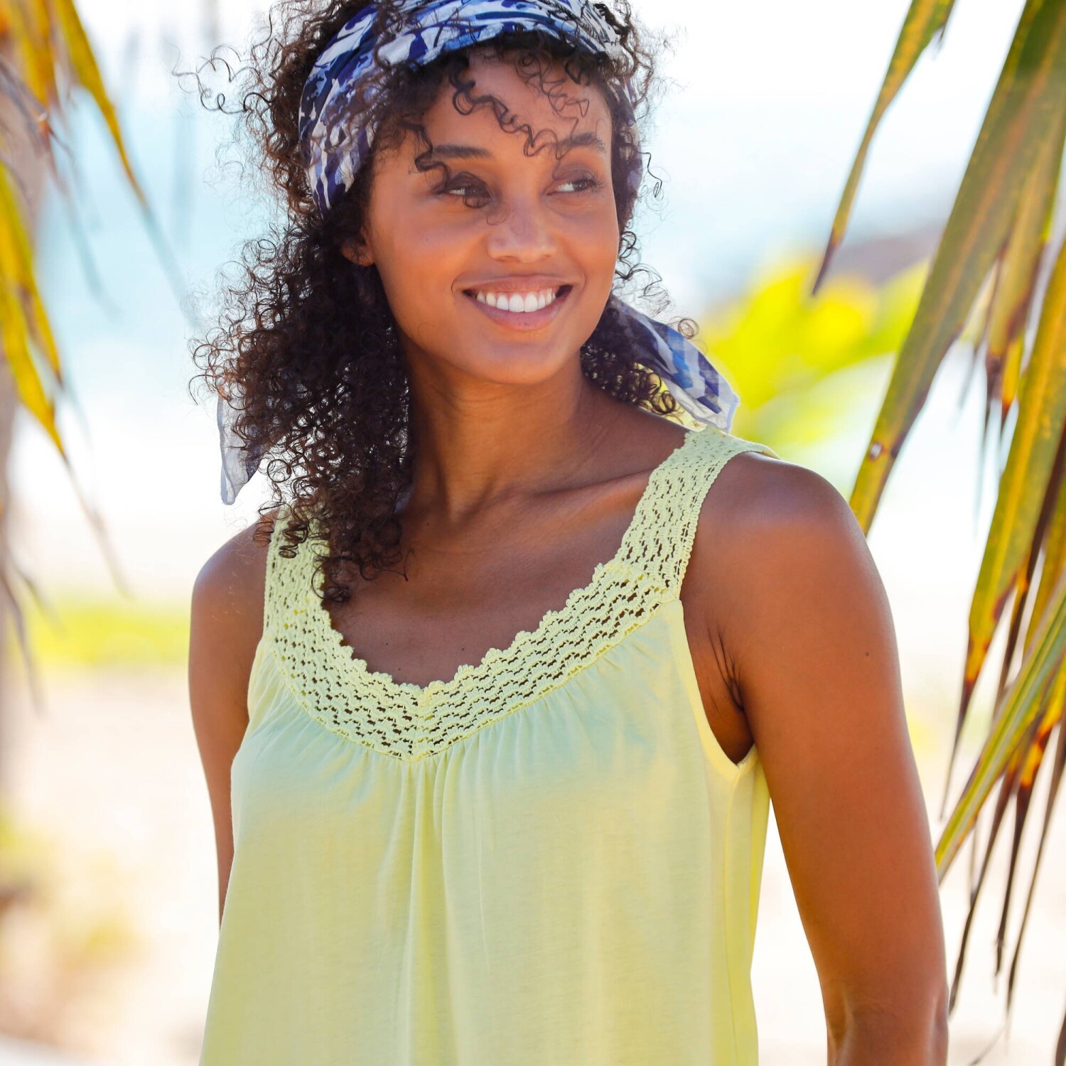 Поєднайте літній топ з макраме з вашим улюбленим низом та створіть модель своєї мрії! Глибокий V-подібний виріз. Виріз горловини та бретелі з макраме. Збірка під вирізом. Прямий низ. Можна прати в пральній машині.