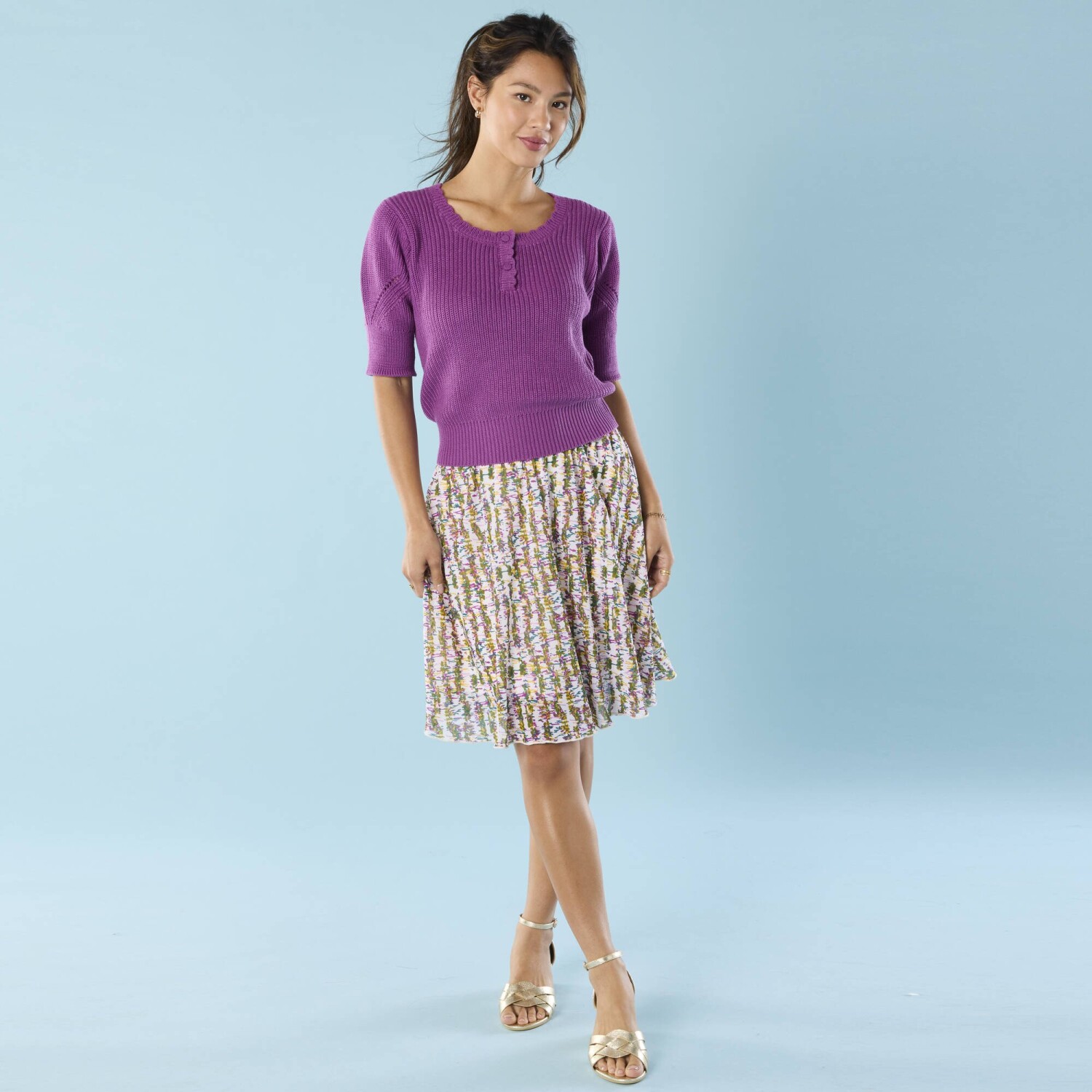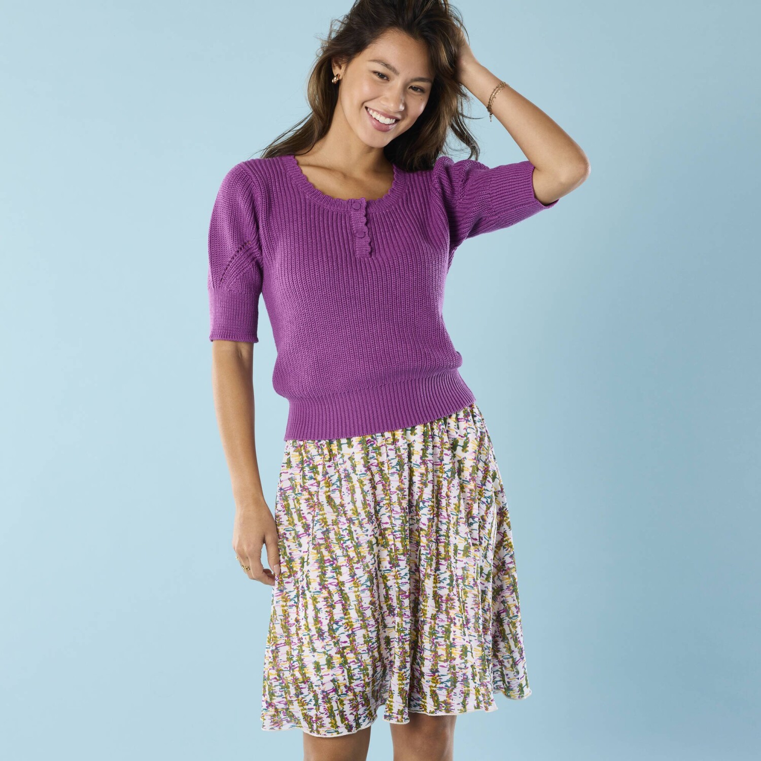 З модним меланжевим ефектом, злегка приталений, з вирізом «човник».