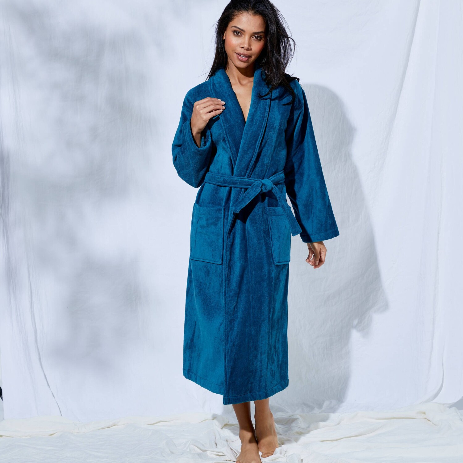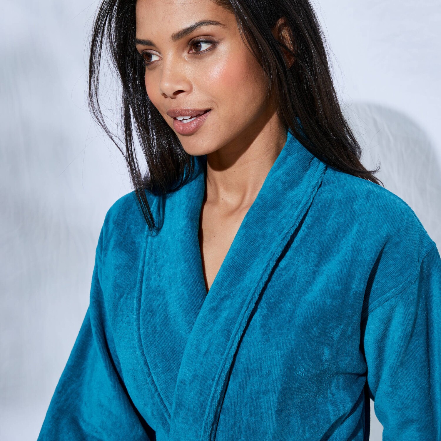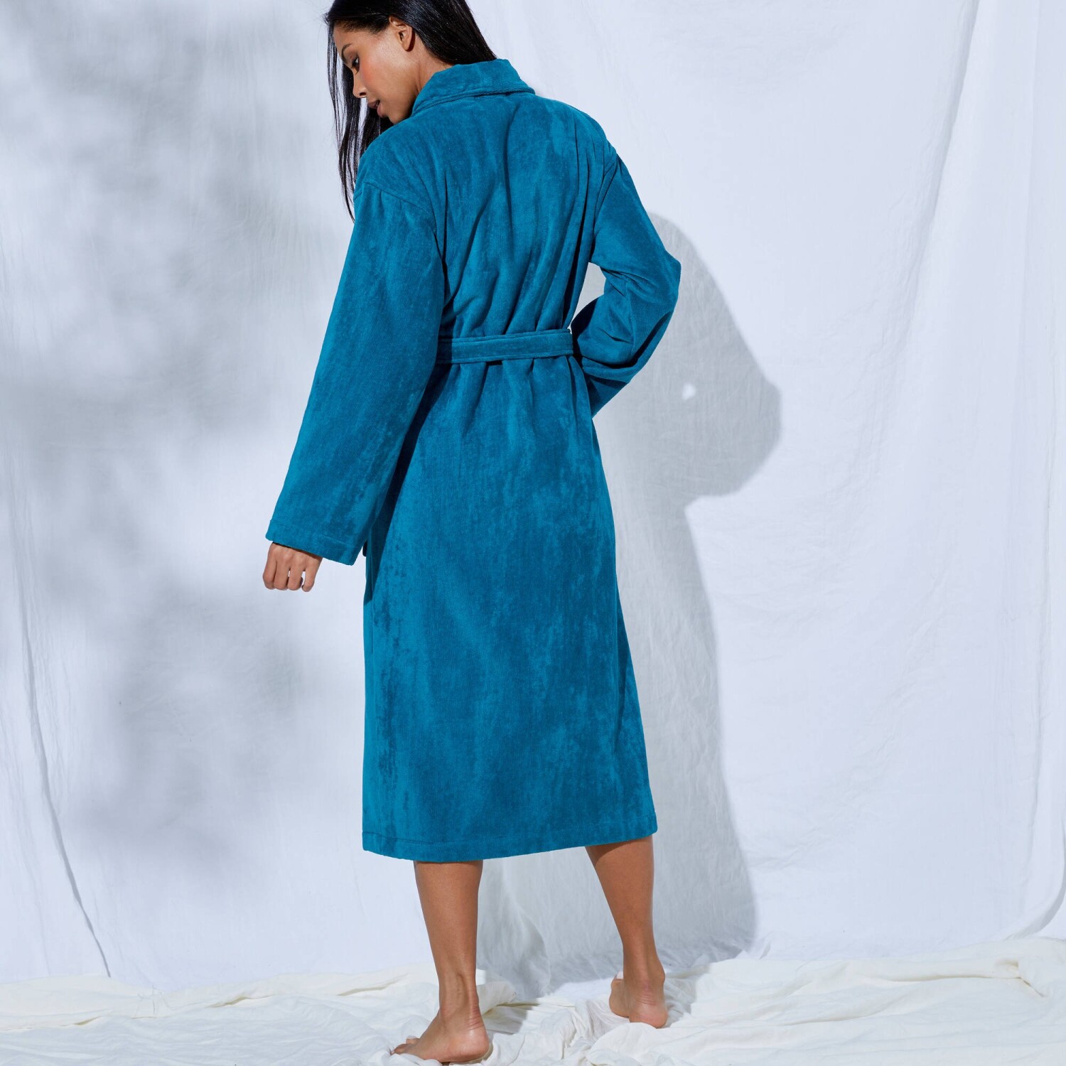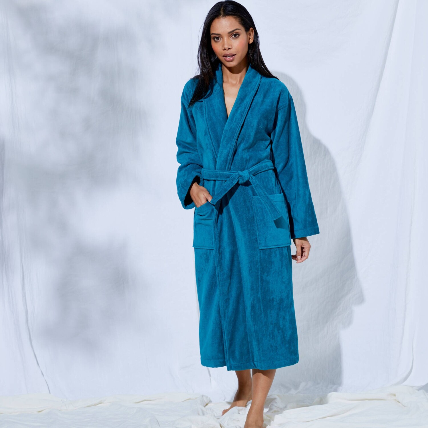 Халат Colombine з тонкого велюрового махрового матеріалу надзвичайно м'який та добре вбирає вологу. М'який, як песто, насолоджуйтесь моментами комфорту вдома в ньому. Якість Colombine. Виготовлений з матеріалу, відібраного за його м'якість та довговічність. Кольори, стійкі до прання. Універсальний крій унісекс. Комір-шаль. Довгі рукави. 2 накладні кишені. Петлі та еластичний ремінець для зав'язування. Стандарт 100 згідно з Oeko-Tex (n° CQ 1216/1 IFTH). Цей знак вказує на текстильні вироби, які пройшли лабораторні випробування на широкий спектр шкідливих речовин, і виріб є безпечним поза межами чинних стандартів. Можна прати при температурі 60 °C, для захисту навколишнього середовища рекомендуємо прати при 40 °C та вільно сушити на повітрі.