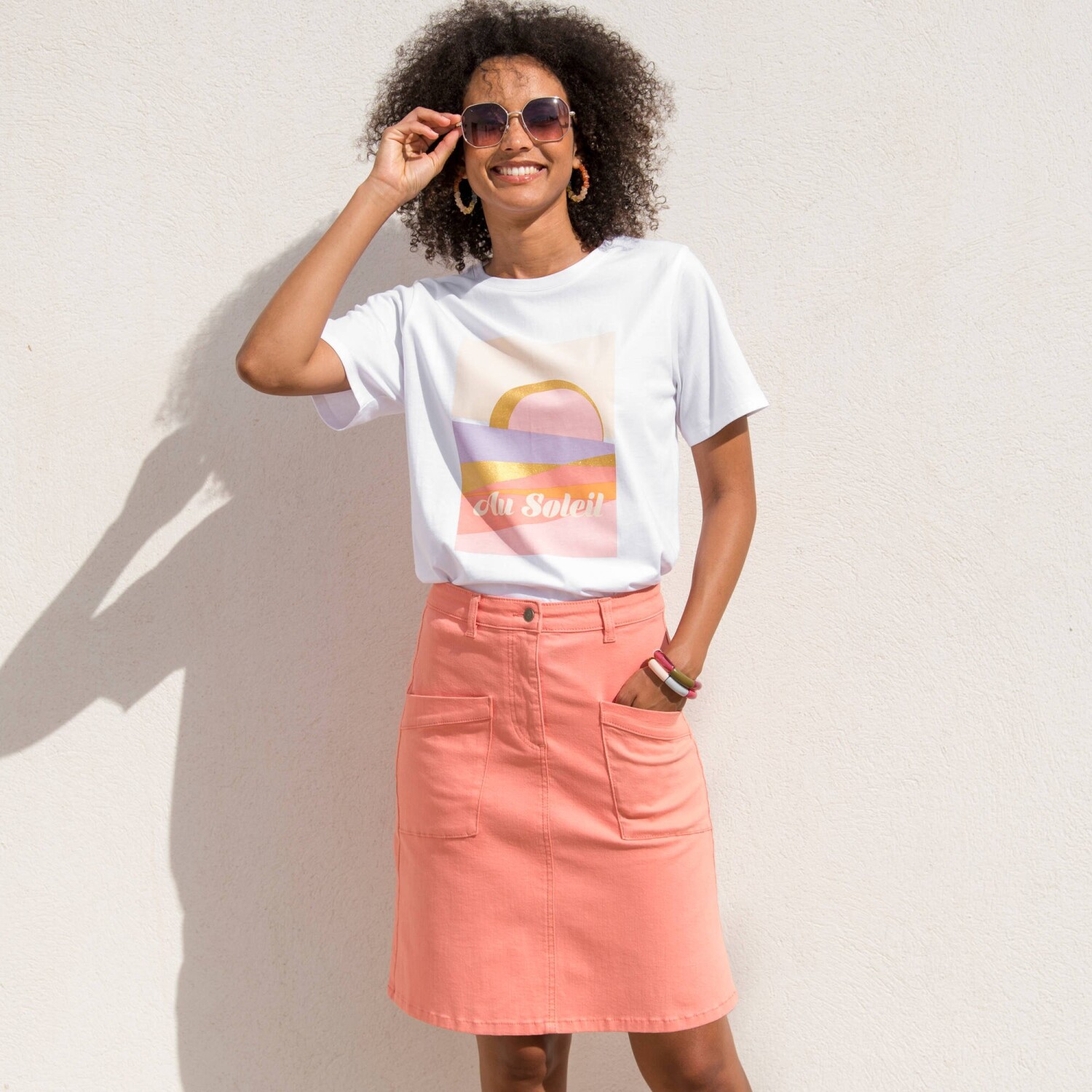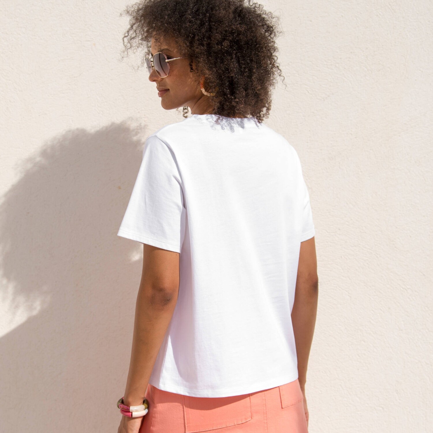 Краса в простоті! Доказ - ця футболка прямого крою із суміші бавовни та льону. Глибокий V-подібний виріз. Приспущені плечі. Плечовий шов спереду. Прямий поділ. Стандарт Oeko-Tex 100 (n° CQ 1216 / 3 IFTH). Цей знак ідентифікує текстильні вироби, які пройшли лабораторні випробування на вміст широкого спектру шкідливих речовин, і продукт є безпечним понад діючі стандарти. Можна прати у пральній машині.