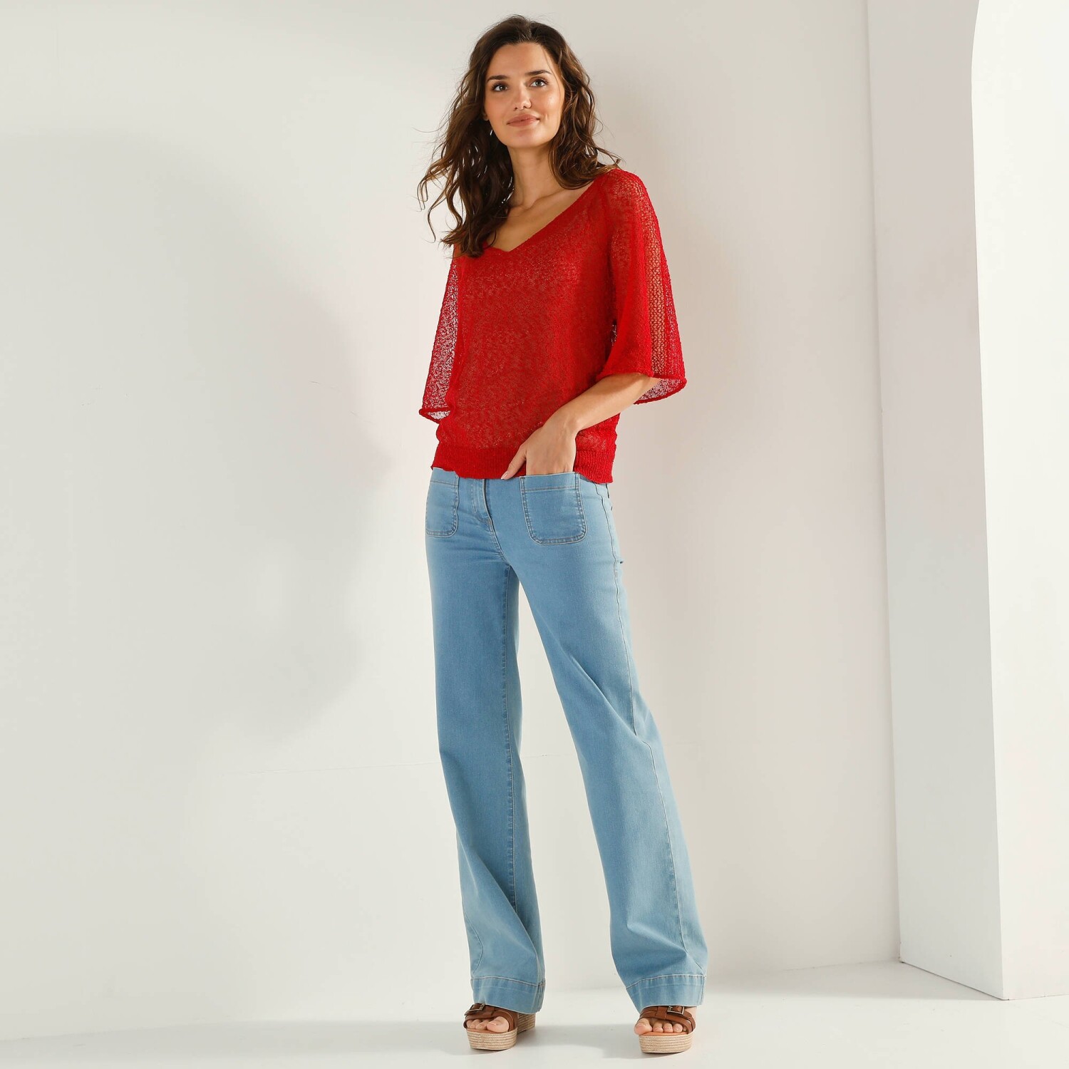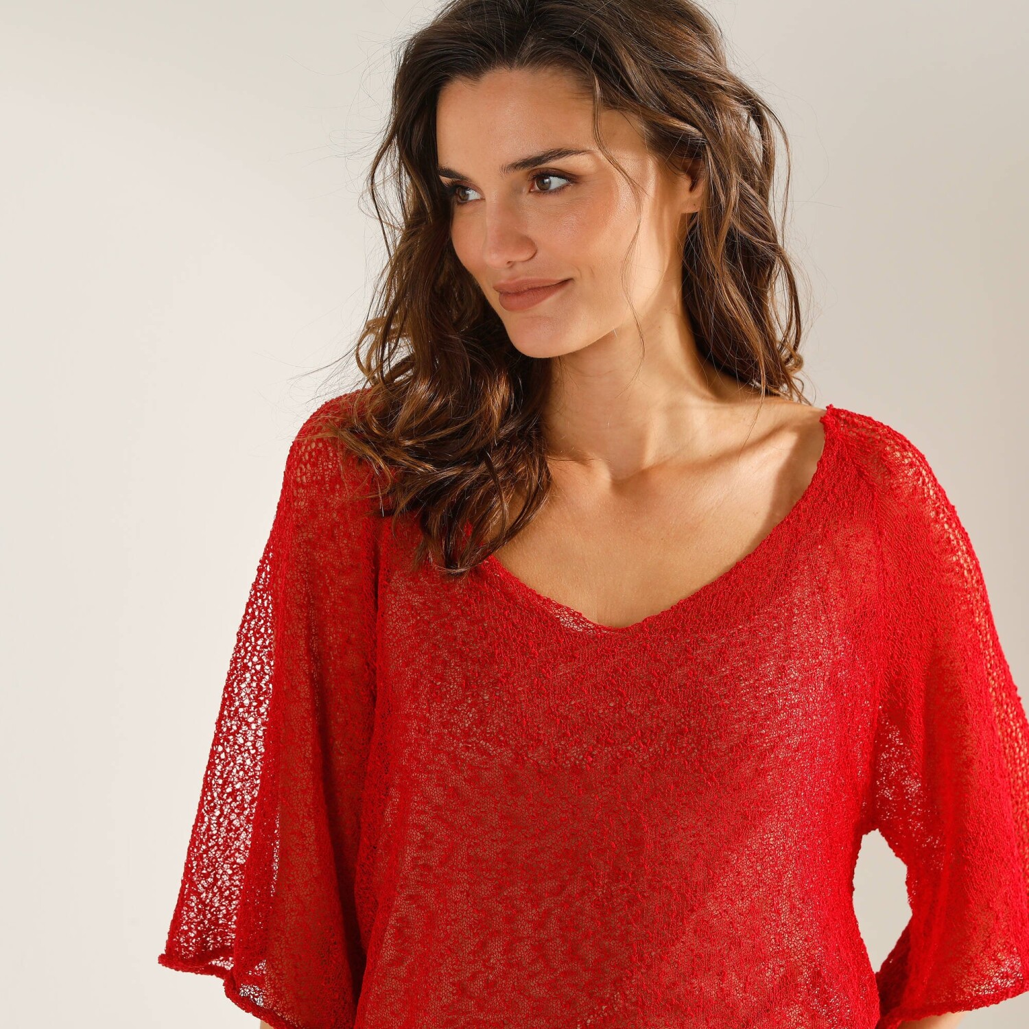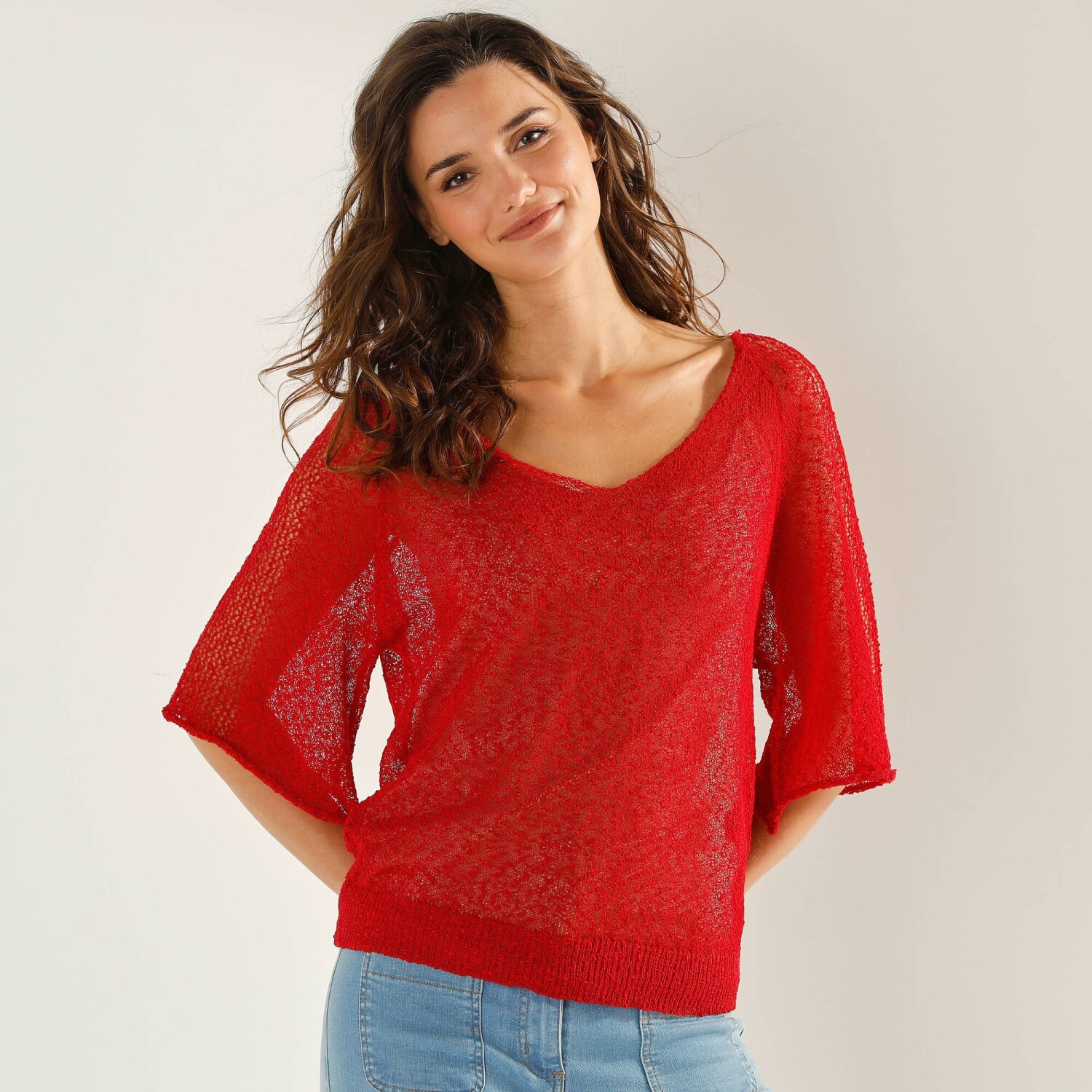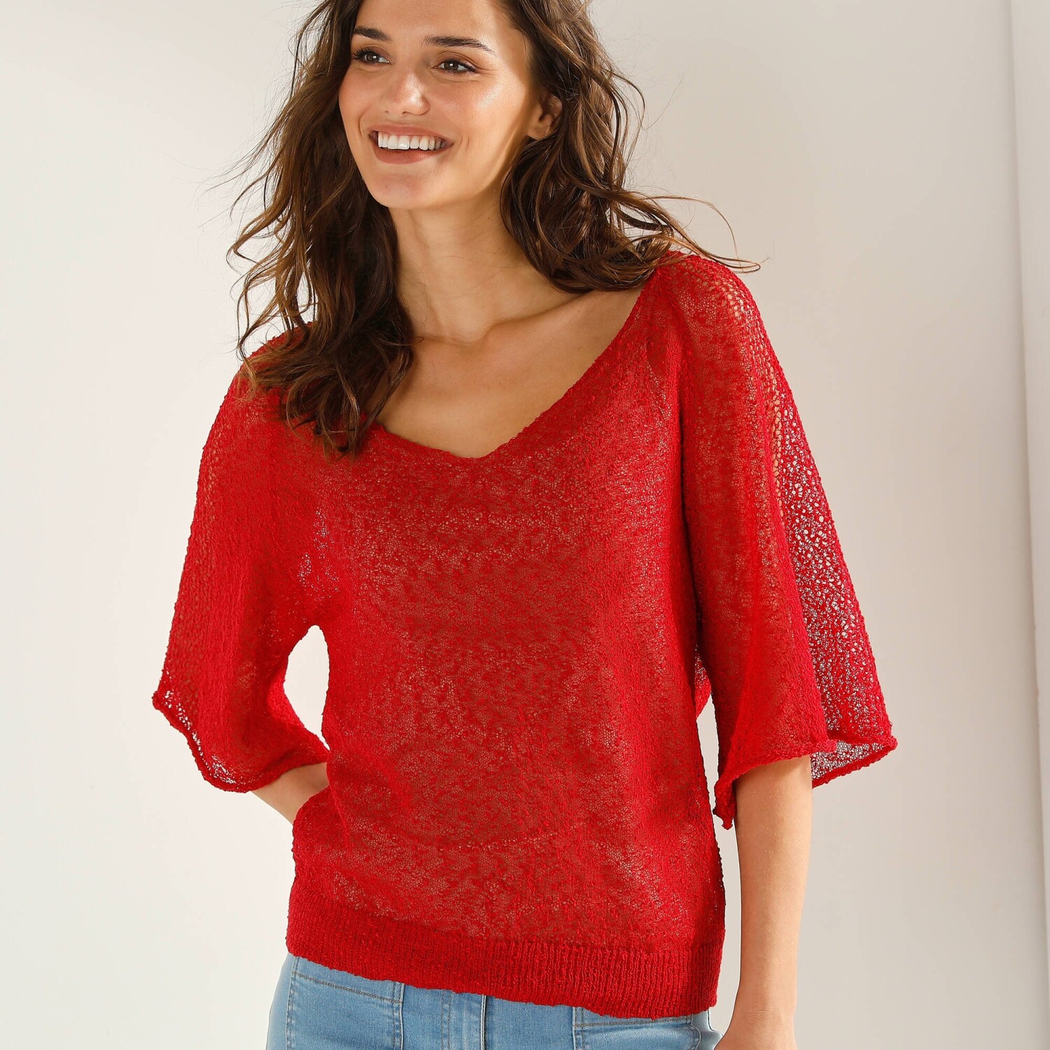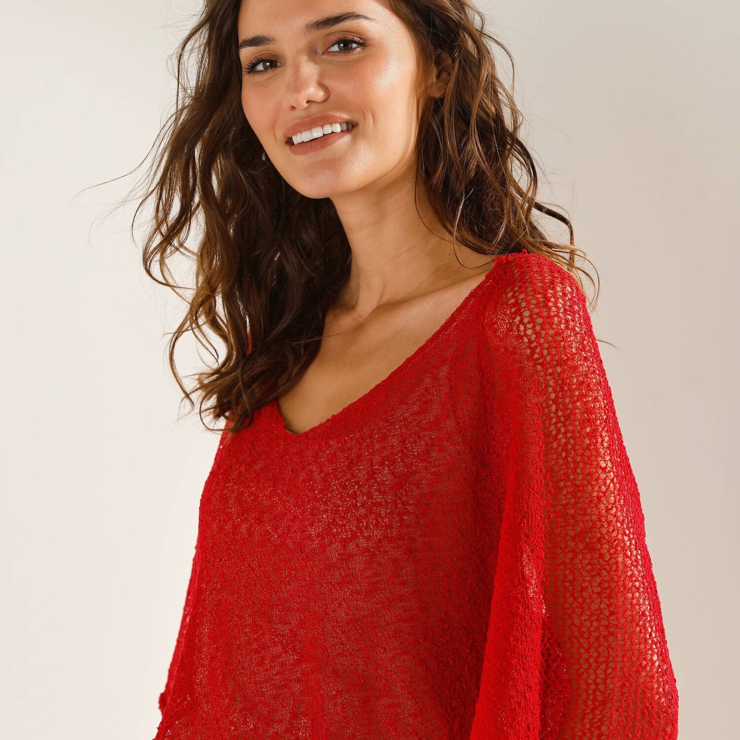Вільний пуловер з V-подібним вирізом пасує кожній модниці. Гладкий трикотажний візерунок. М'яка в'язка. Витончений V-подібний виріз горловини. Довгий рукав. Приспущені плечі. Прямий поділ. Можна прати у пральній машині.